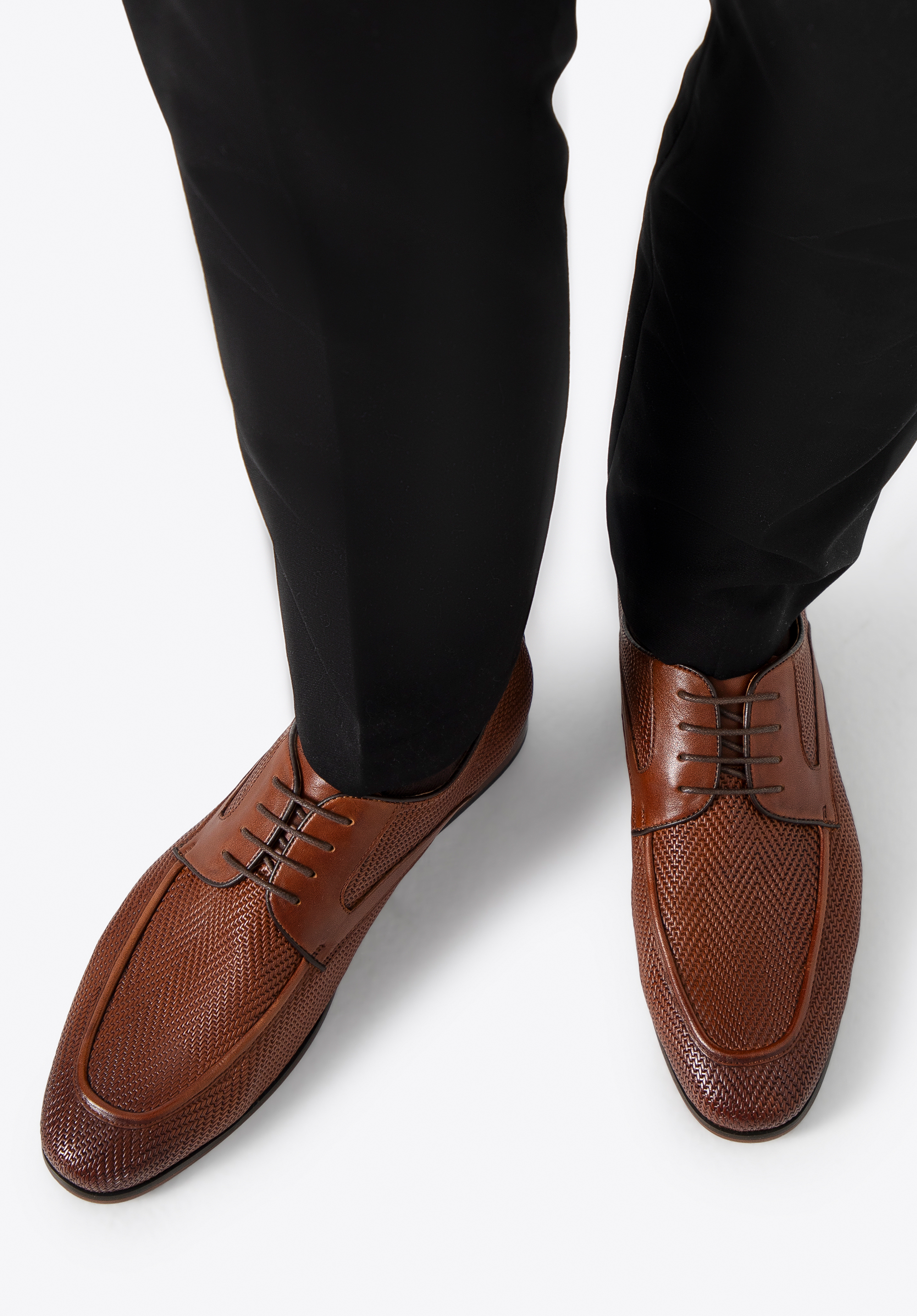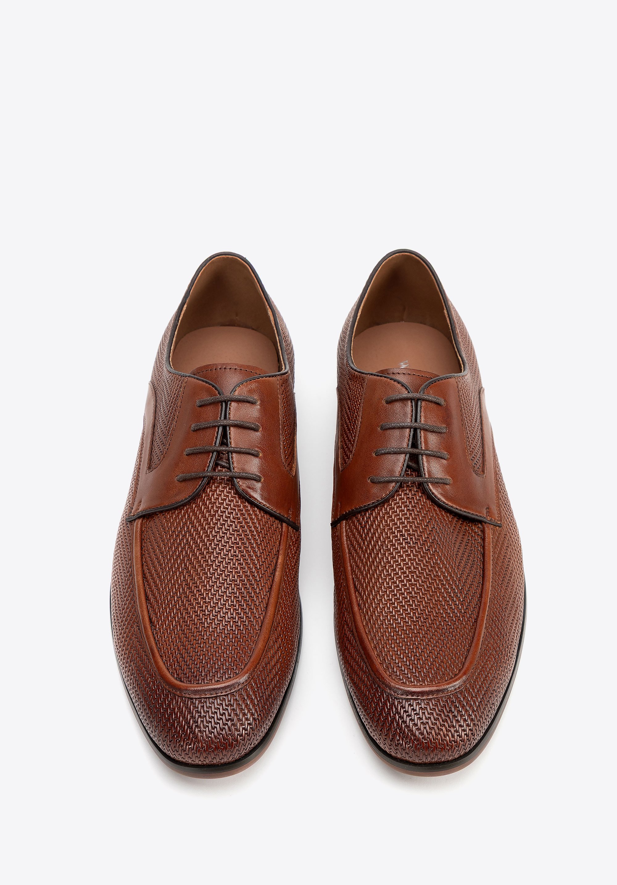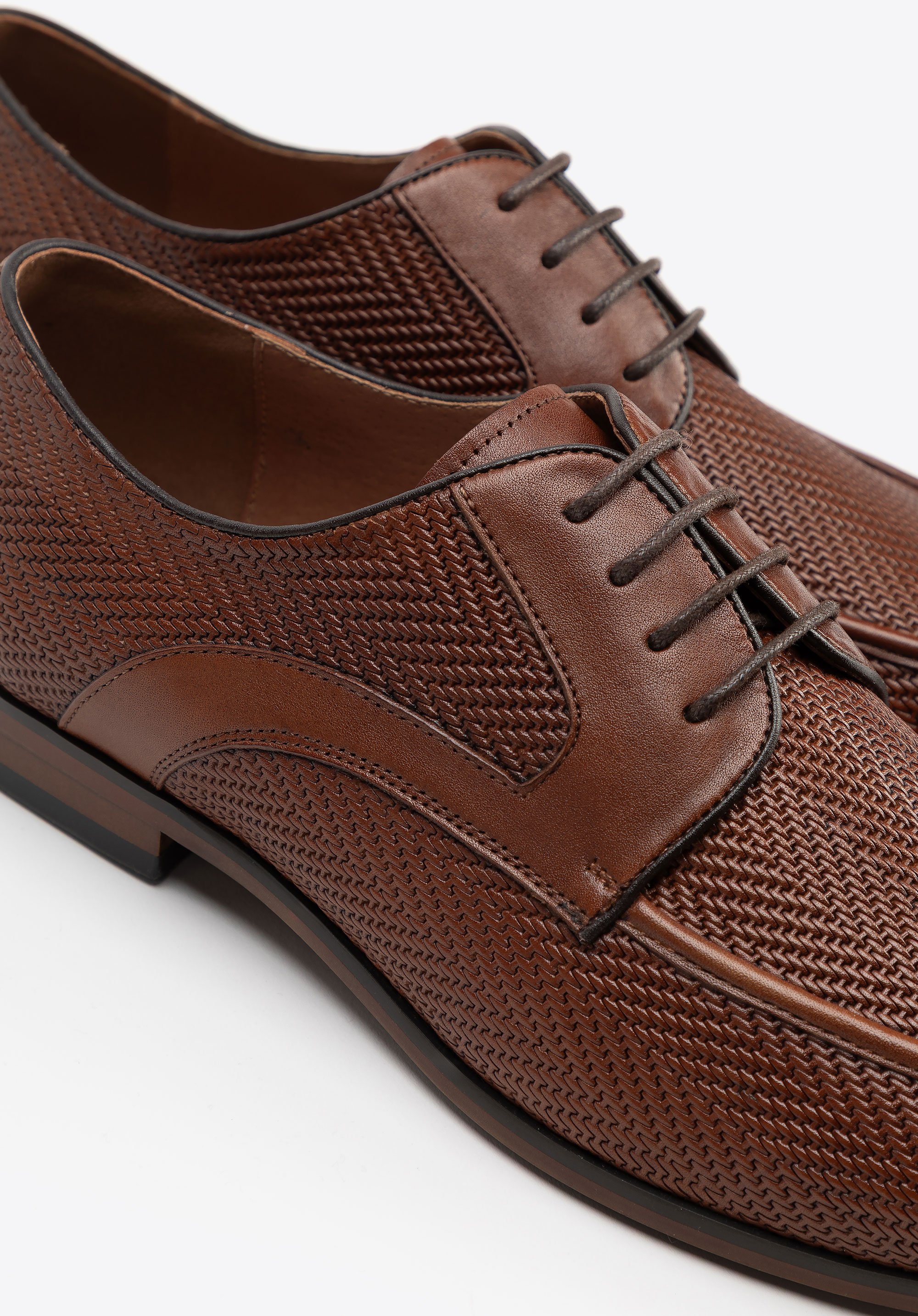 Męskie derby ze skóry naturalnej z plecionką jasny brąz
