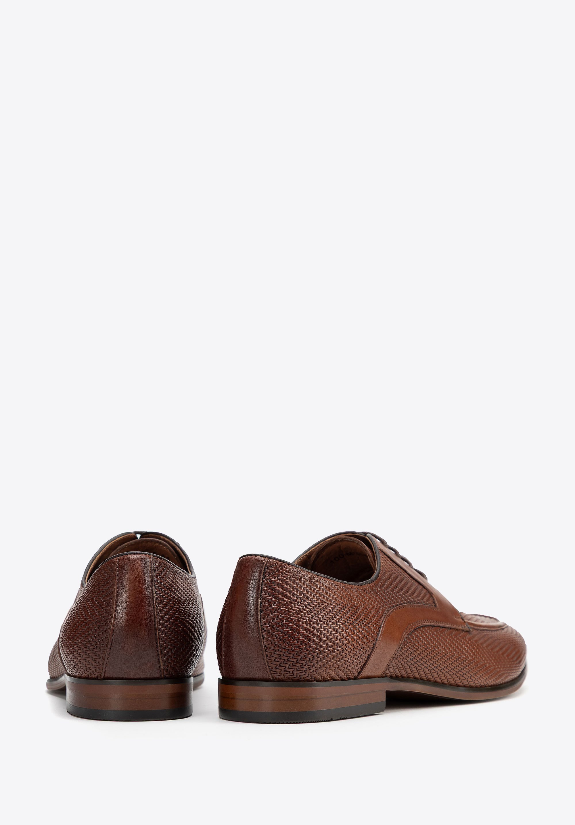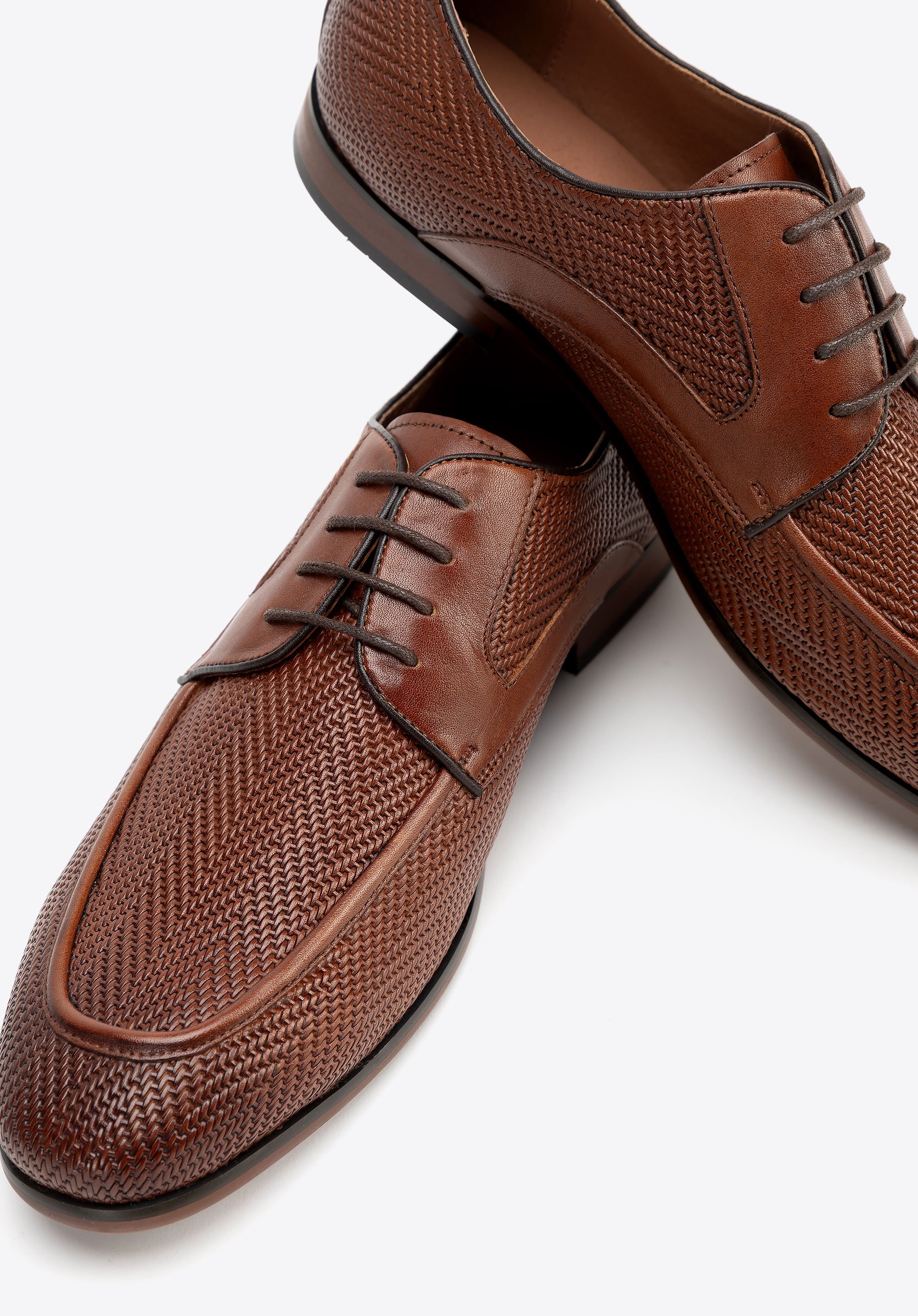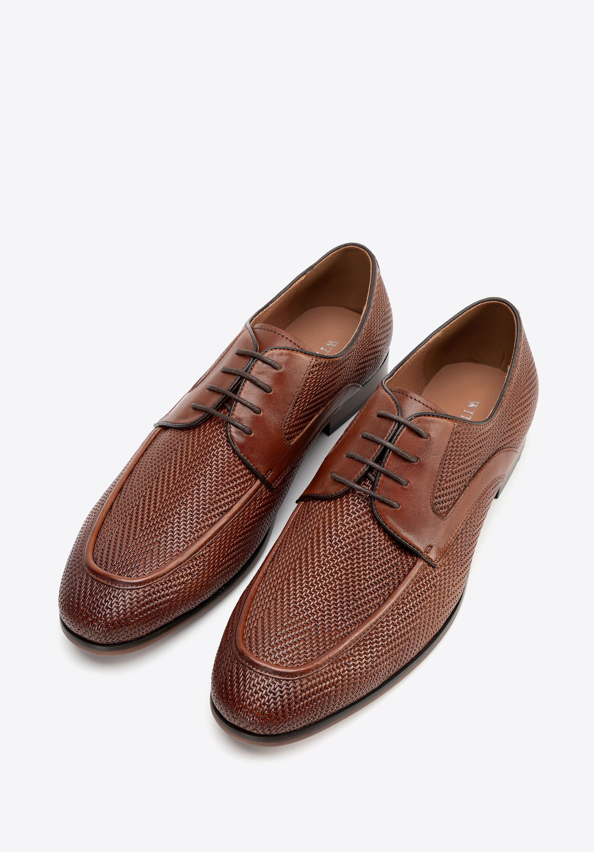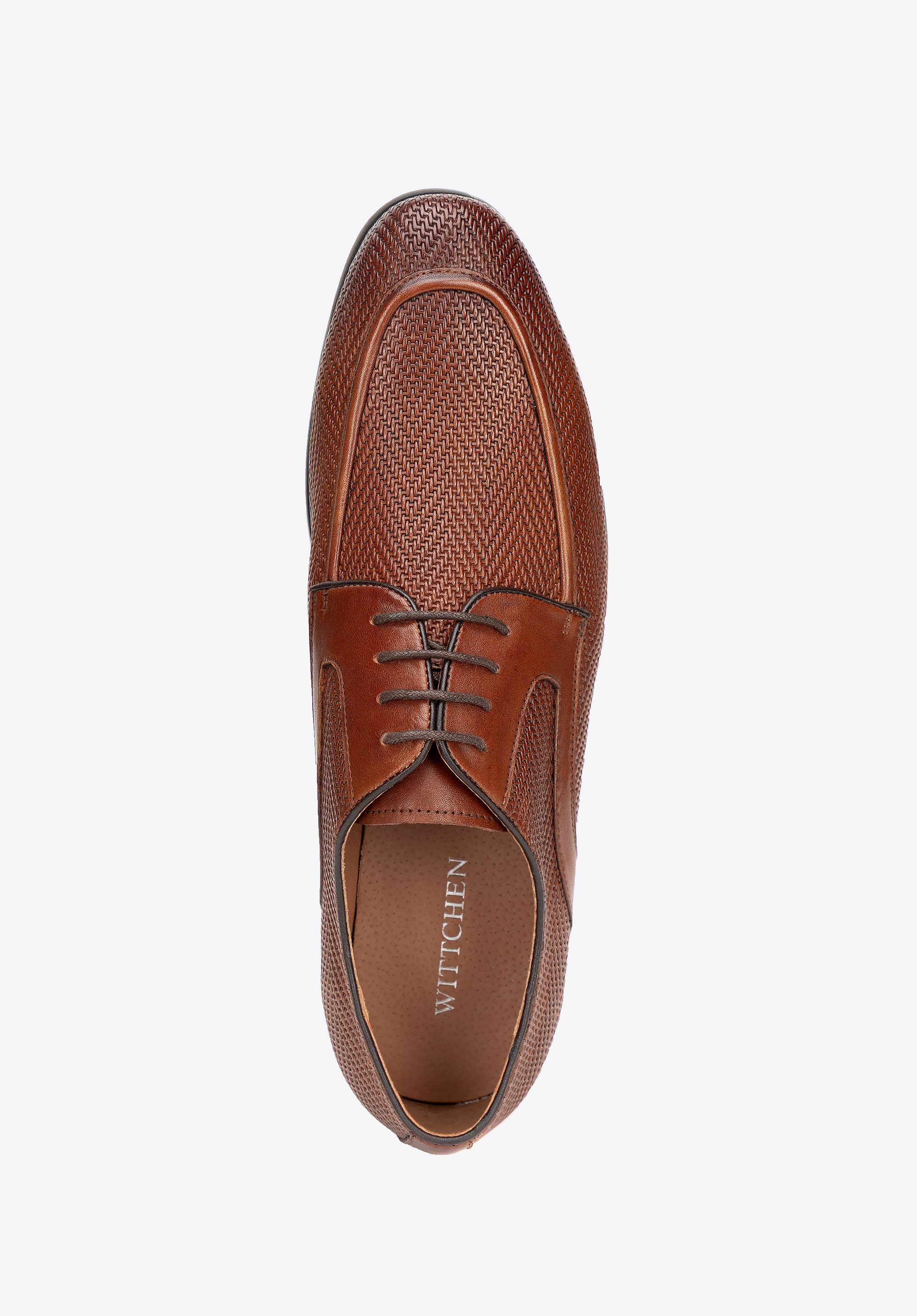 Męskie derby ze skóry naturalnej z plecionką jasny brąz