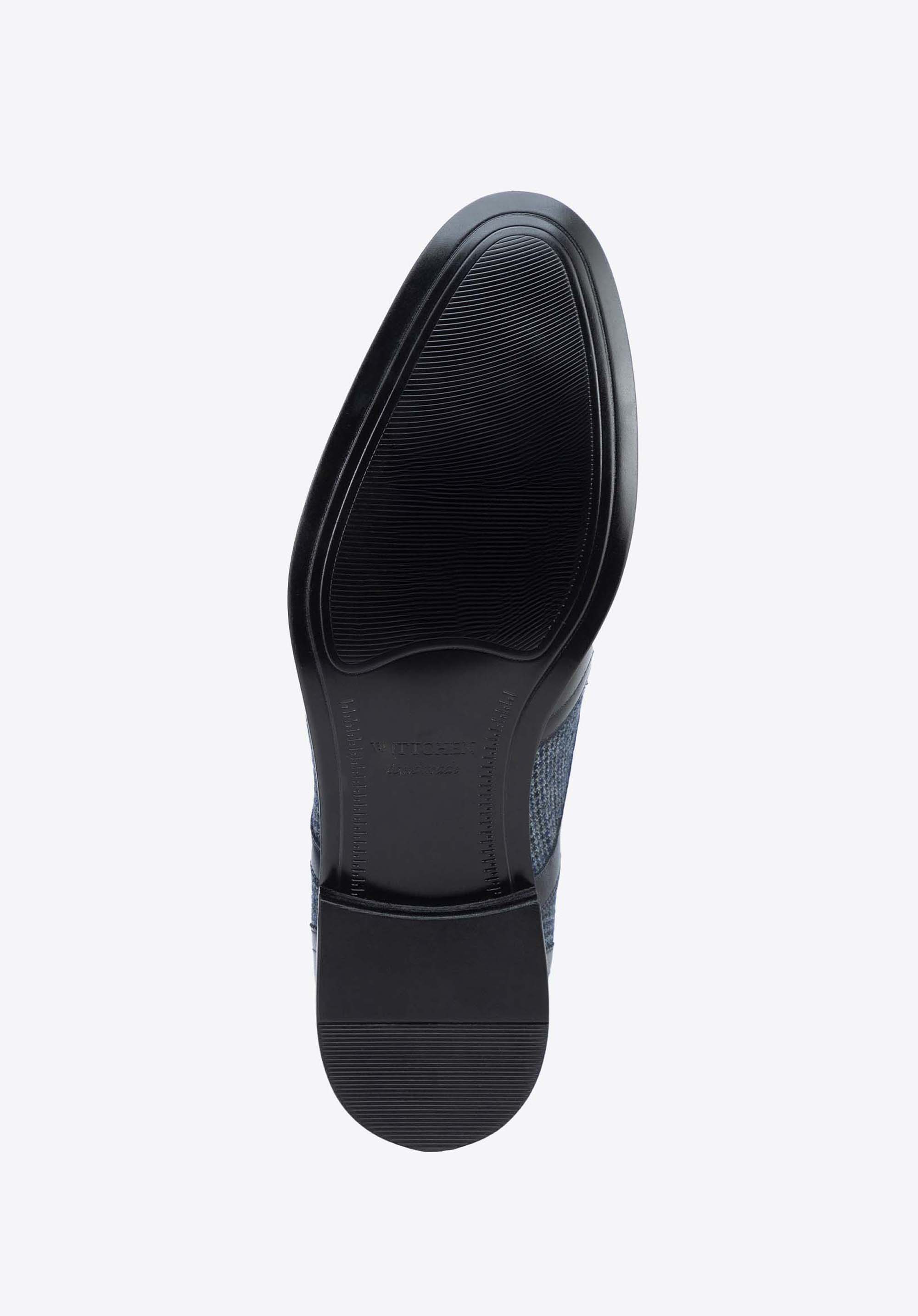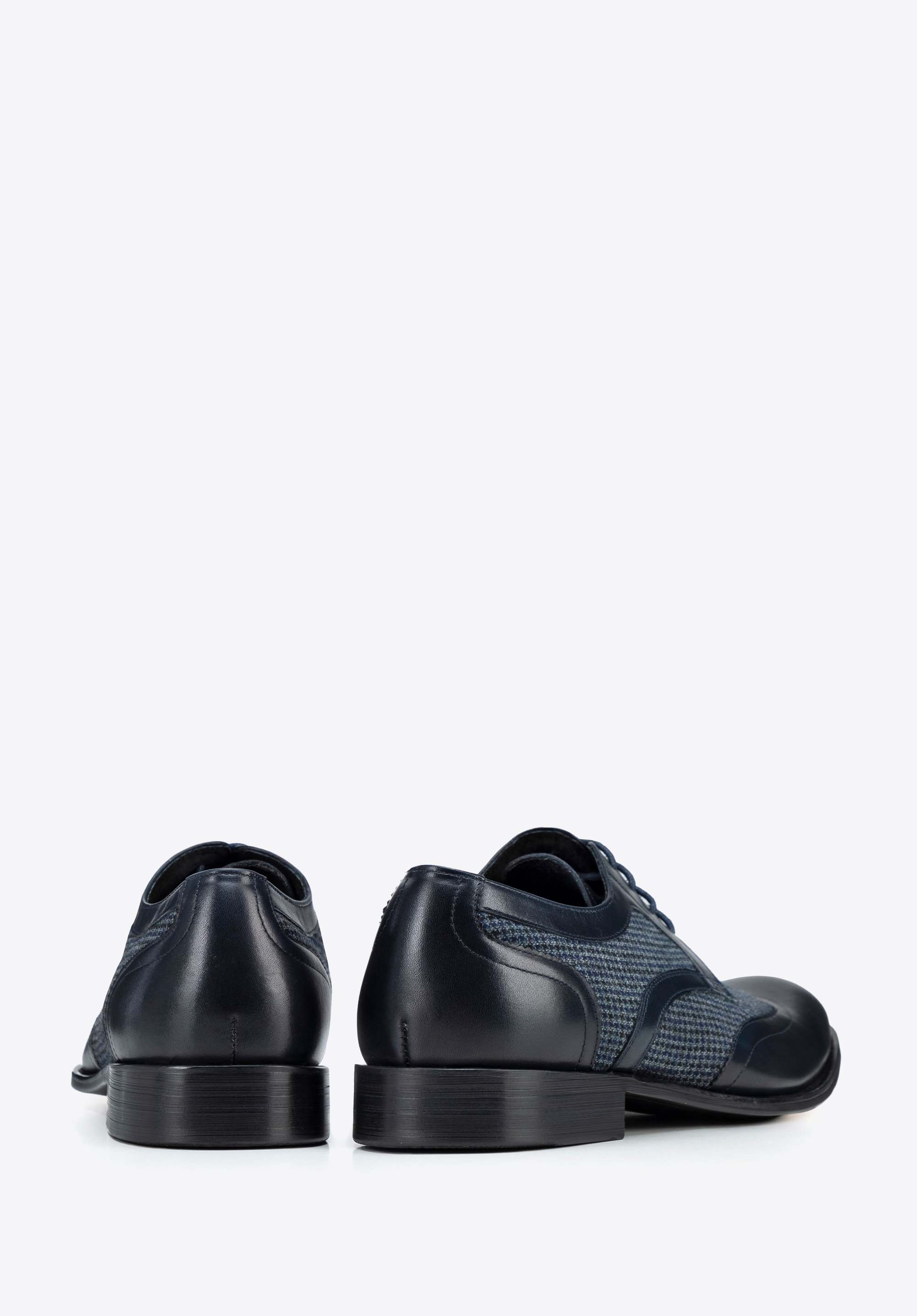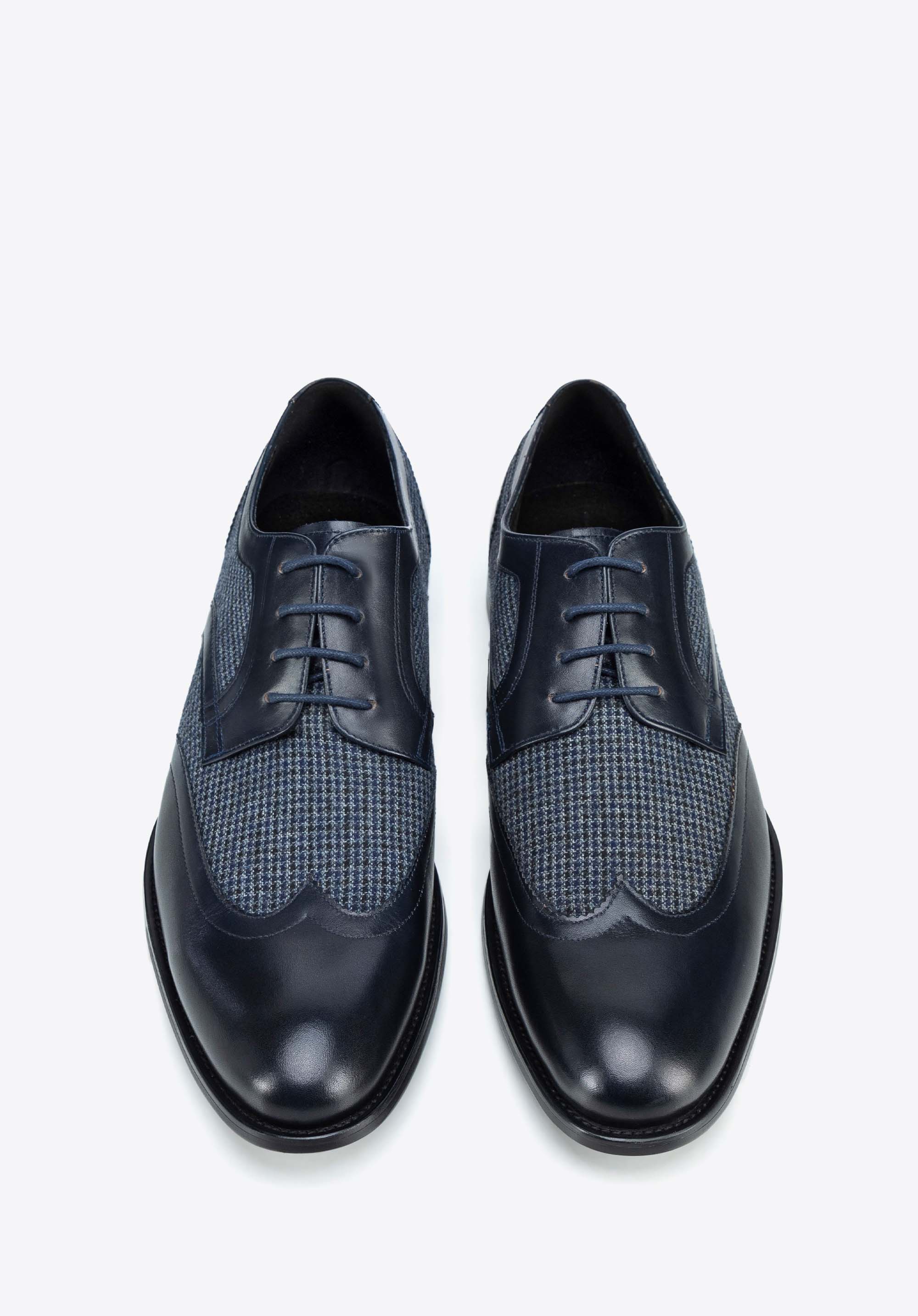Męskie derby ze skóry z tekstylnymi wstawkami granatowe