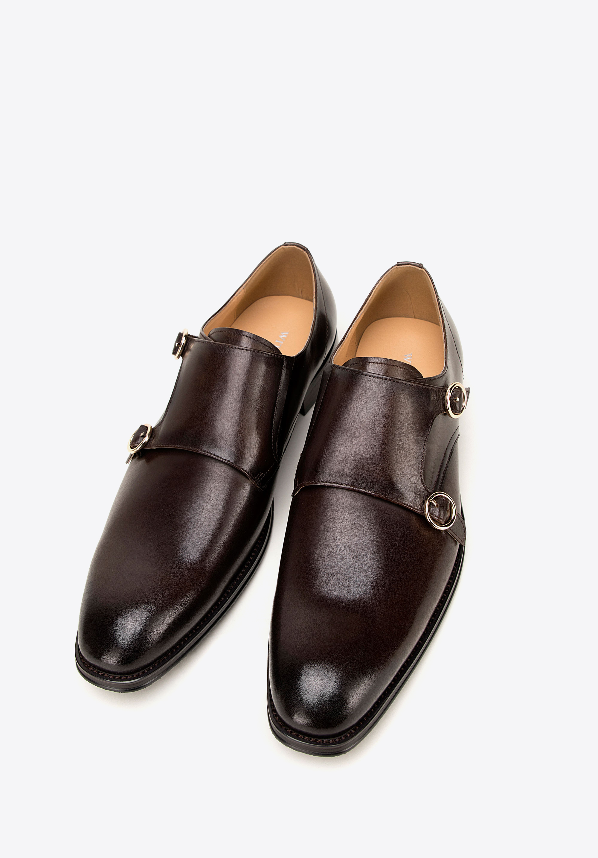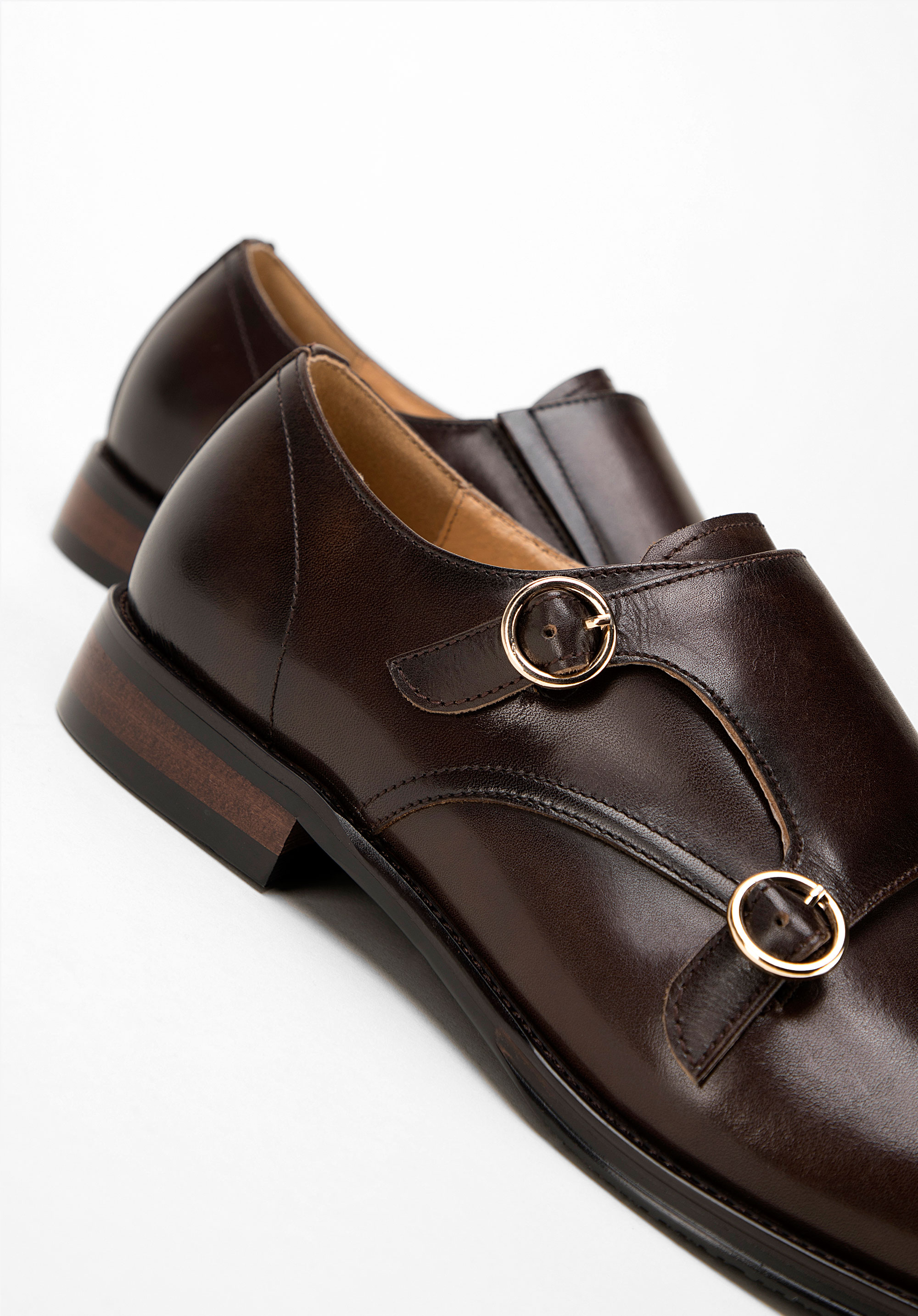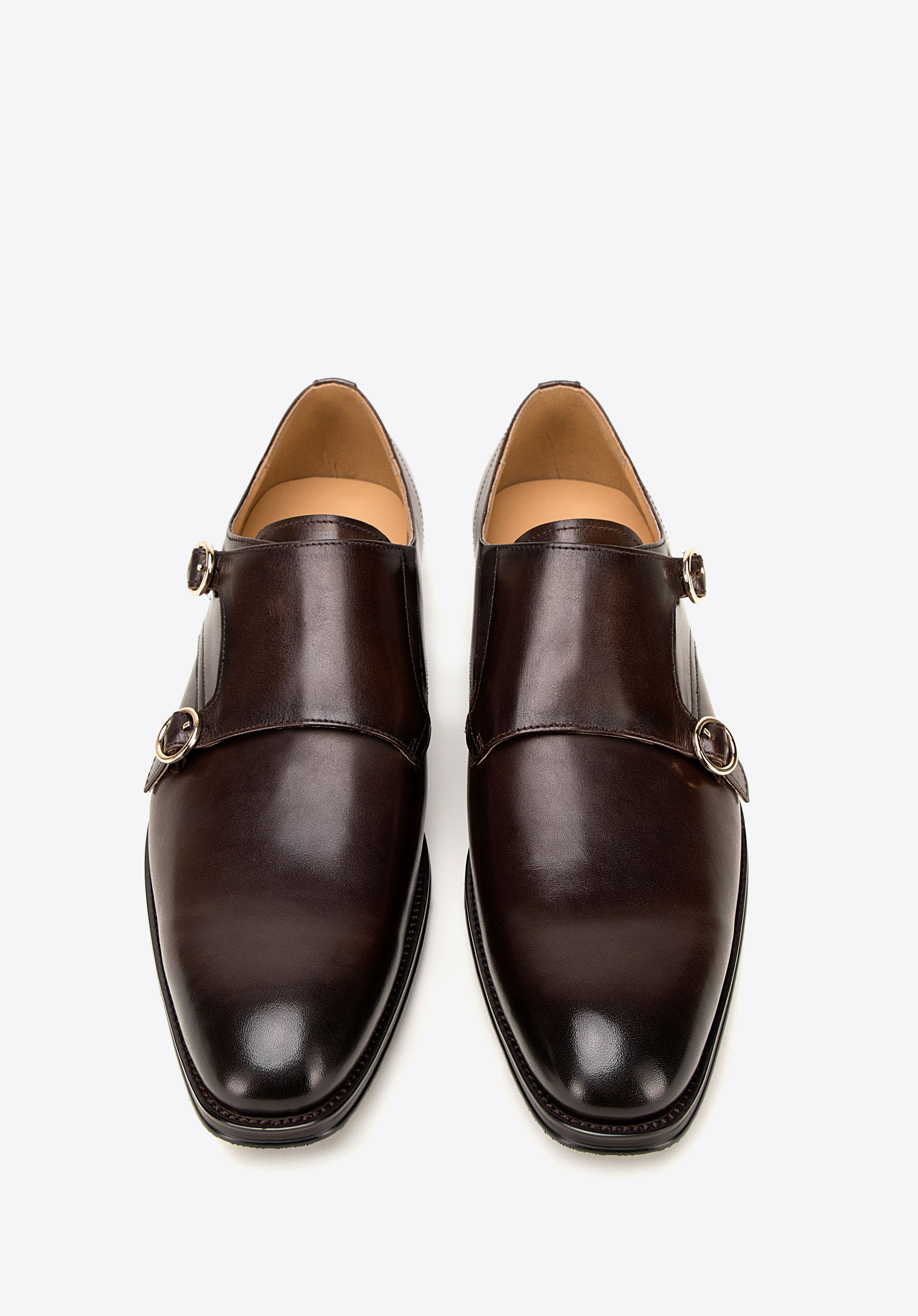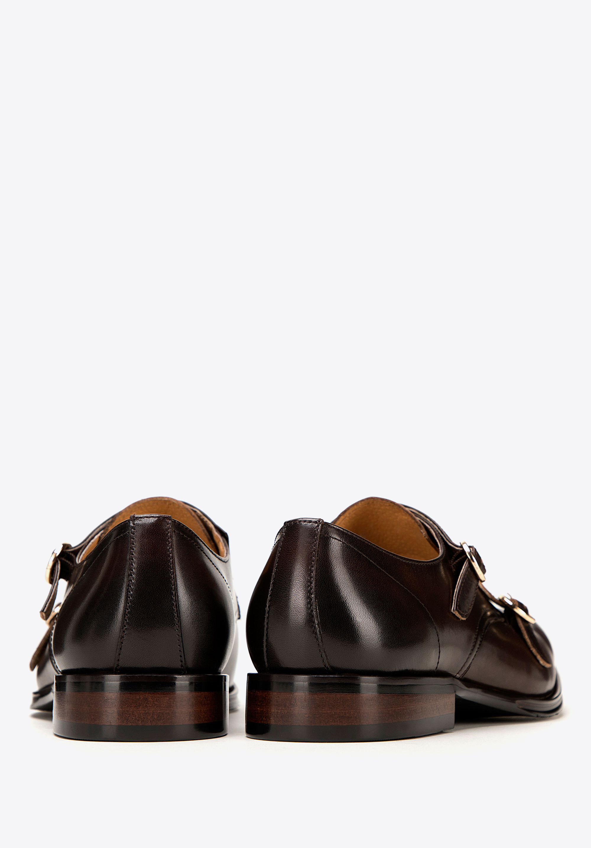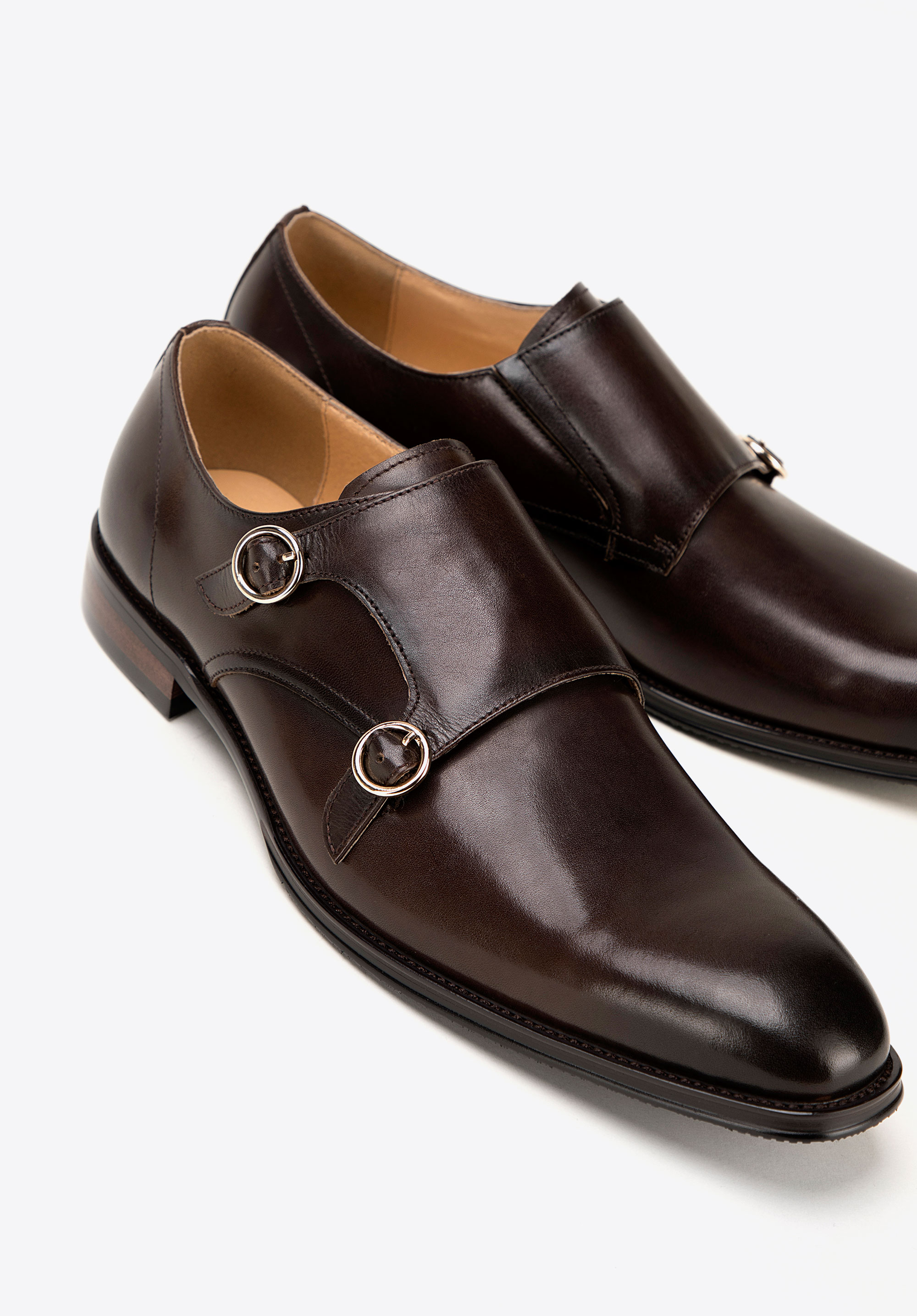 Męskie double monki skórzane z okrągłymi sprzączkami podkreślą charakter stylizacji biznesowych i smart casual, gdy zależy Ci na wyrafinowanej formie. Naturalna skóra, dwie regulowane sprzączki oraz skórzana wkładka gwarantują dopasowanie i komfort przez wiele godzin.