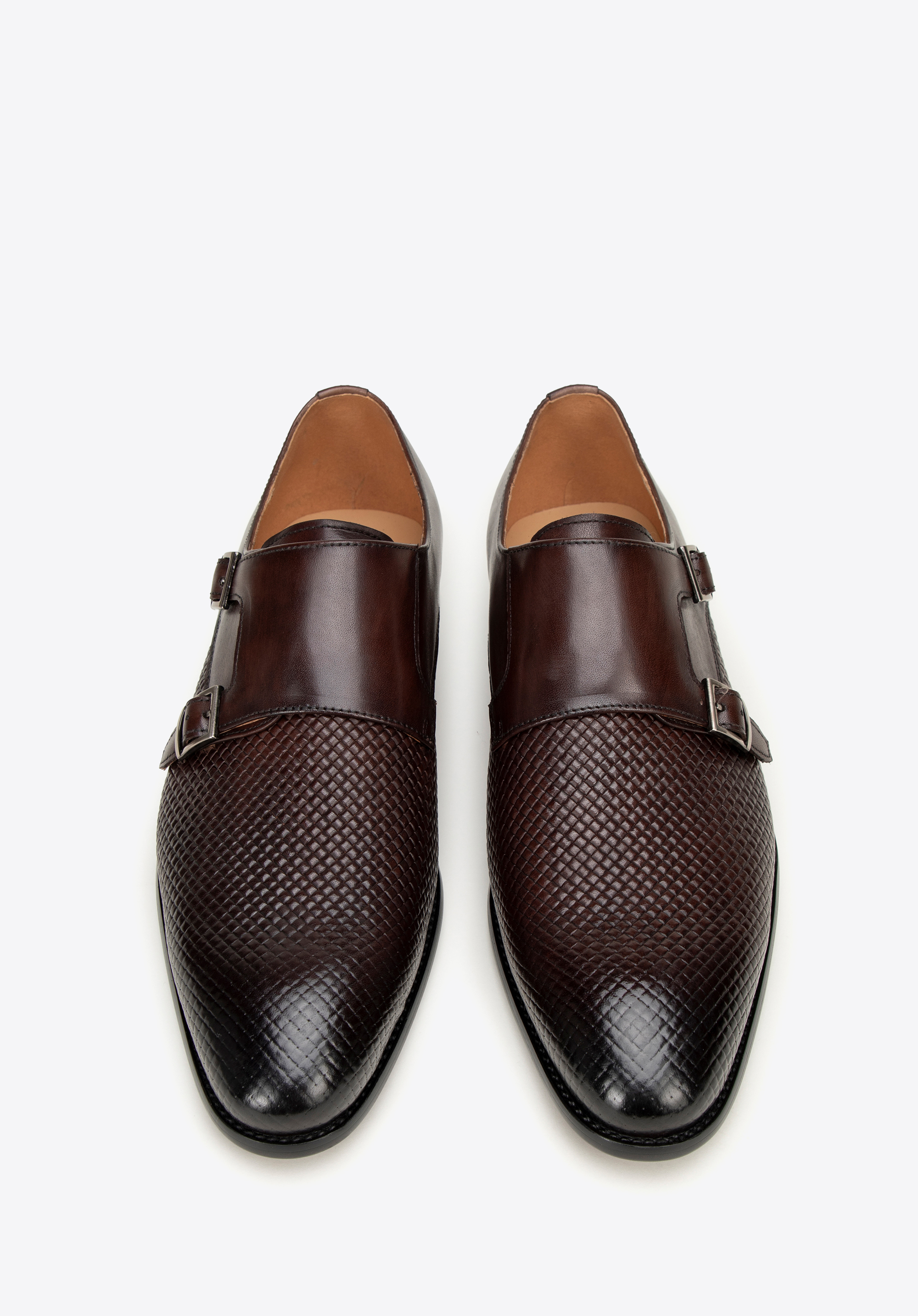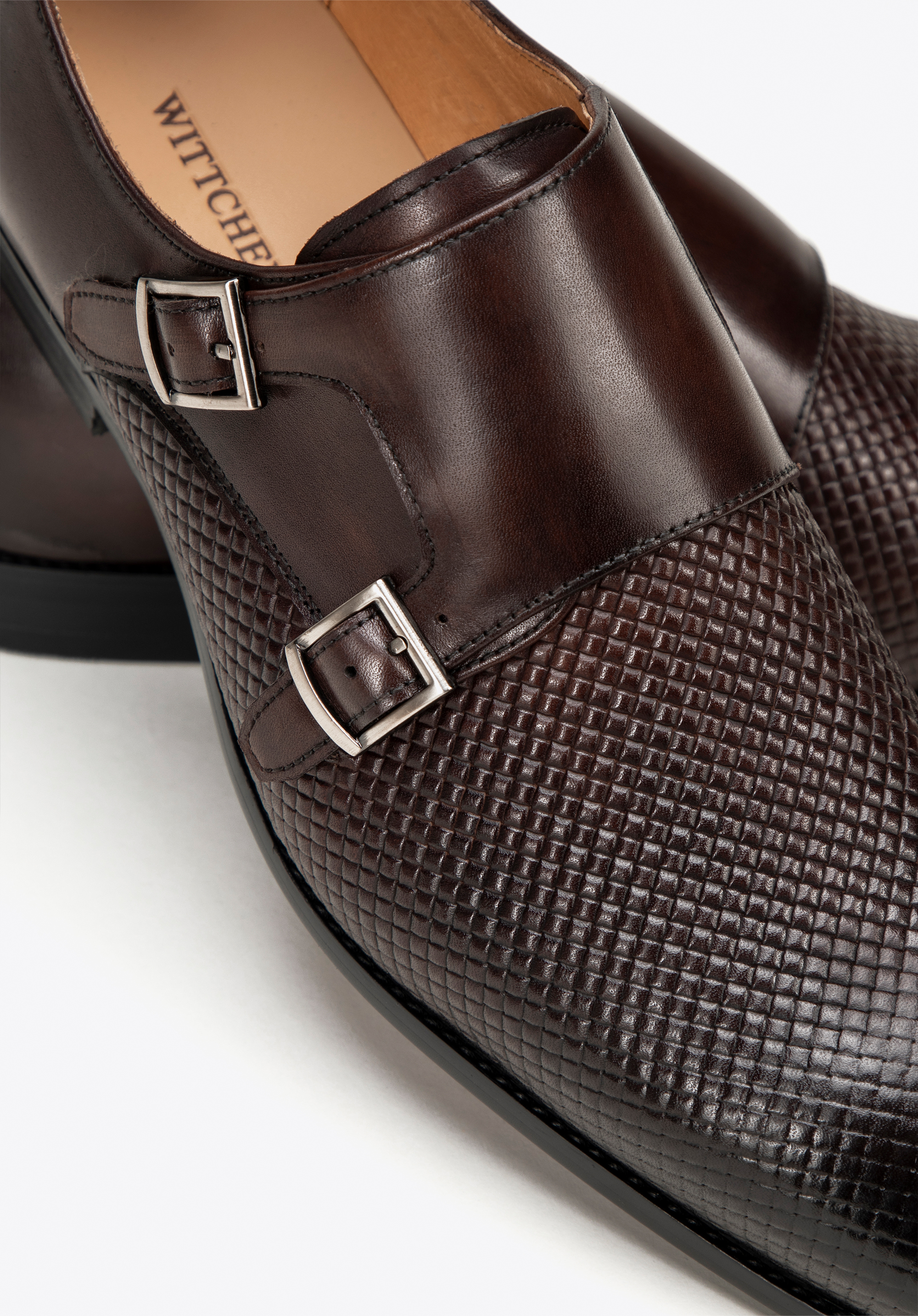 Poznaj perfekcyjne połączenie klasyki i nowoczesności z męskimi półbutami typu double monki. Buty zostały wykonane z najwyższej jakości skóry naturalnej licowej, która gwarantuje nie tylko trwałość, ale i luksusowy wygląd. Podeszwa, wyróżnia się odważnym czerwonym kolorem na spodzie, a klasyczny nosek w kształcie migdała i kwadratowe sprzączki przyciągają wzrok. Wyróżniającym detalem tego modelu jest plecionka, która dodaje unikalnego uroku i sprawia, że buty stają się prawdziwym majstersztykiem.