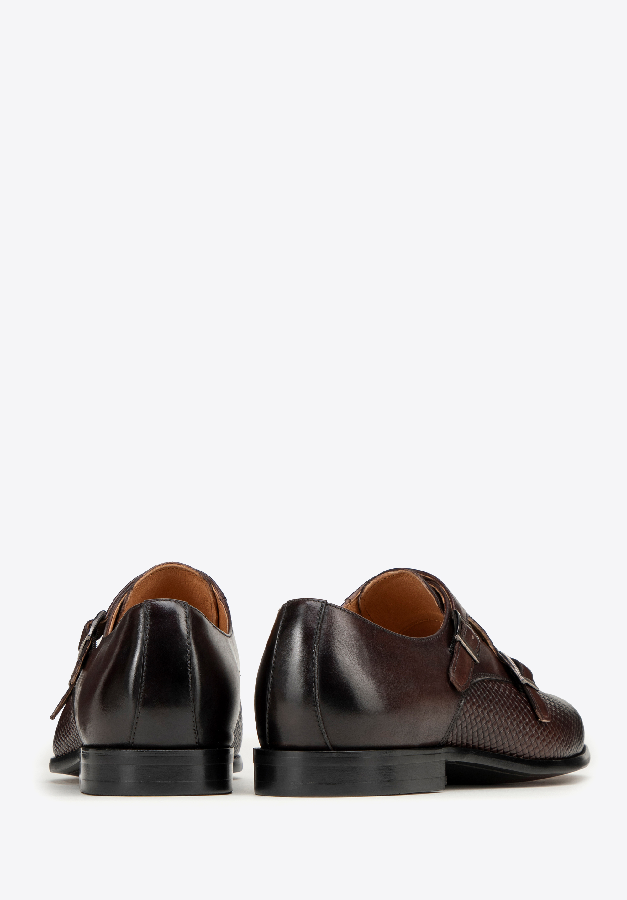 Nasza rada: Double monki idealnie komponują się z garniturem. Dobierz do tego zestawu odpowiednie dodatki, które podkreślają jednolity kolor metalowych elementów na butach.