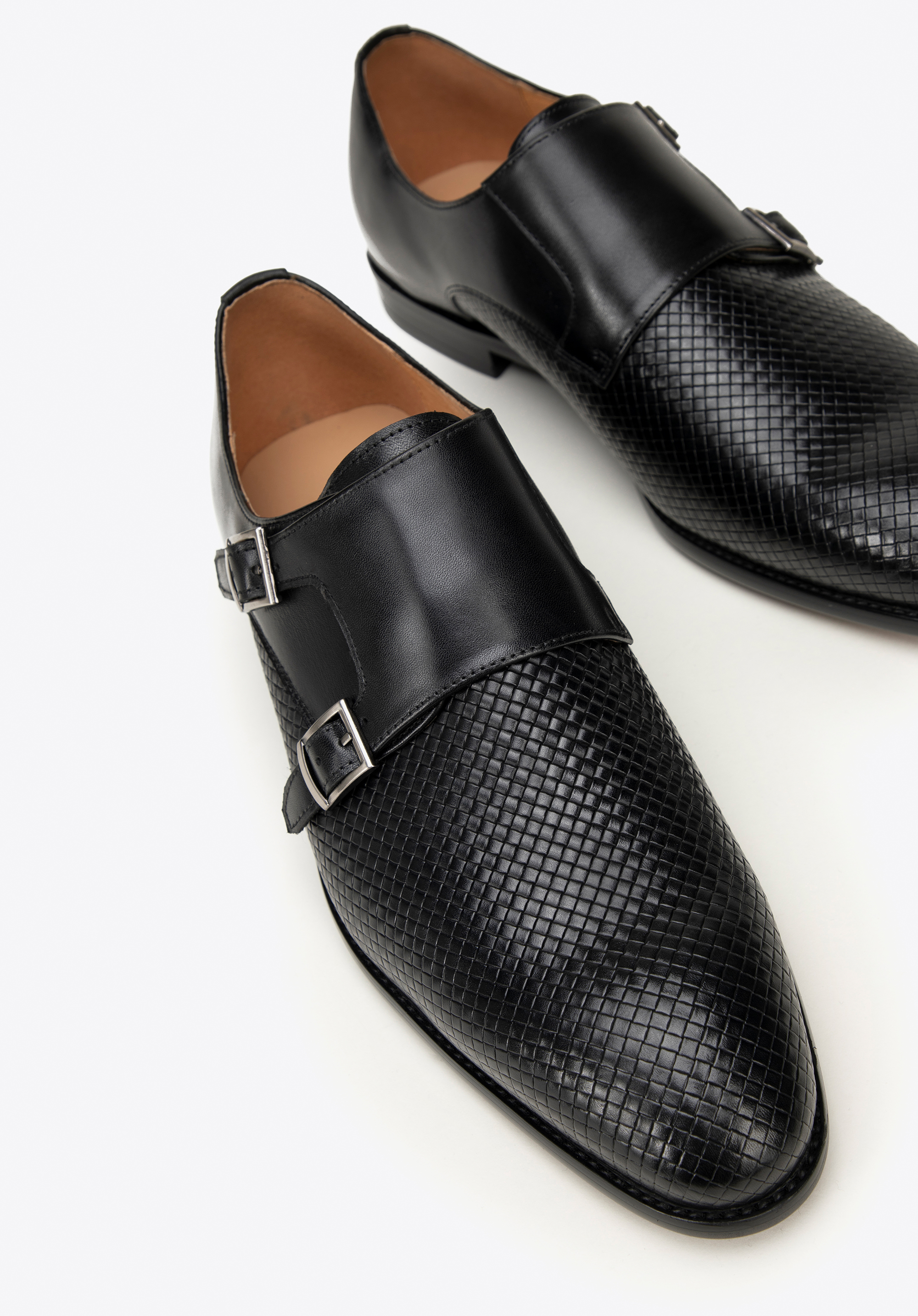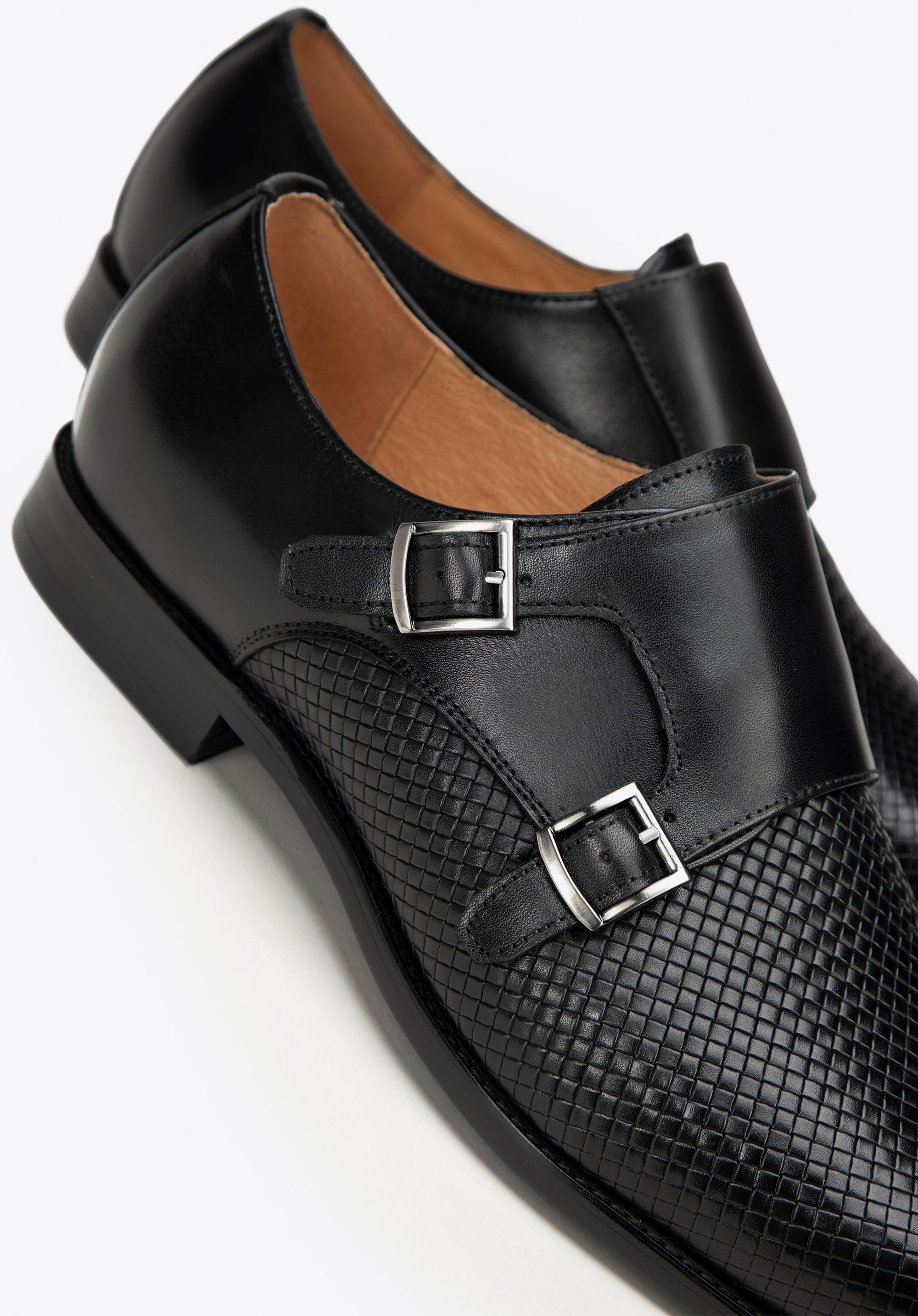 Poznaj perfekcyjne połączenie klasyki i nowoczesności z męskimi półbutami typu double monki. Buty zostały wykonane z najwyższej jakości skóry naturalnej licowej, która gwarantuje nie tylko trwałość, ale i luksusowy wygląd. Podeszwa, wyróżnia się odważnym czerwonym kolorem na spodzie, a klasyczny nosek w kształcie migdała i kwadratowe sprzączki przyciągają wzrok. Wyróżniającym detalem tego modelu jest plecionka, która dodaje unikalnego uroku i sprawia, że buty stają się prawdziwym majstersztykiem.