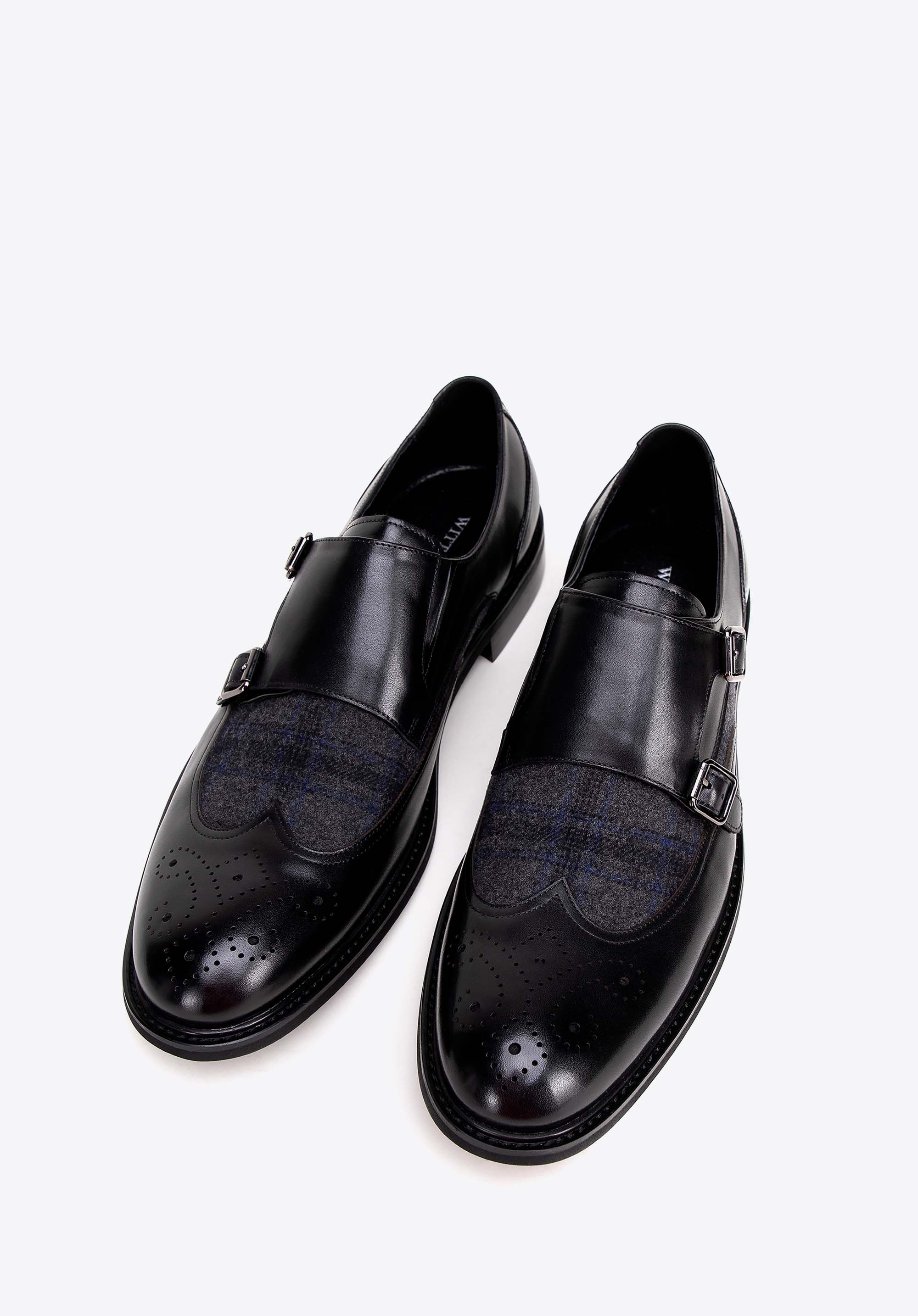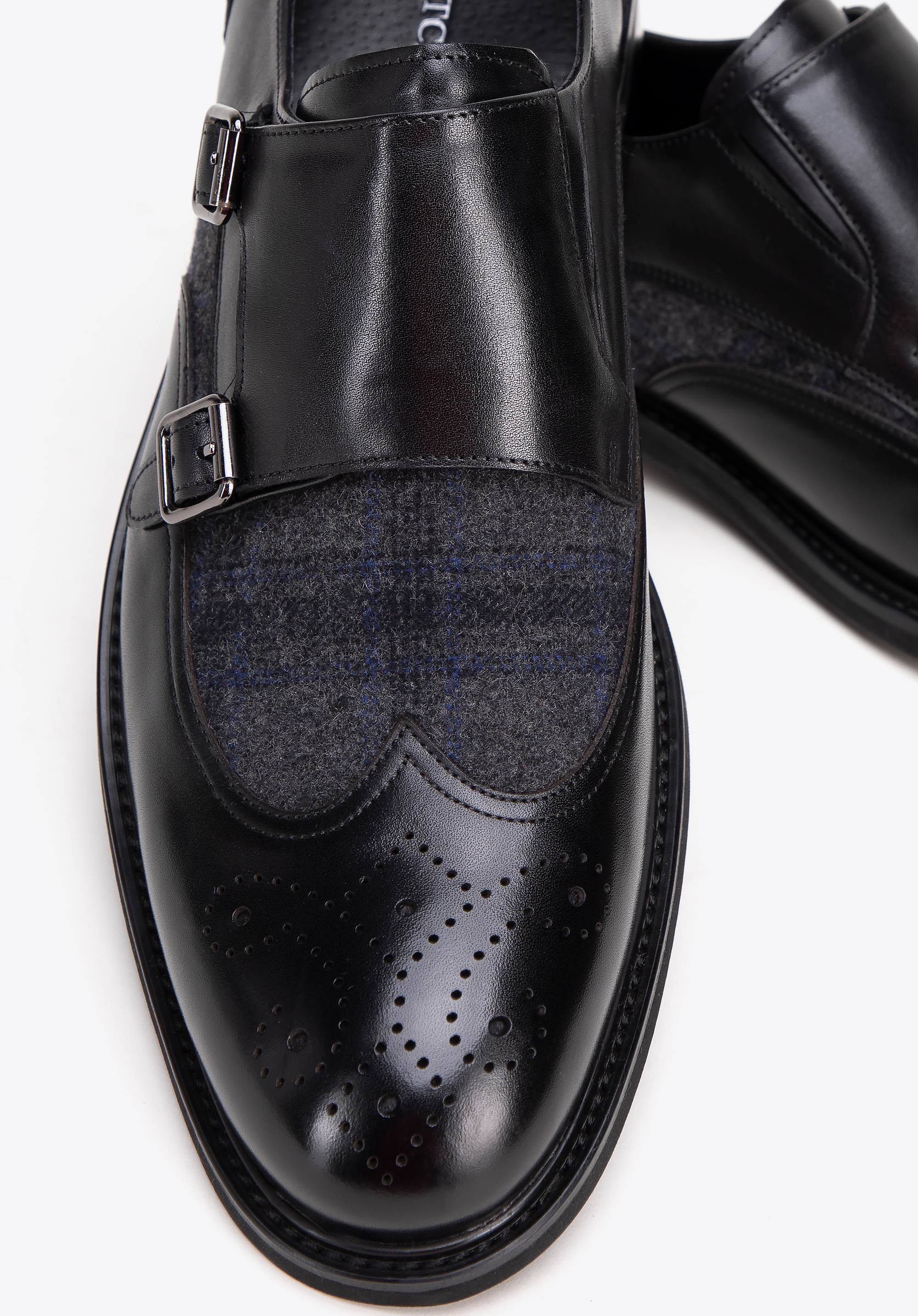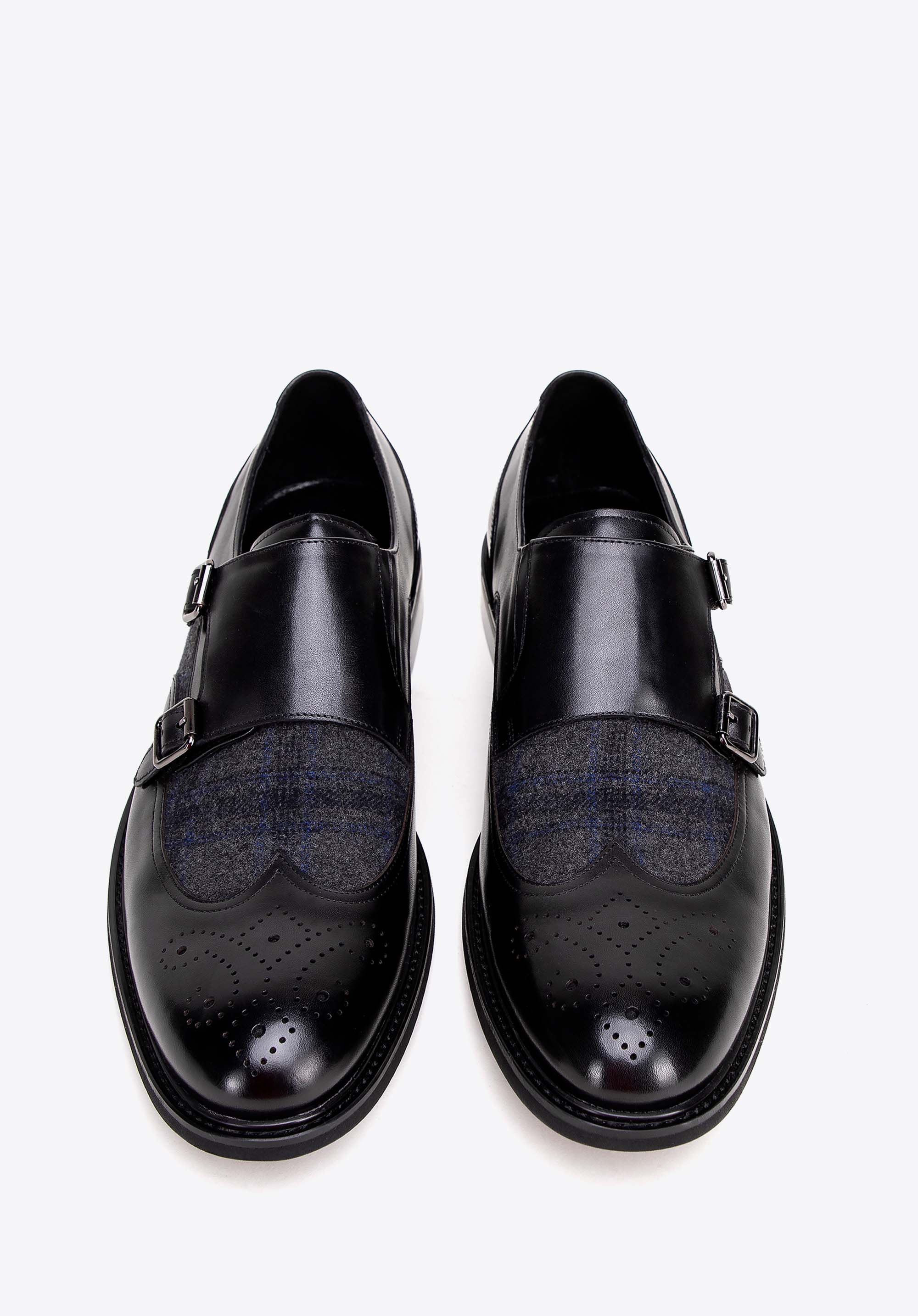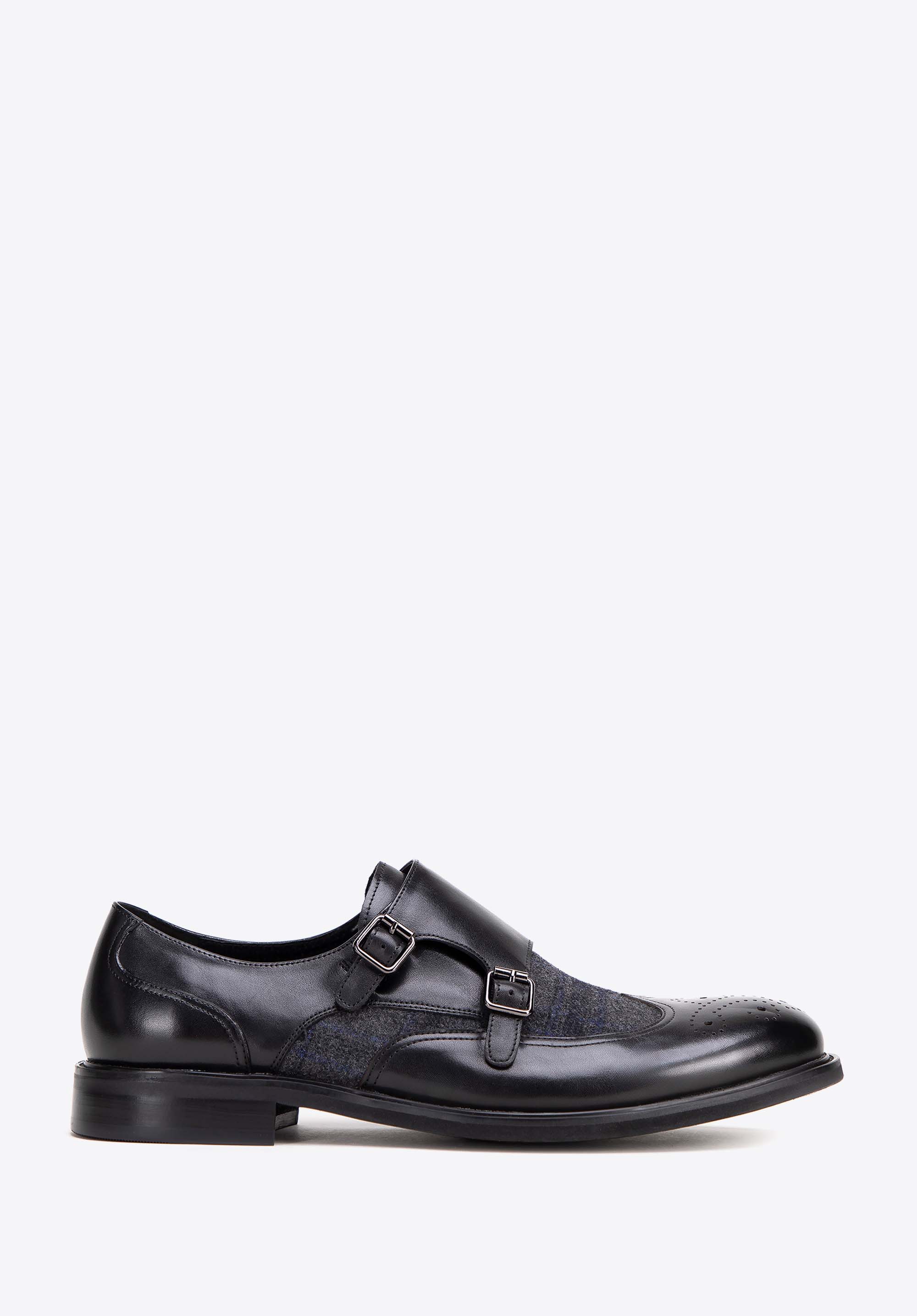 Odkryj wyjątkową elegancję i komfort w męskich półbutach double monki. Każda para została starannie wykonana z wysokiej jakości naturalnej skóry licowej, co gwarantuje nie tylko trwałość, ale także wyjątkowy wygląd. Wyściółka z miękkiej skóry oraz materiału włókienniczego zapewniają niezrównany komfort przez cały dzień. Wstawka w jodełkę nadaje butom niezwykłego uroku i charakteru, podkreślając ich wysoką jakość i staranność wykonania. Dzięki solidnej konstrukcji i wysokiej jakości materiałom będziesz cieszyć się nimi przez wiele sezonów.