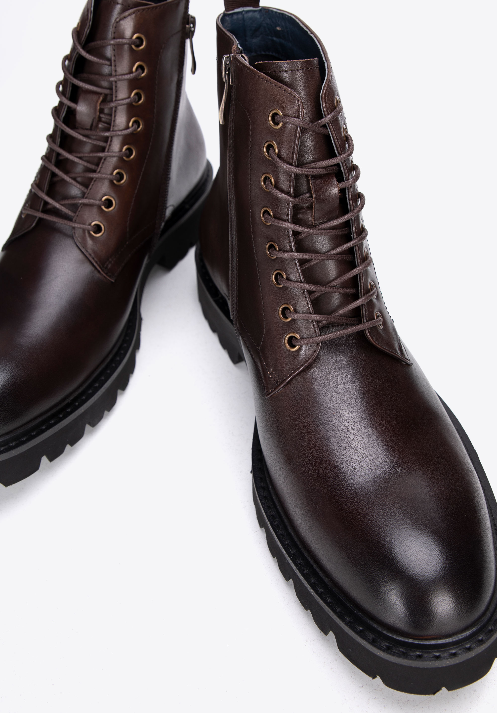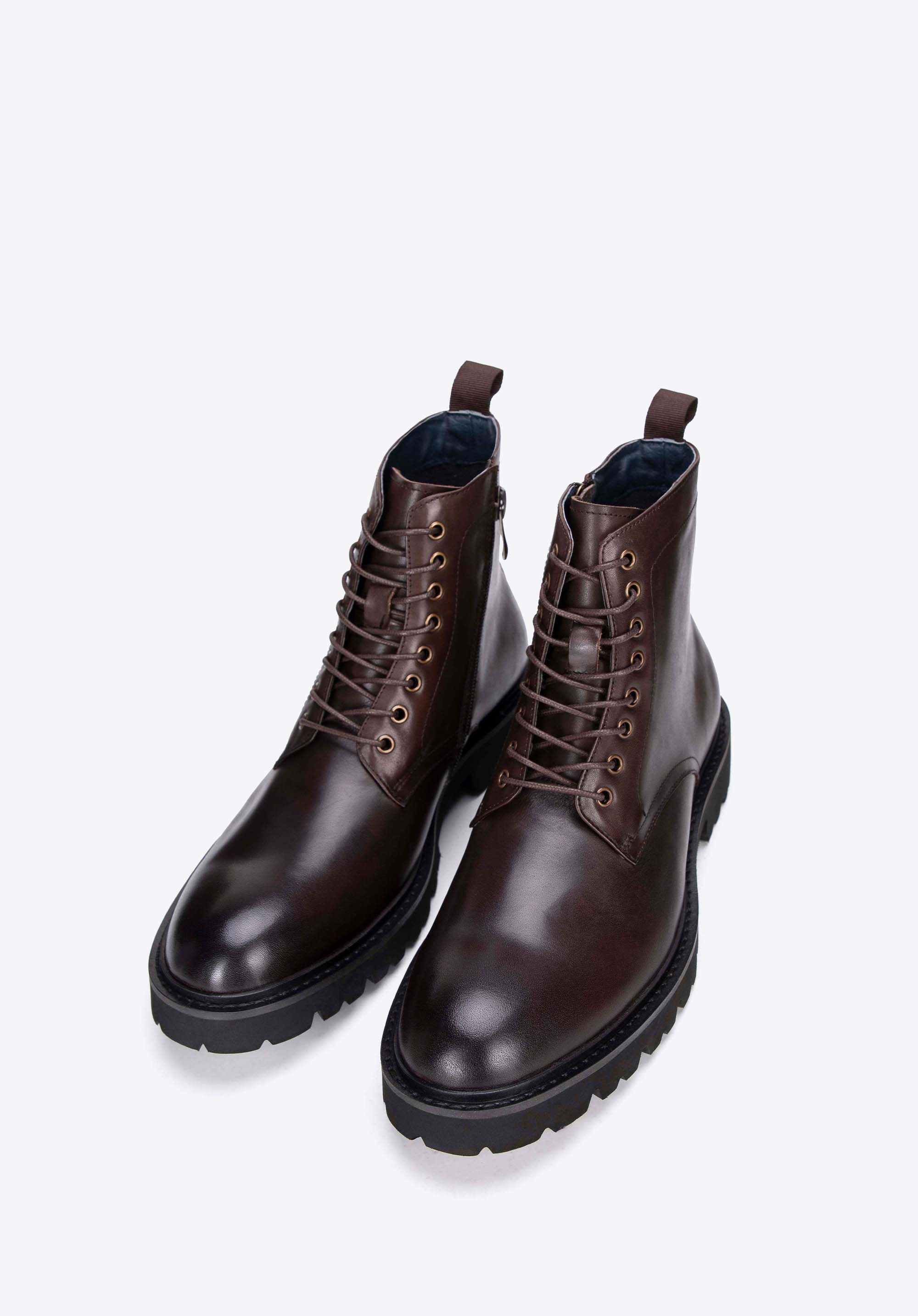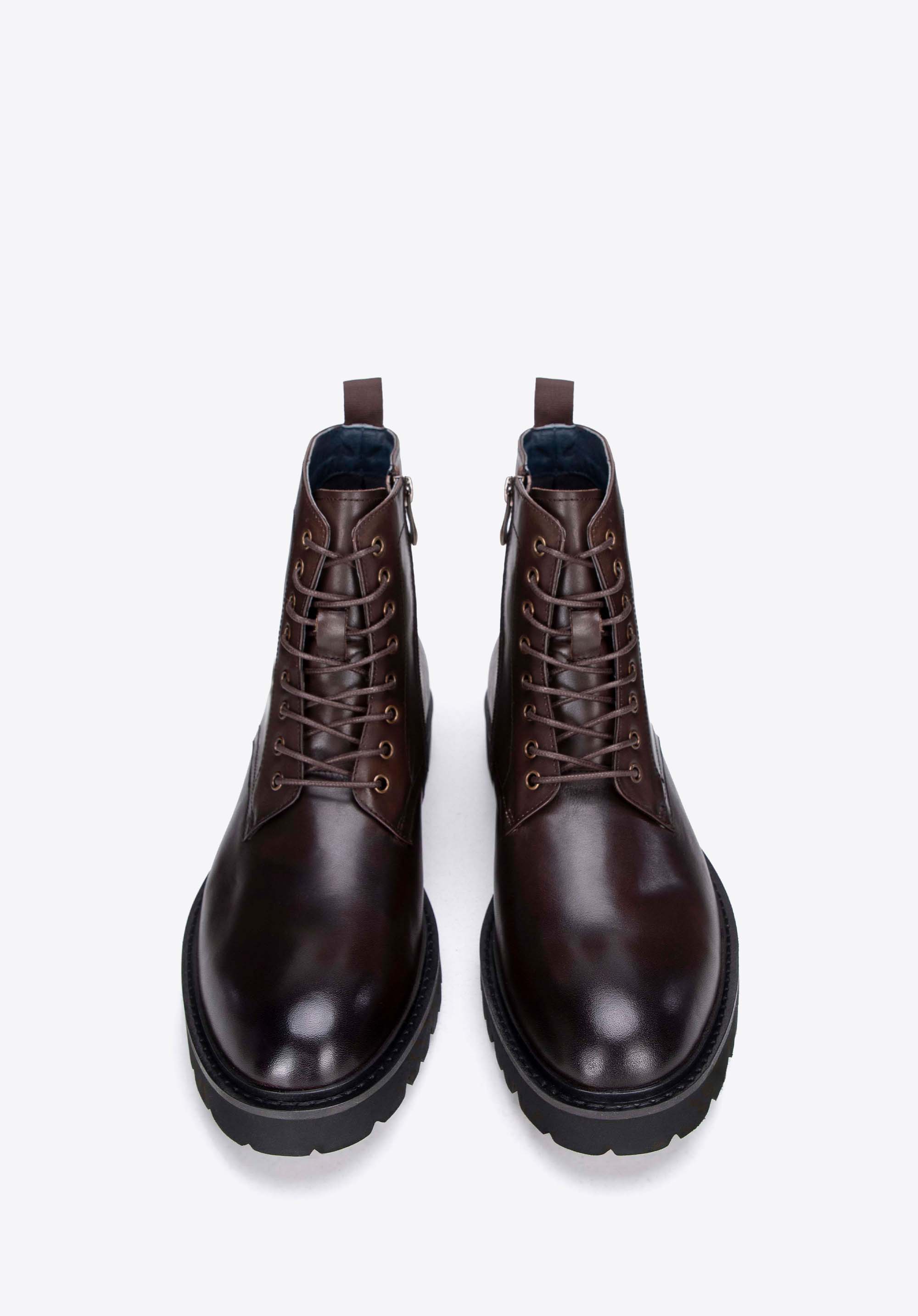 Męskie glany skórzane sznurowane brązowe