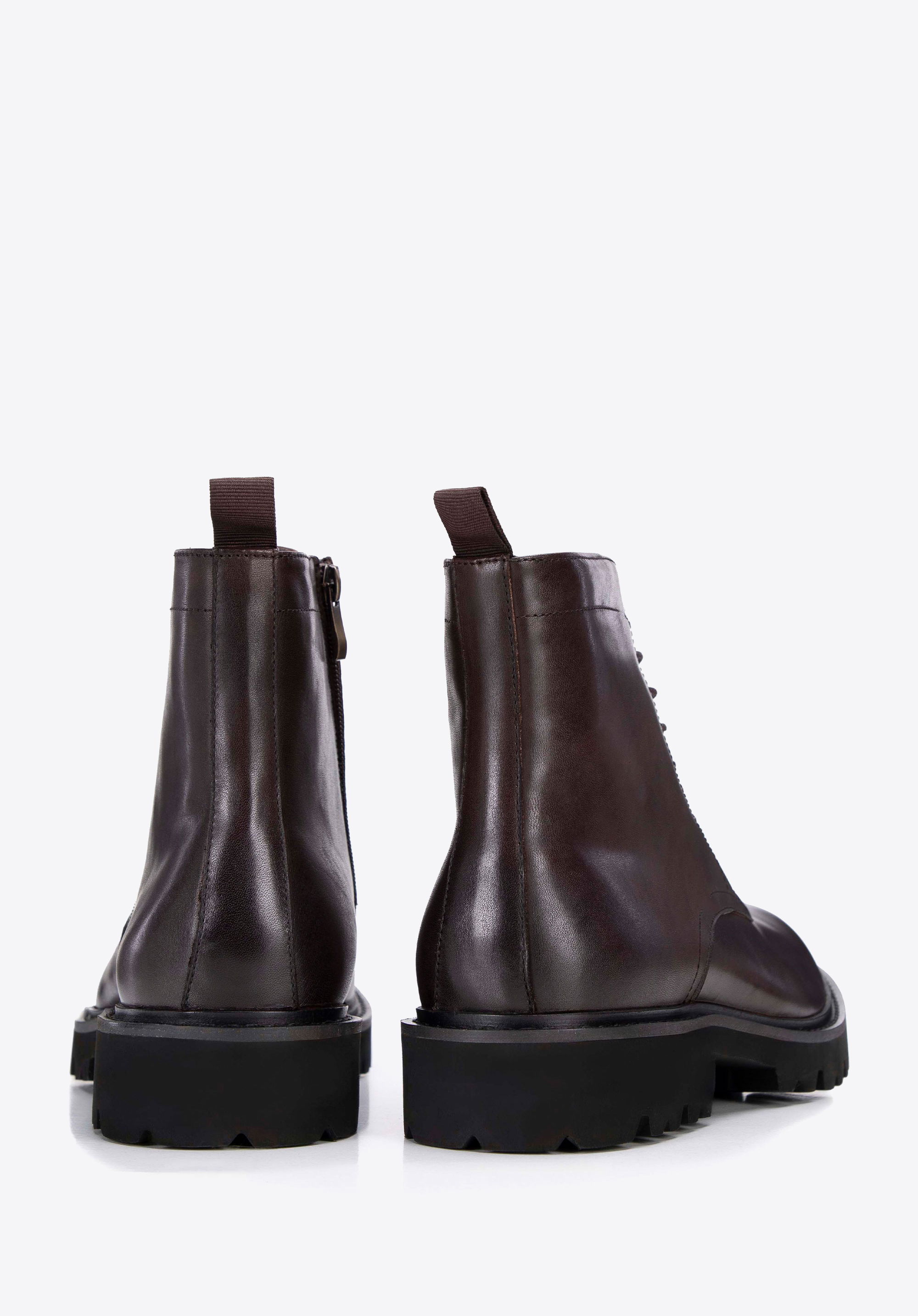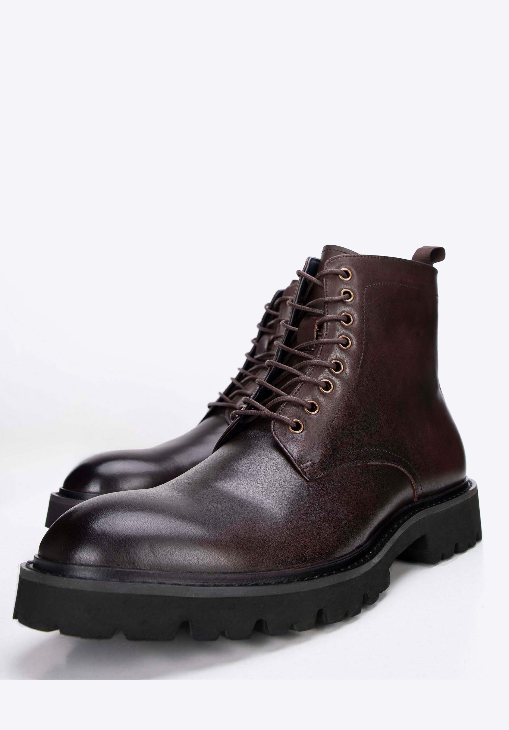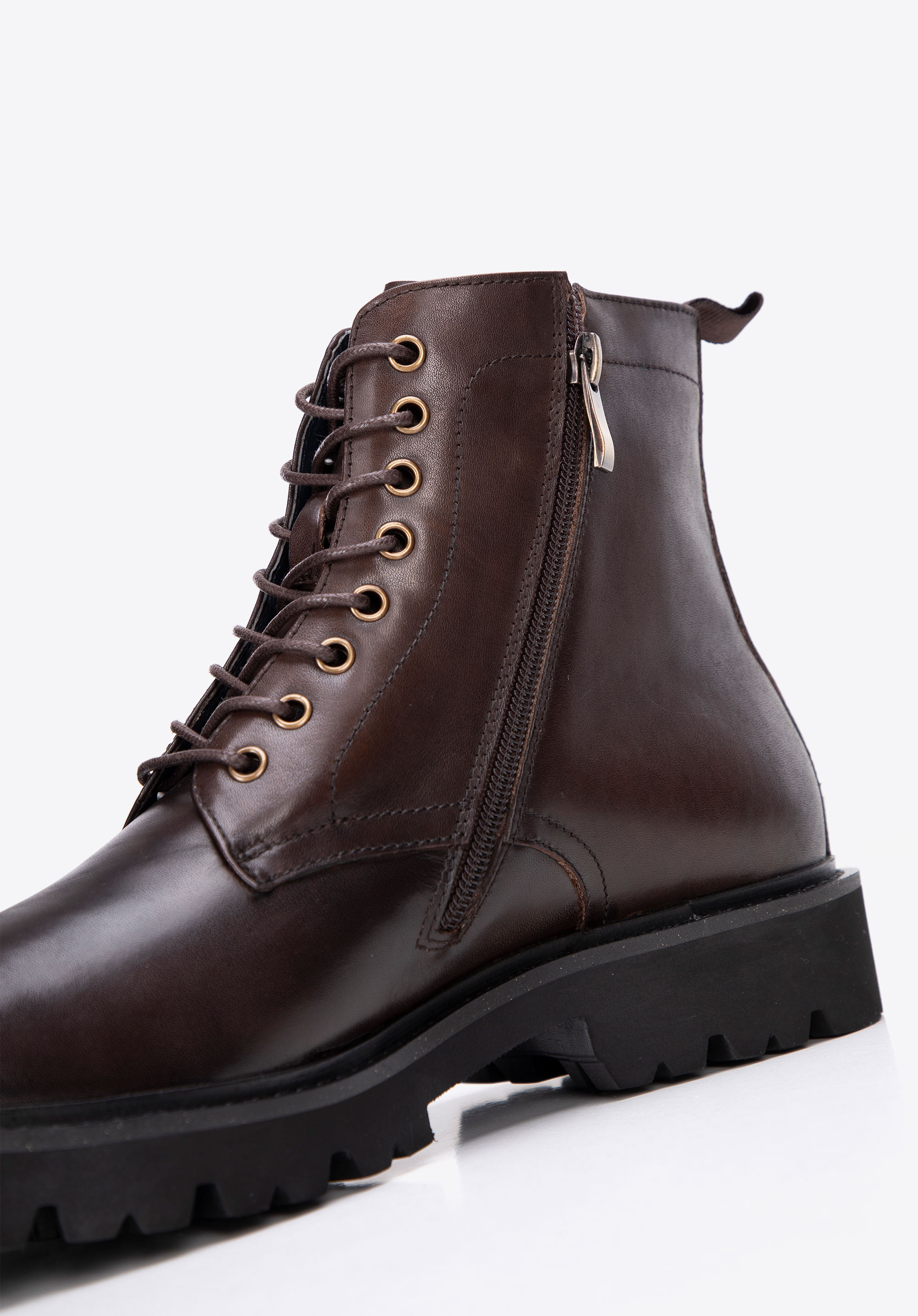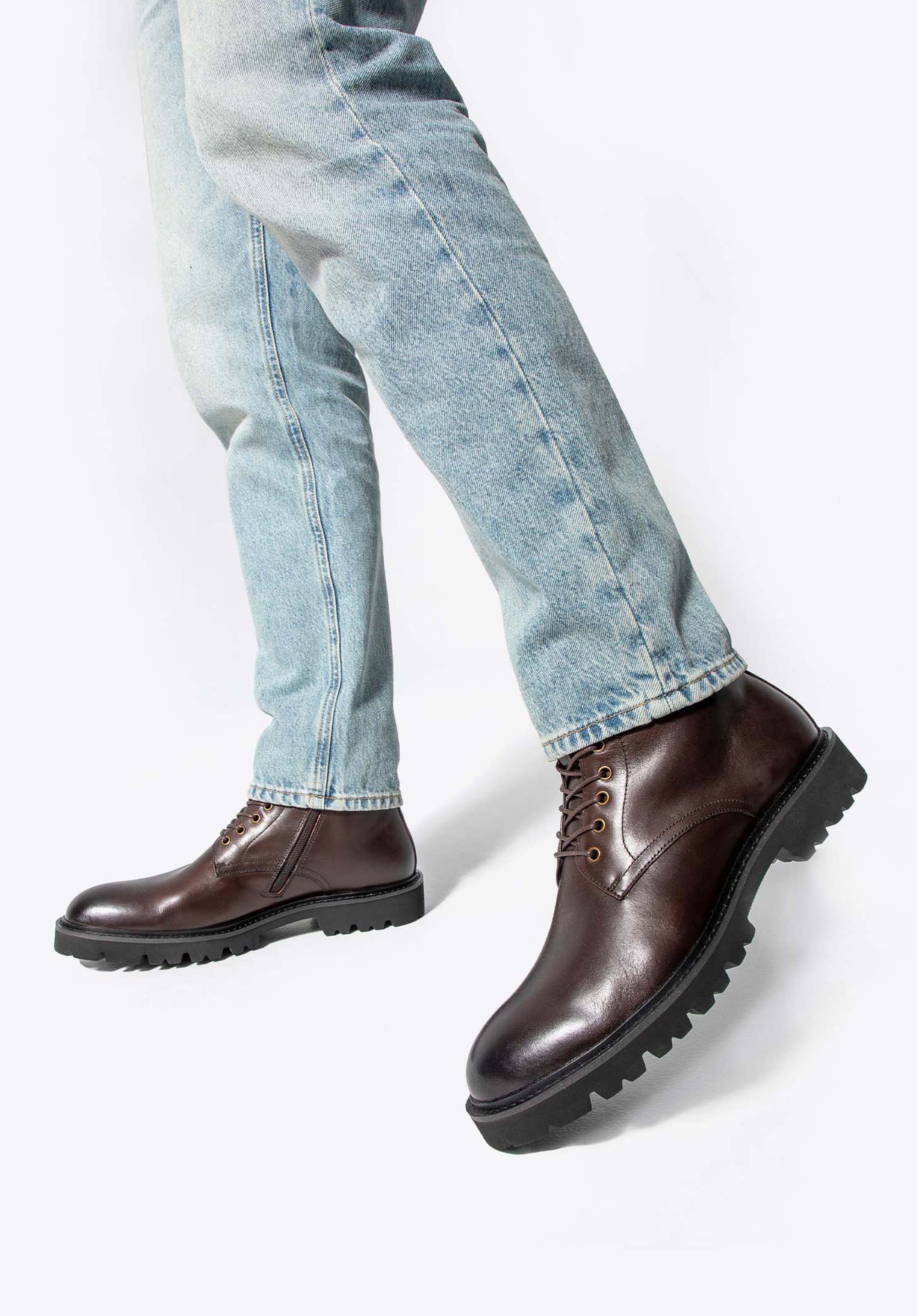 Męskie glany skórzane sznurowane brązowe
