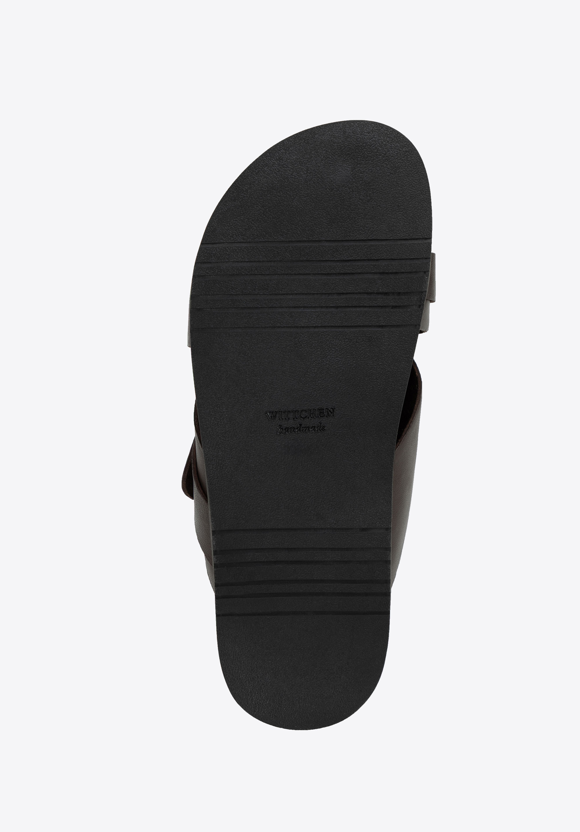 Skórzane męskie klapki z krzyżującymi się paskami i sprzączką