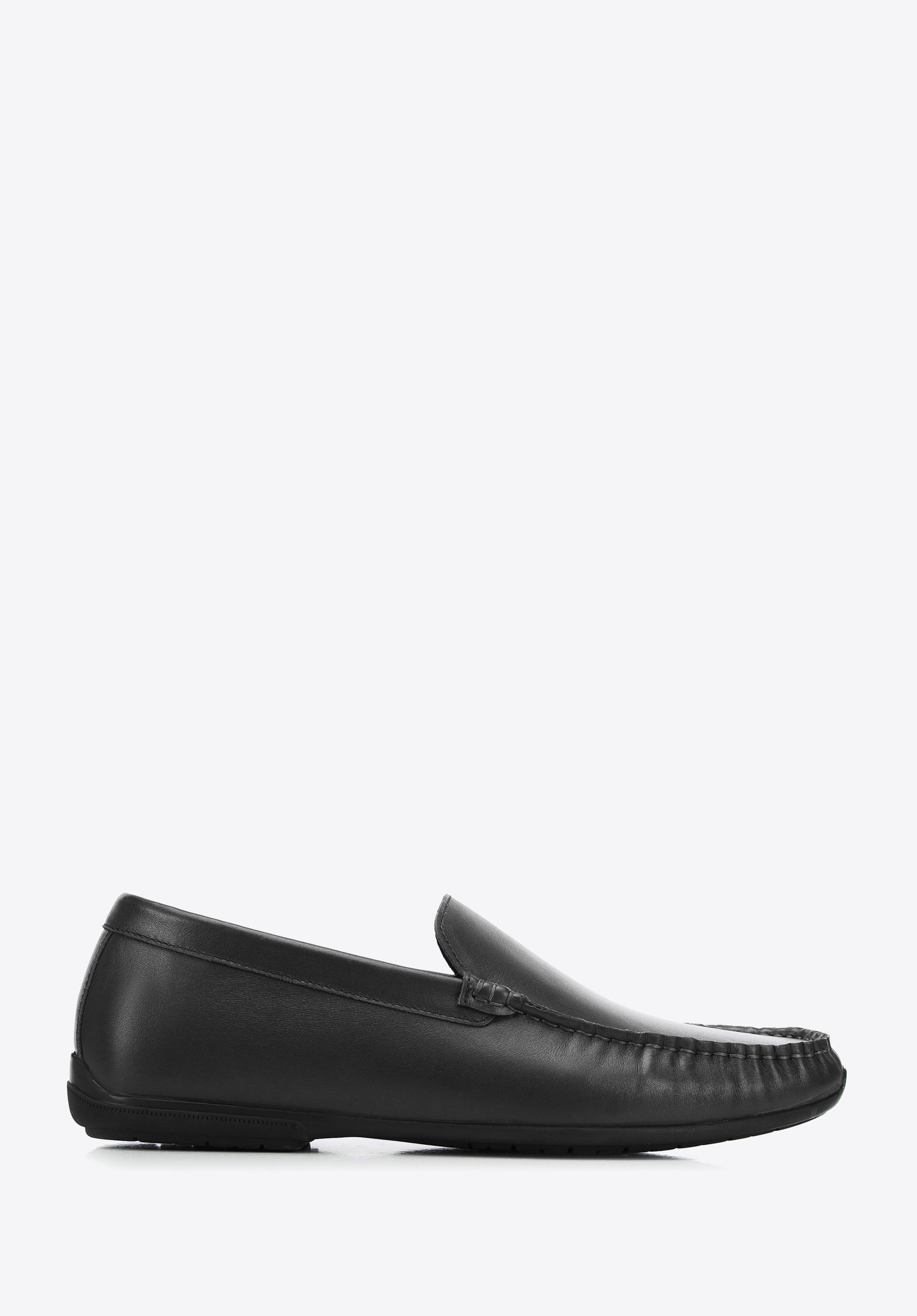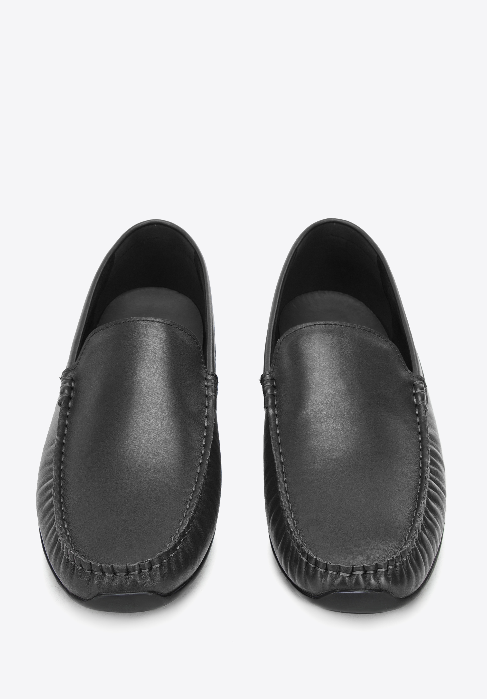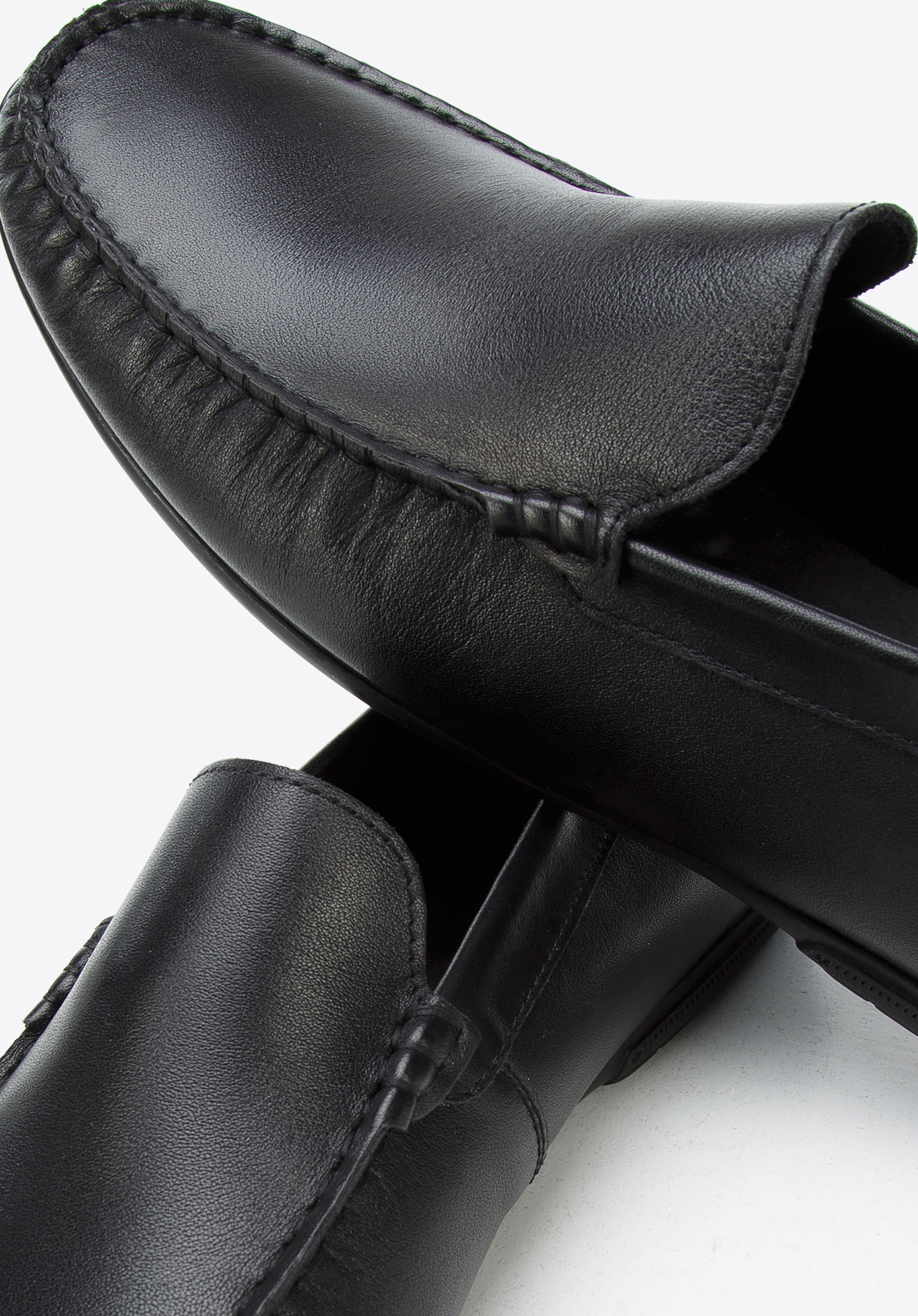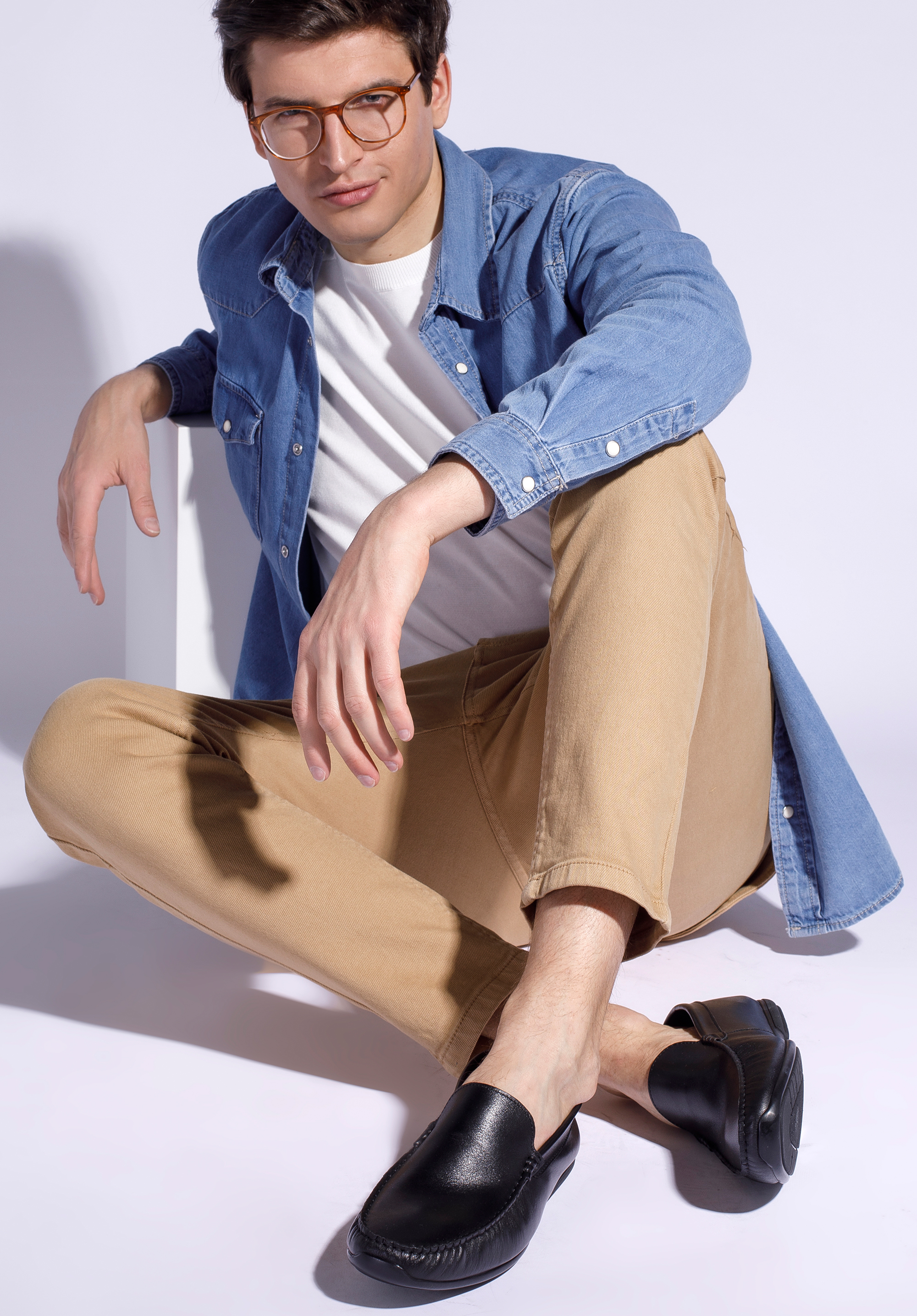 Te stylowe męskie mokasyny to świetny dodatek dla każdego eleganckiego mężczyzny. Wykonane zostały z miękkiej skóry naturalnej, która świetnie dopasowuje się do stopy, a skórzana wkładka zadba o komfort stóp przez cały dzień. Buty mają typową dla mokasynów samochodowych zaokrągloną gumową podeszwę bez zaznaczonego obcasa – elastyczną i prezentującą się stylowo. Klasyczny fason mokasynów z obszytym noskiem sprawdzi się do wielu eleganckich, jak i codziennych ubrań. Możesz je włożyć na przykład do dżinsów i koszuli, ale także do letniego, nieformalnego garnituru z bawełny czy lnu. Klasyczne męskie mokasyny skórzane to stylowy dodatek, który warto mieć w szafie.