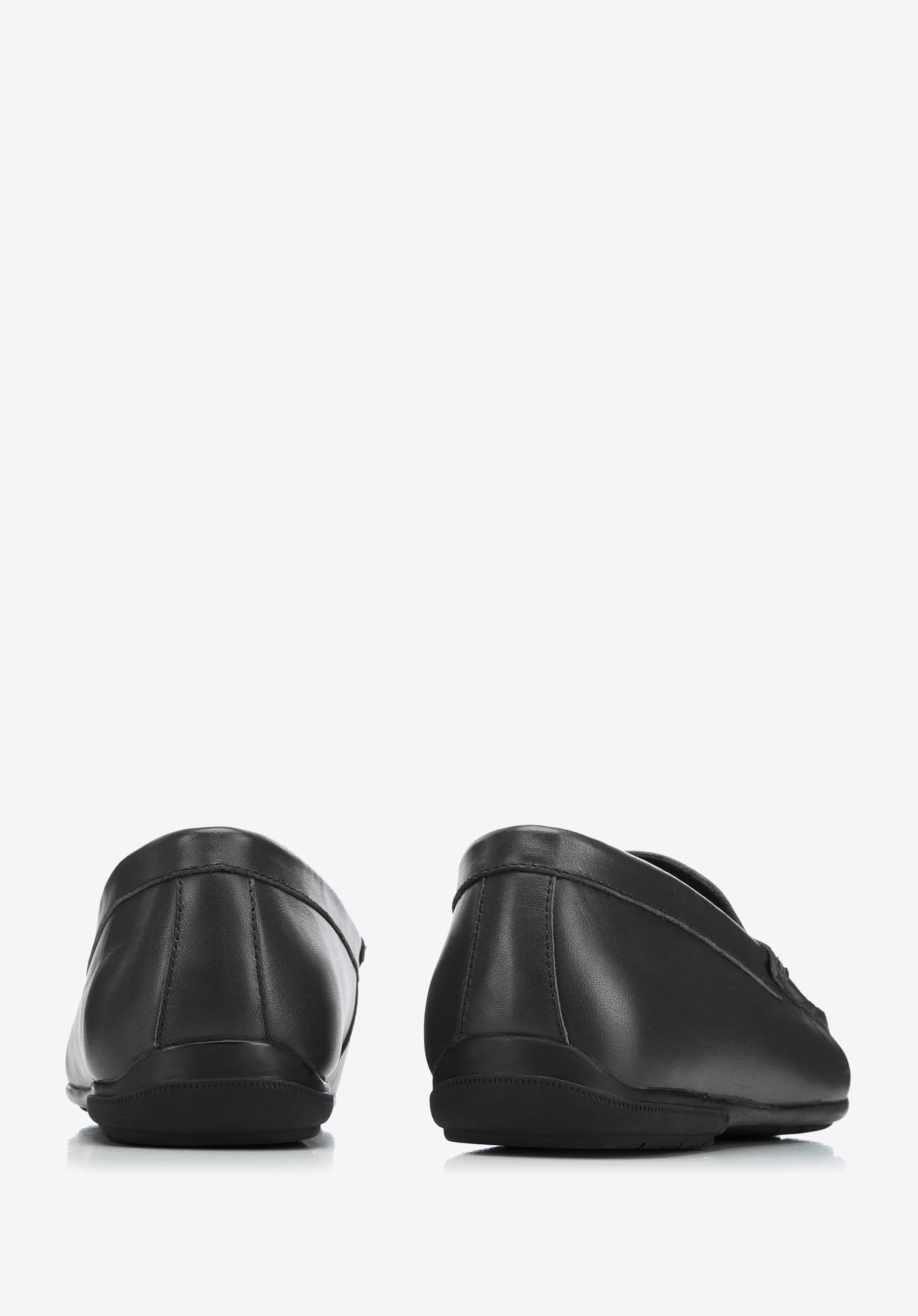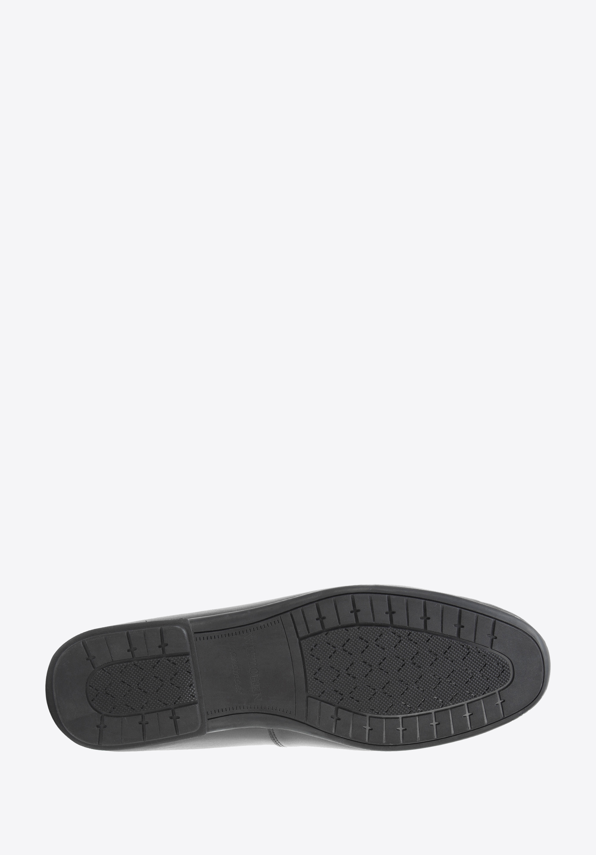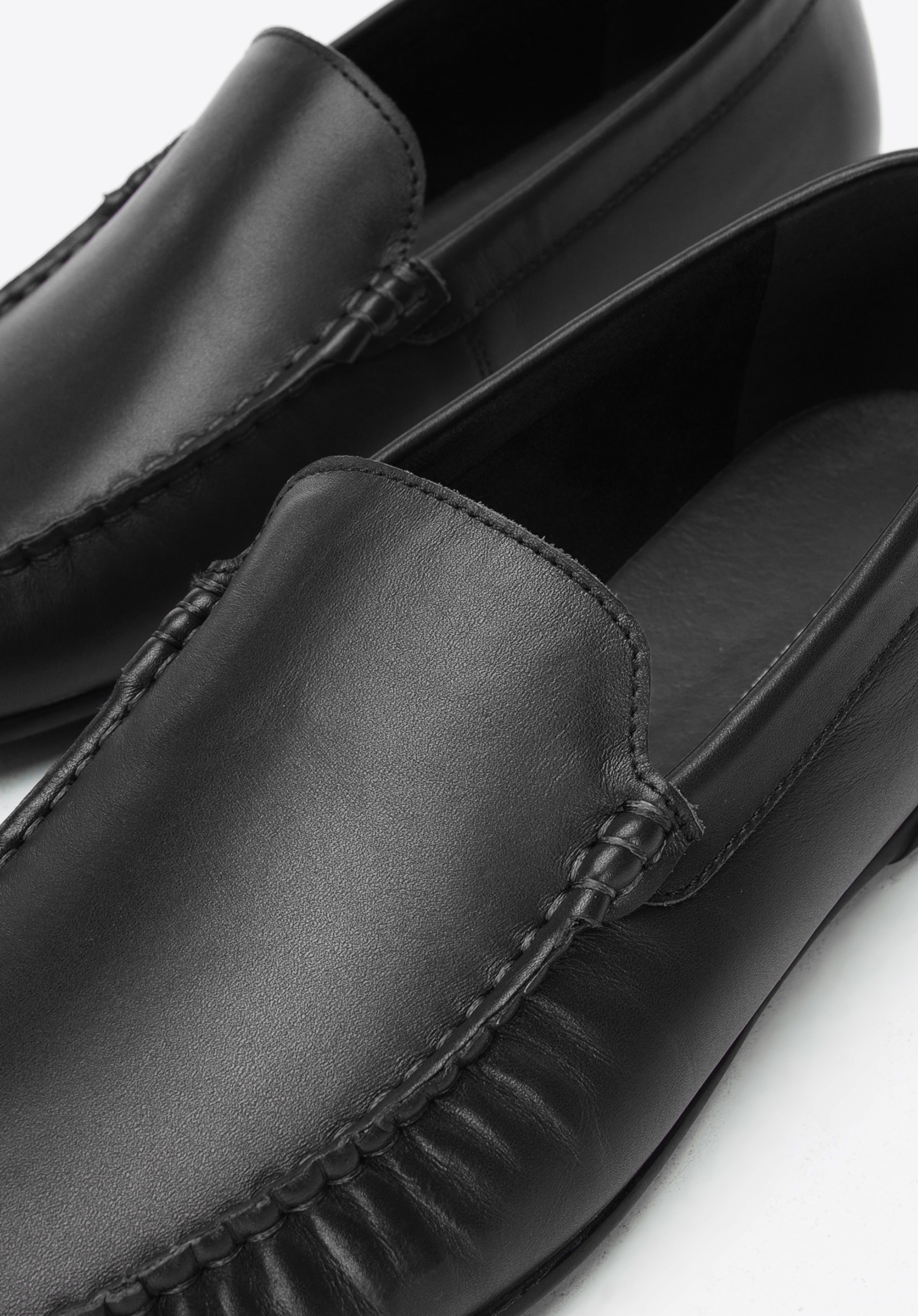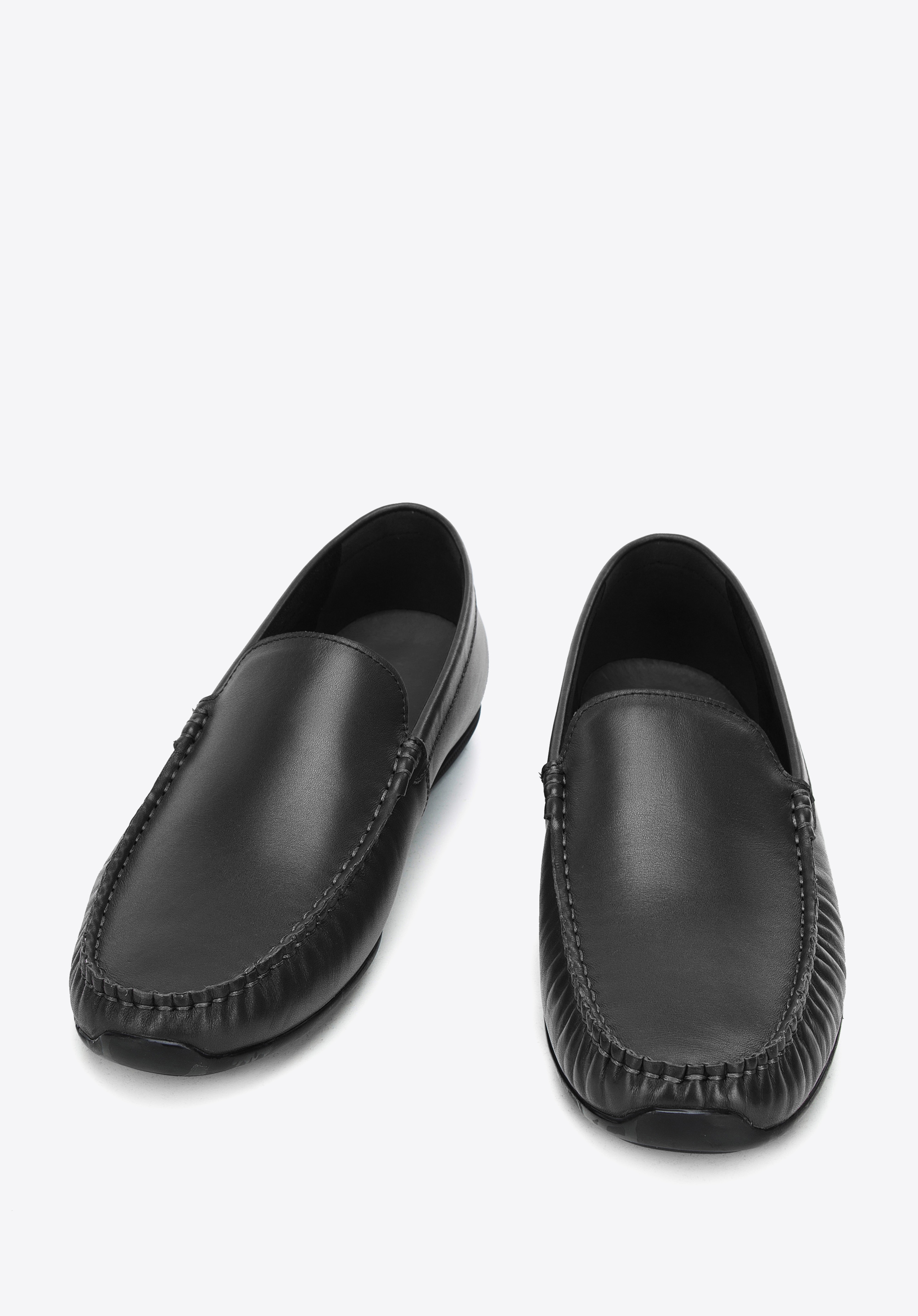 Te stylowe męskie mokasyny to świetny dodatek dla każdego eleganckiego mężczyzny. Wykonane zostały z miękkiej skóry naturalnej, która świetnie dopasowuje się do stopy, a skórzana wkładka zadba o komfort stóp przez cały dzień. Buty mają typową dla mokasynów samochodowych zaokrągloną gumową podeszwę bez zaznaczonego obcasa – elastyczną i prezentującą się stylowo. Klasyczny fason mokasynów z obszytym noskiem sprawdzi się do wielu eleganckich, jak i codziennych ubrań. Możesz je włożyć na przykład do dżinsów i koszuli, ale także do letniego, nieformalnego garnituru z bawełny czy lnu. Klasyczne męskie mokasyny skórzane to stylowy dodatek, który warto mieć w szafie.