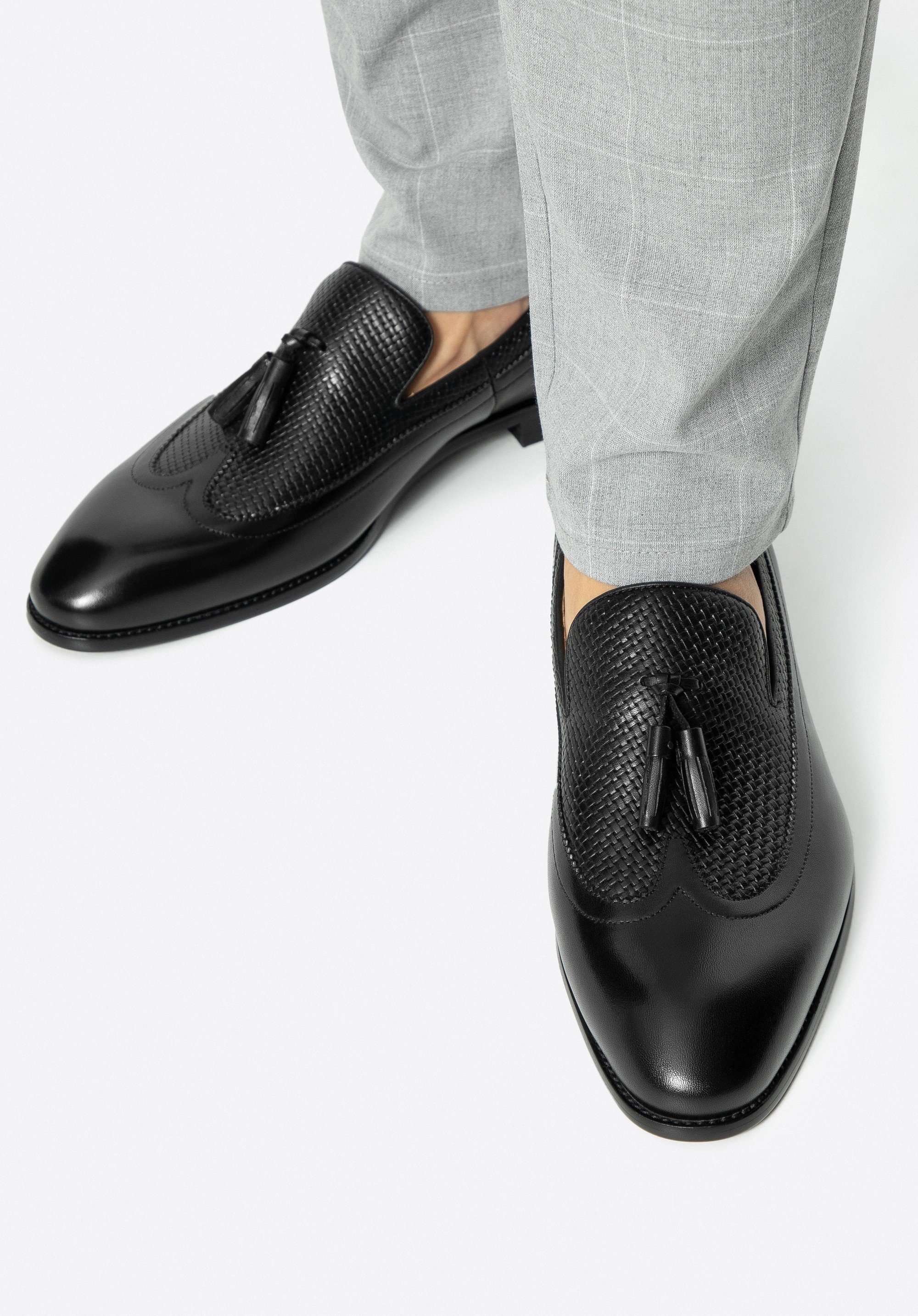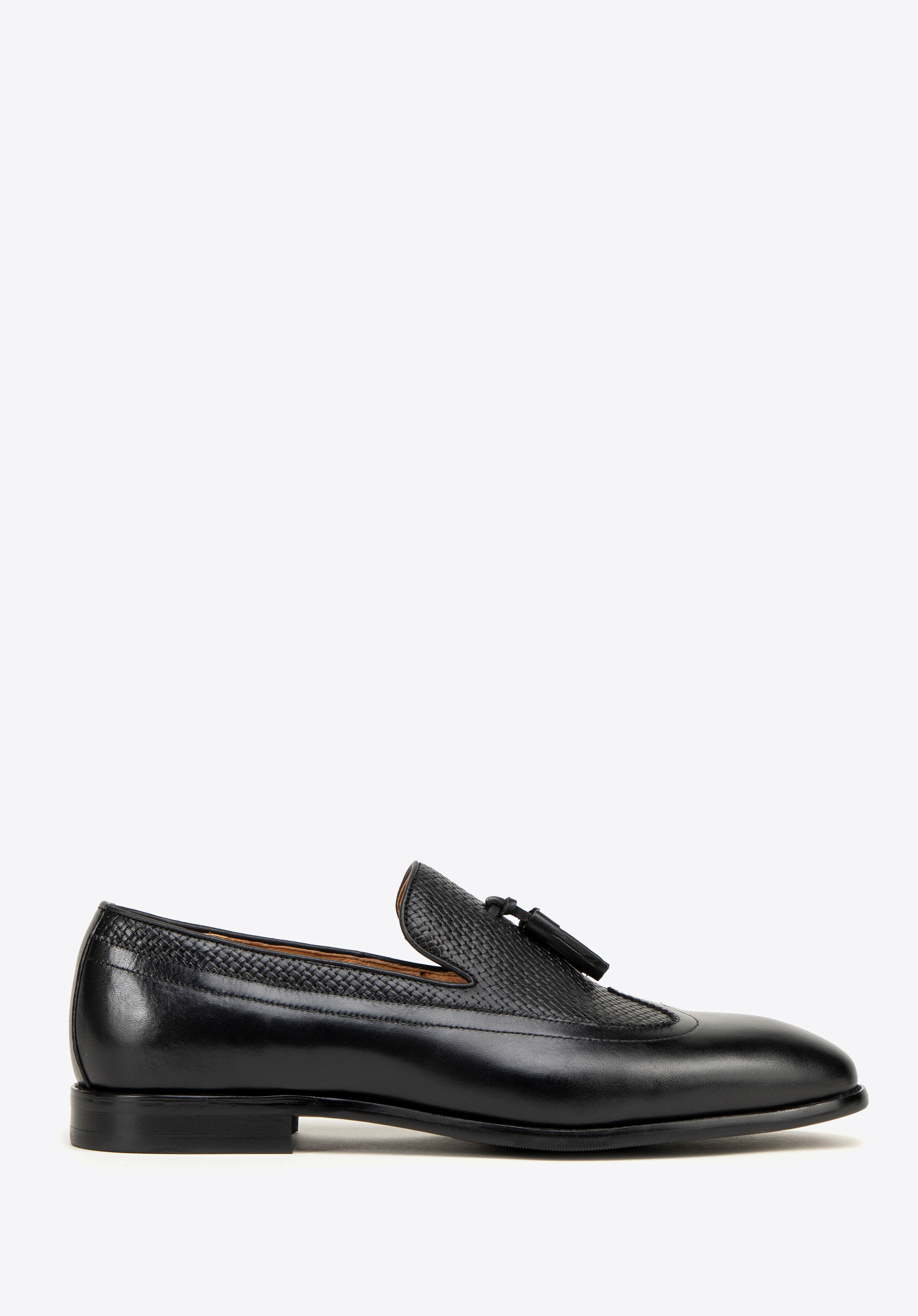Zanurz się w świecie elegancji, dzięki męskim mokasynom, stanowiącym kwintesencję komfortu i stylu. Mokasyny wykonane z najwyższej jakości skóry naturalnej licowej są nie tylko symbolem luksusu, ale także gwarancją trwałości i niepowtarzalnego wyglądu. Wyściółka została wykonana ze skóry naturalnej, dzięki czemu zapewnia komfort noszenia przez cały dzień. Klasyczny fason mokasynów oraz zaokrąglony nosek dodają finezji i sprawiają, że buty są bardziej uniwersalne w stylizacji. Ten model wyróżnia się unikalnymi detalami w postaci plecionki i chwostu, które podkreślają ich styl.