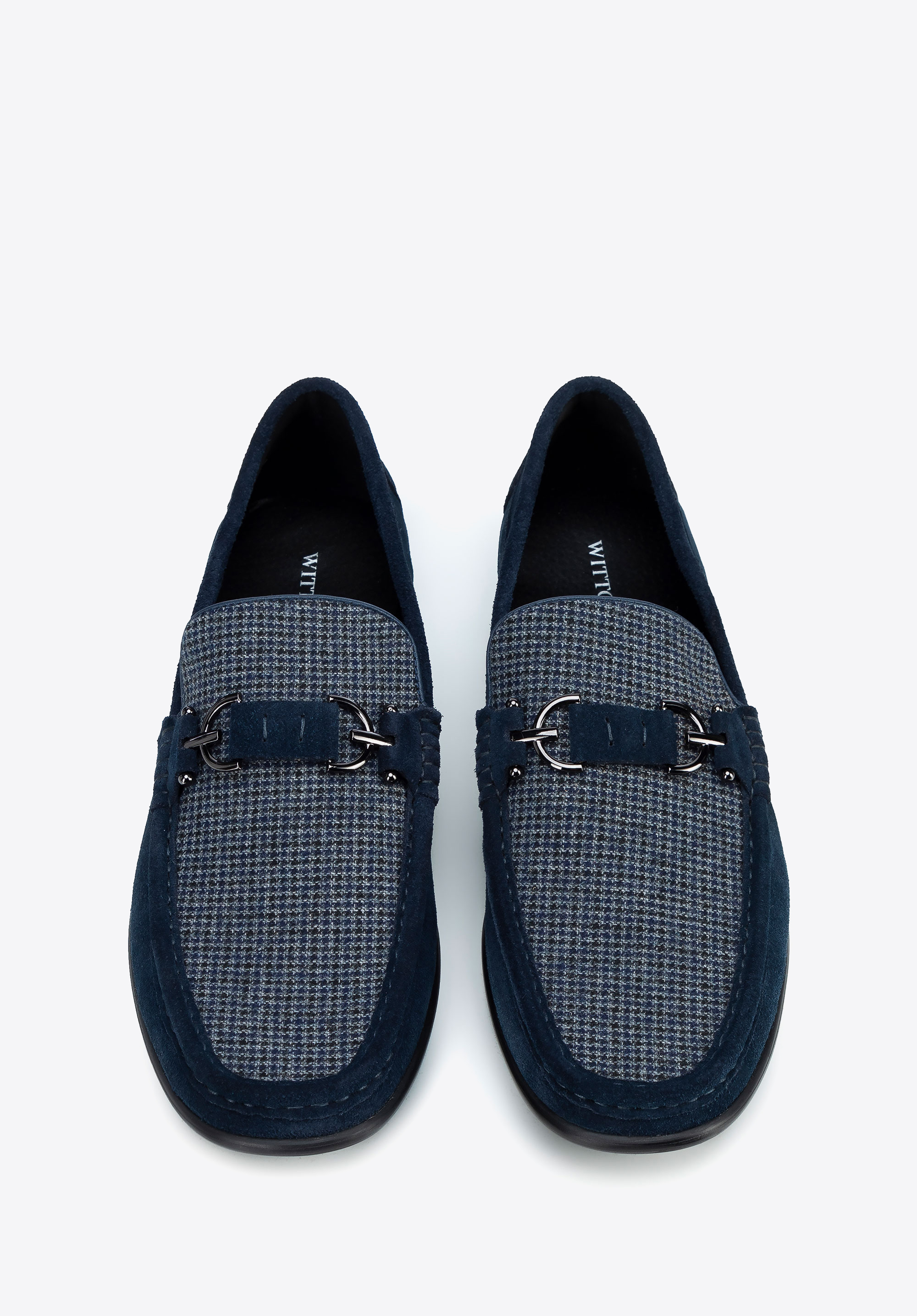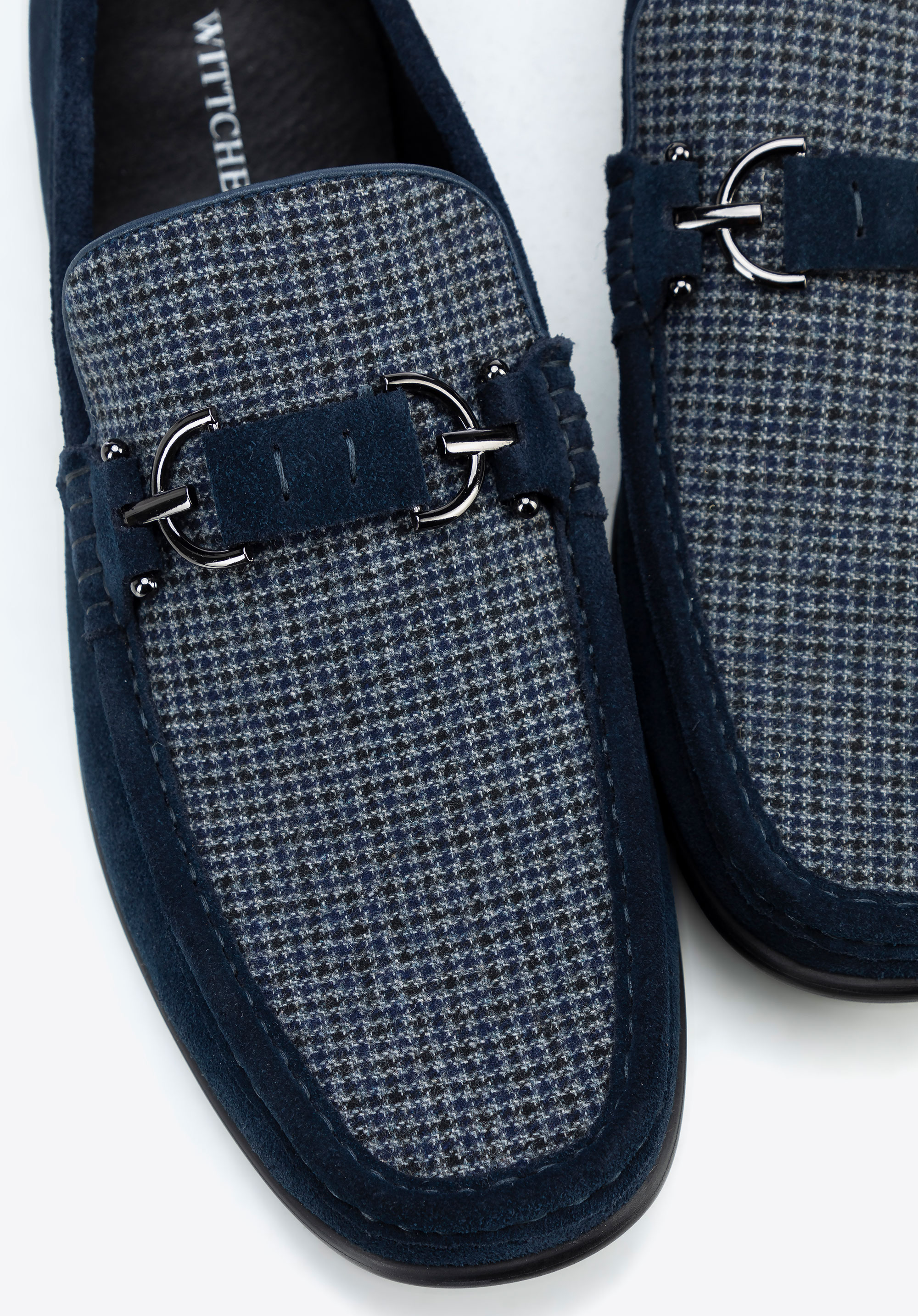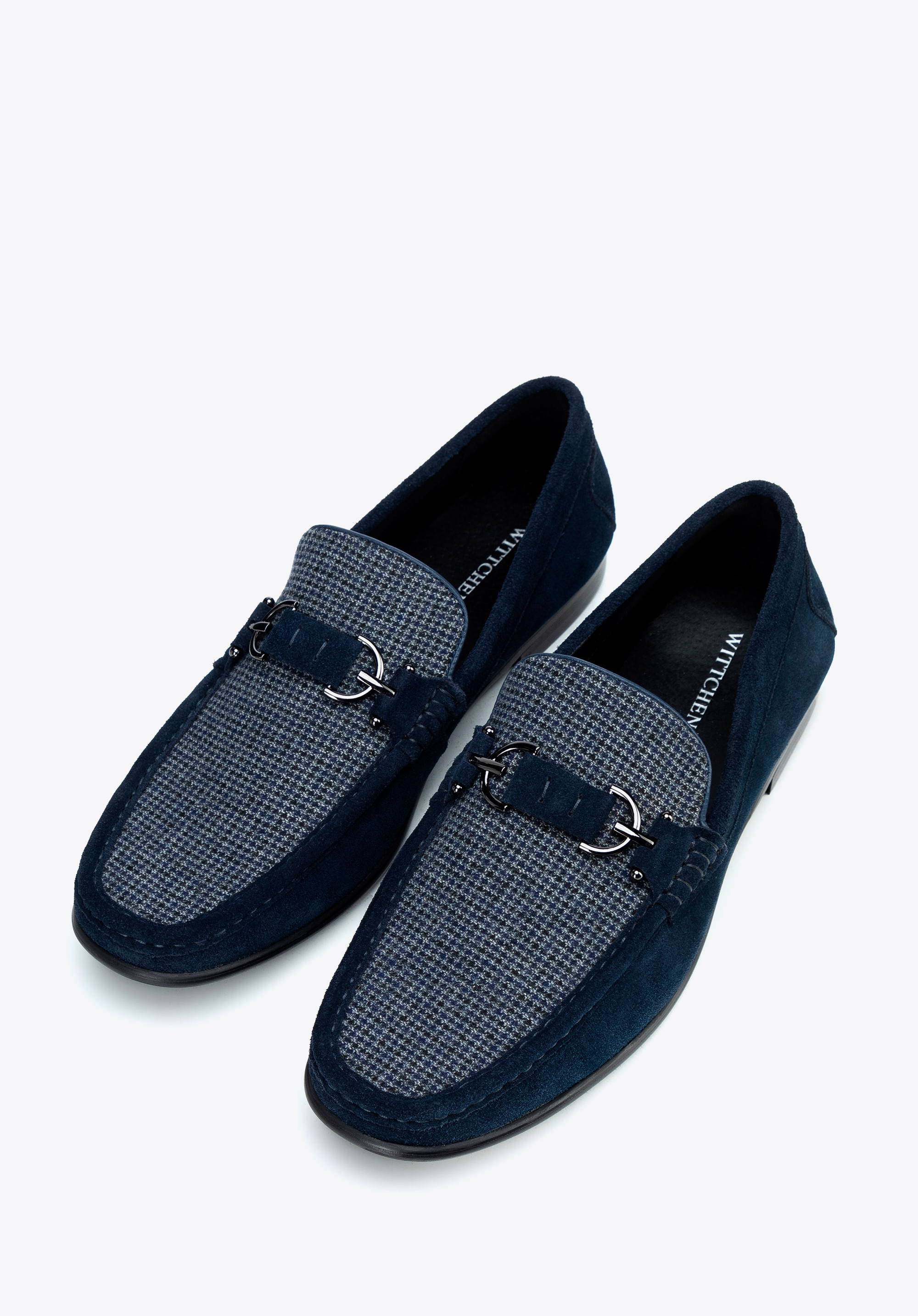 Męskie mokasyny z tkaniny w kratę granatowe