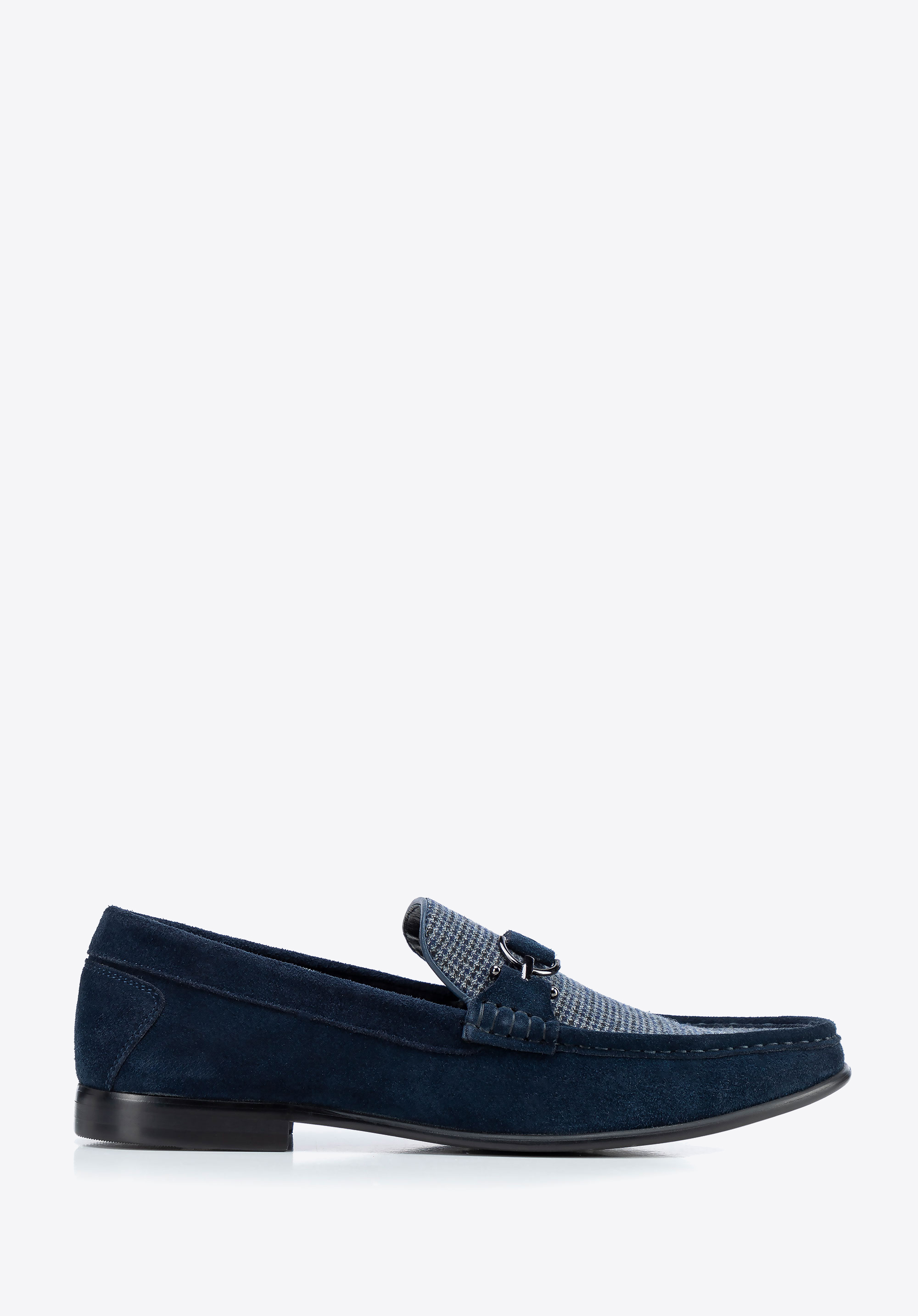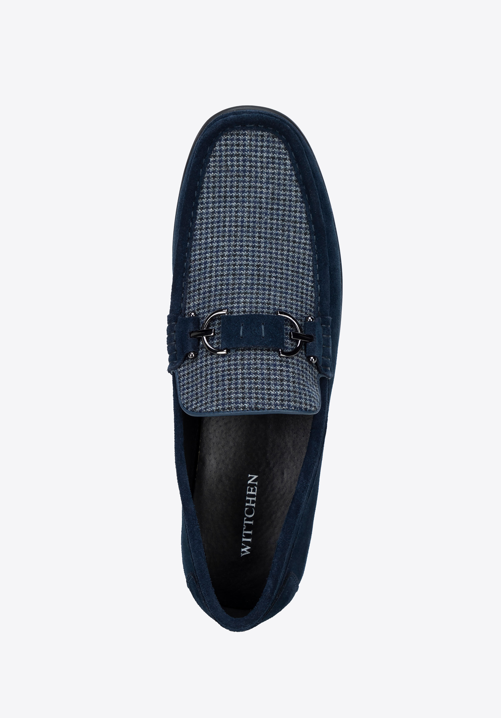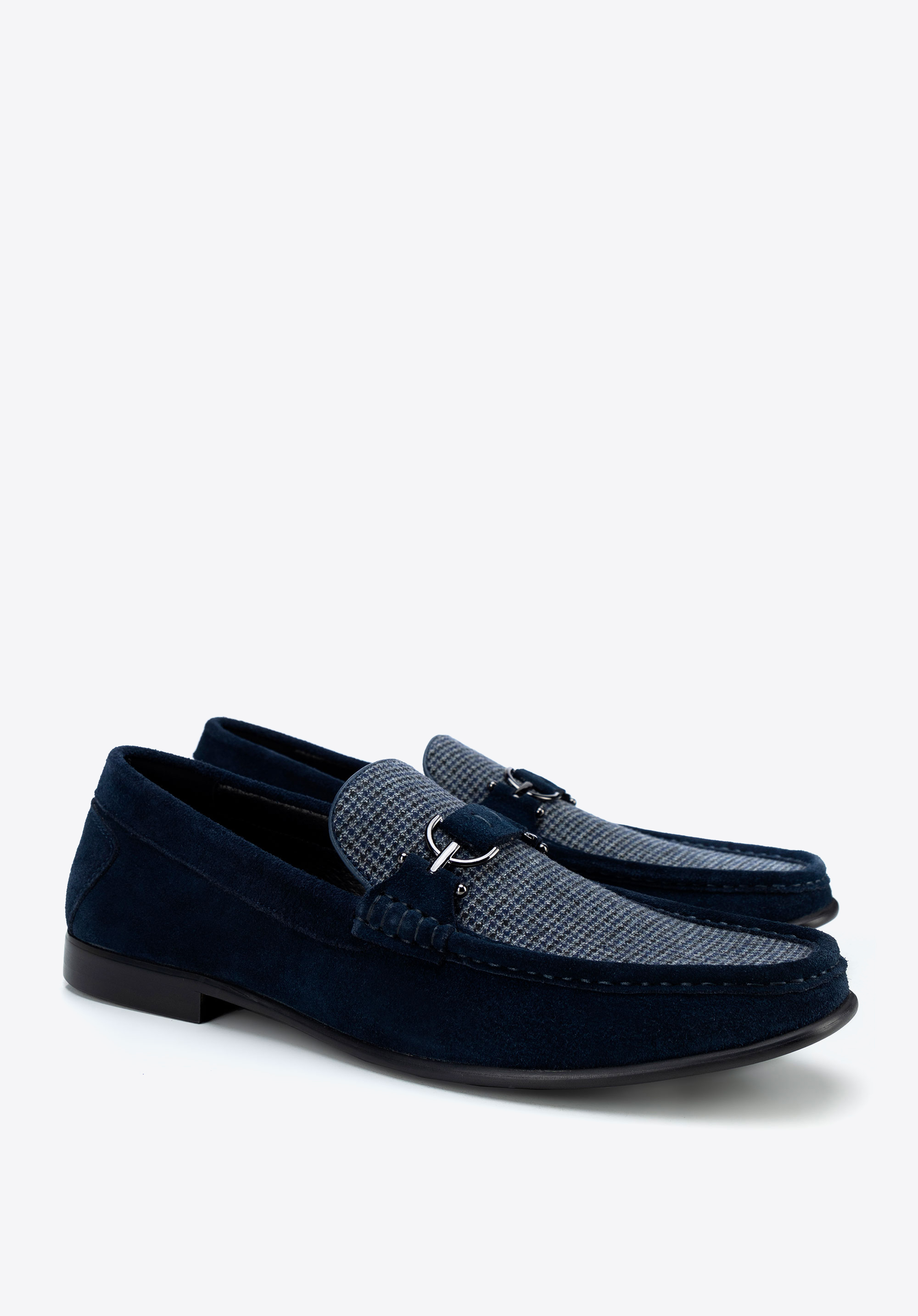 Męskie mokasyny z tkaniny w kratę granatowe
