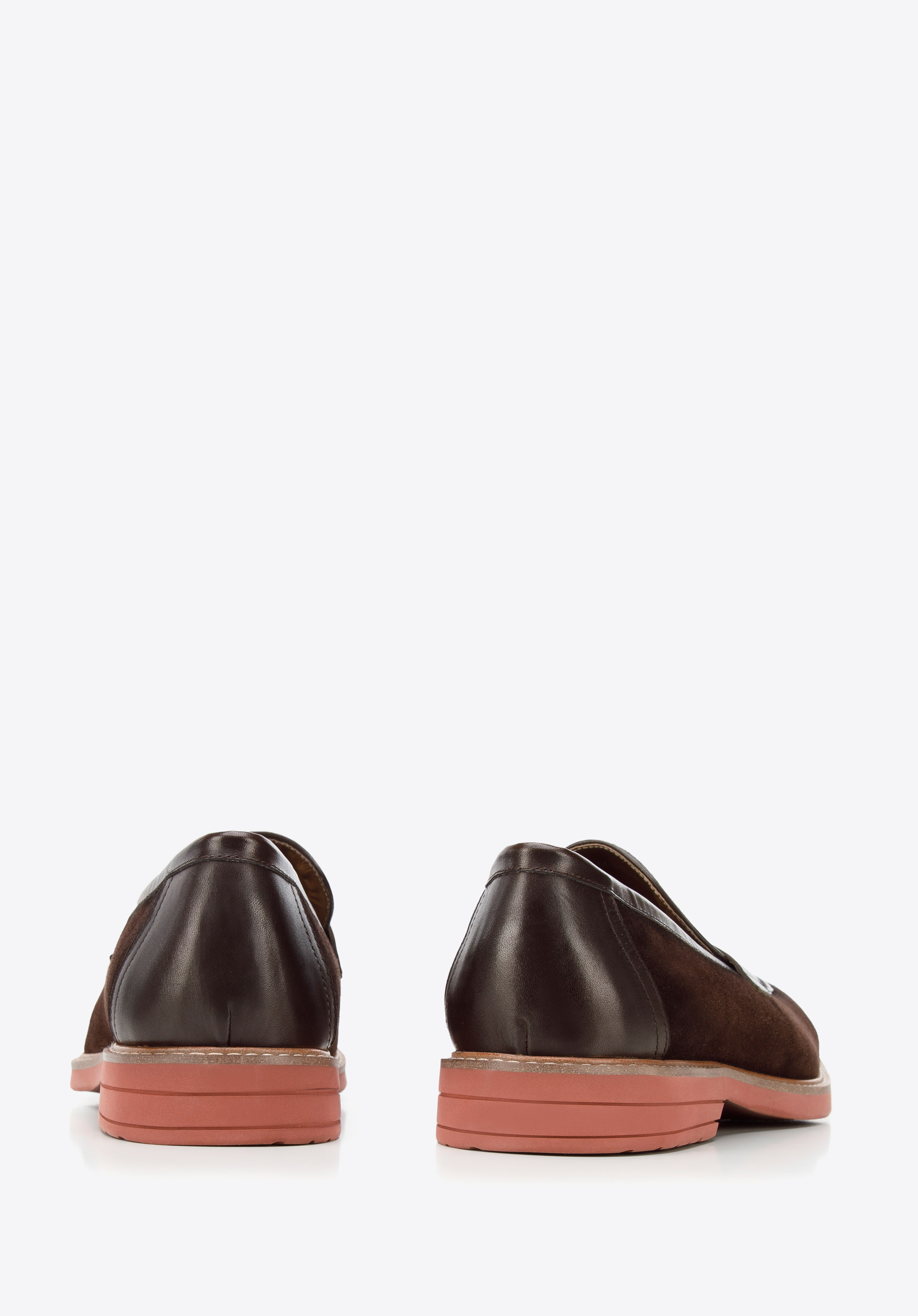 Klasyka z nowoczesnym wykończeniem. Z pozoru są to klasyczne mokasyny pensówki, jednak mają oryginalną