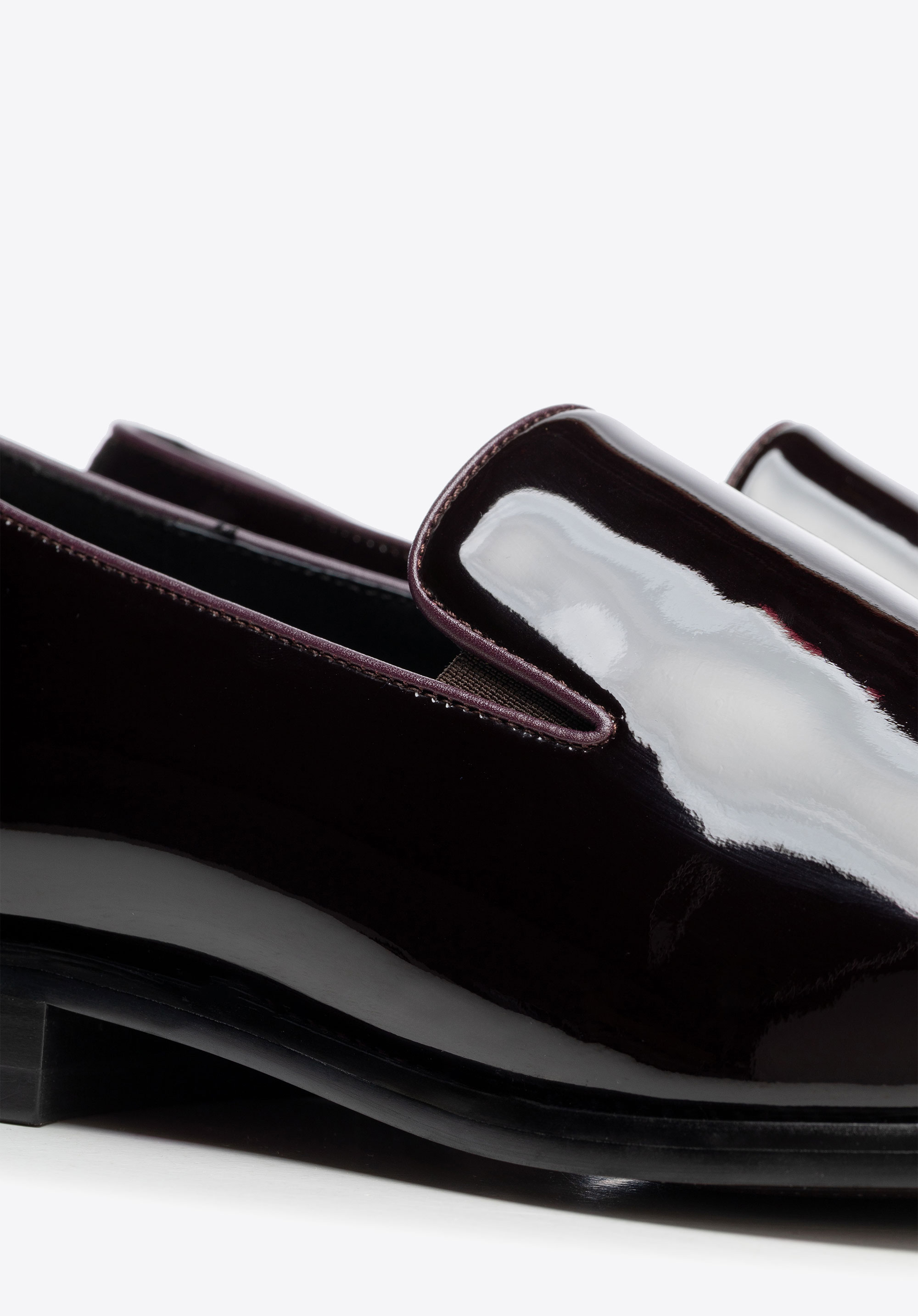 Odkryj połączenie ponadczasowej elegancji i wyjątkowego komfortu w męskich mokasynach ze skóry naturalnej lakierowanej. Migdałowy nosek subtelnie wysmukla stopę, nadając butom szykowny, harmonijny kształt, podczas gdy płaski obcas i gumowa podeszwa gwarantują stabilność i wygodę przy każdym kroku. Dzięki wsuwanej konstrukcji zakładanie butów staje się proste, a ich użytkowanie – czystą przyjemnością.