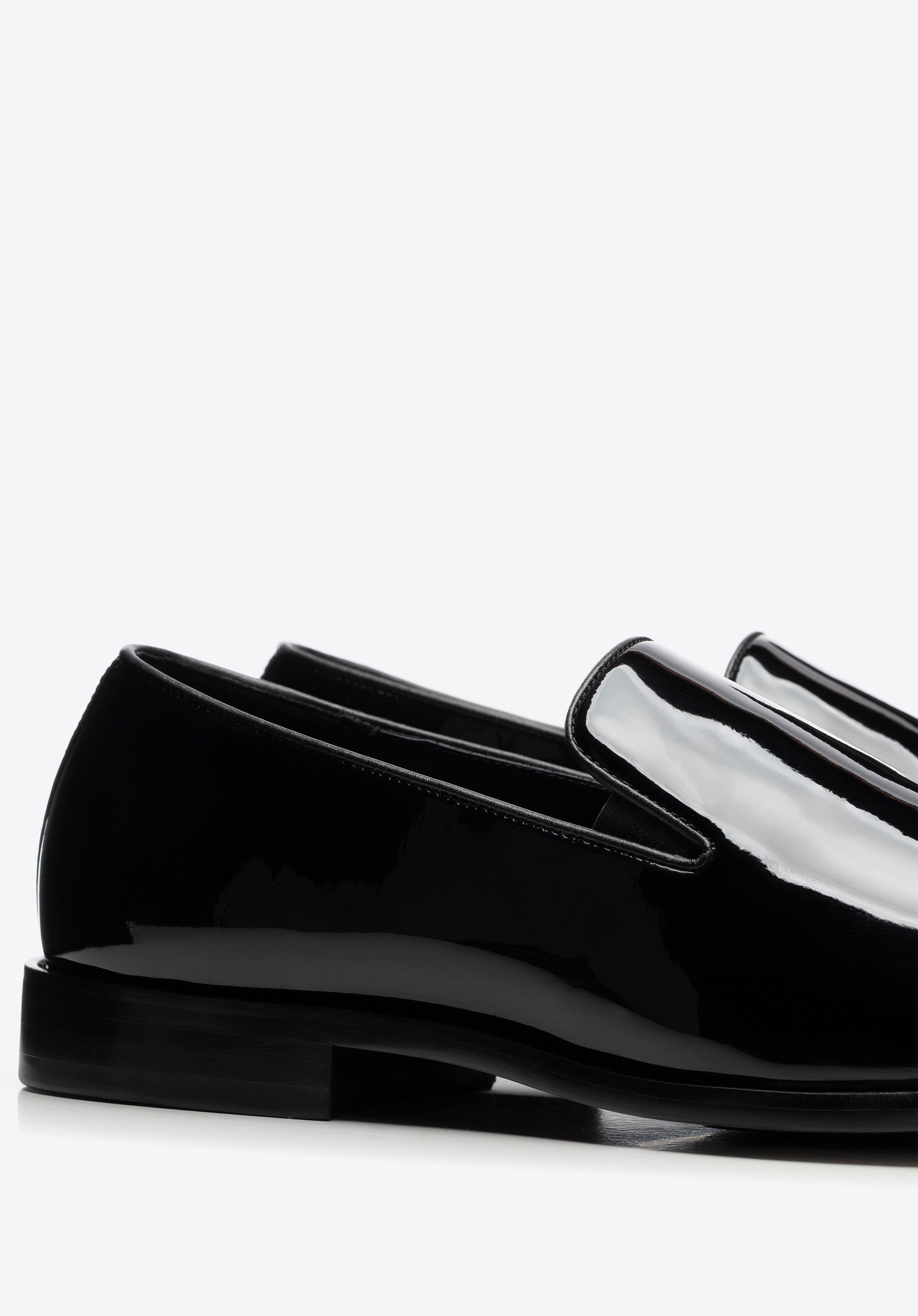 Odkryj połączenie ponadczasowej elegancji i wyjątkowego komfortu w męskich mokasynach ze skóry naturalnej lakierowanej. Migdałowy nosek subtelnie wysmukla stopę, nadając butom szykowny, harmonijny kształt, podczas gdy płaski obcas i gumowa podeszwa gwarantują stabilność i wygodę przy każdym kroku. Dzięki wsuwanej konstrukcji zakładanie butów staje się proste, a ich użytkowanie – czystą przyjemnością.
