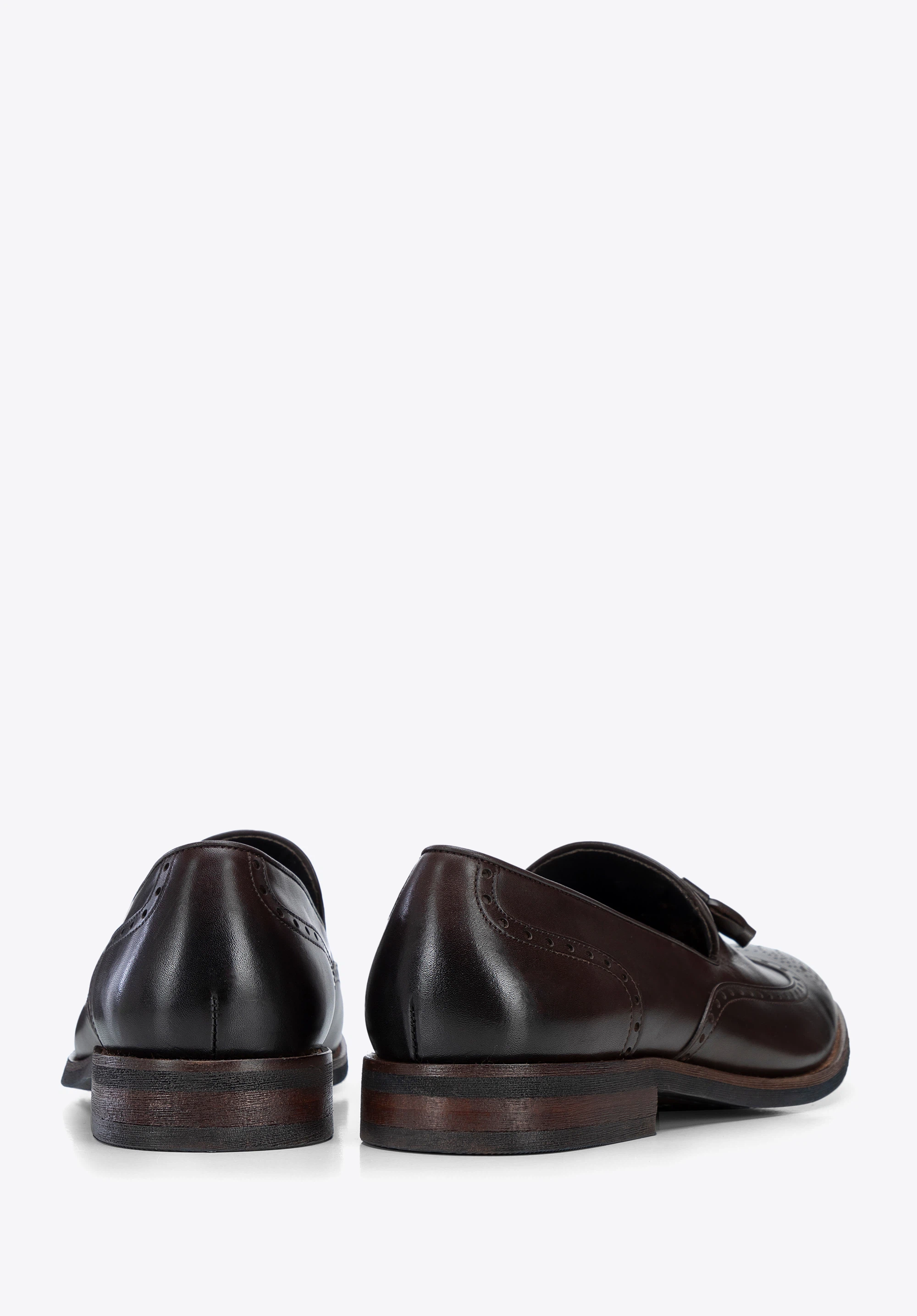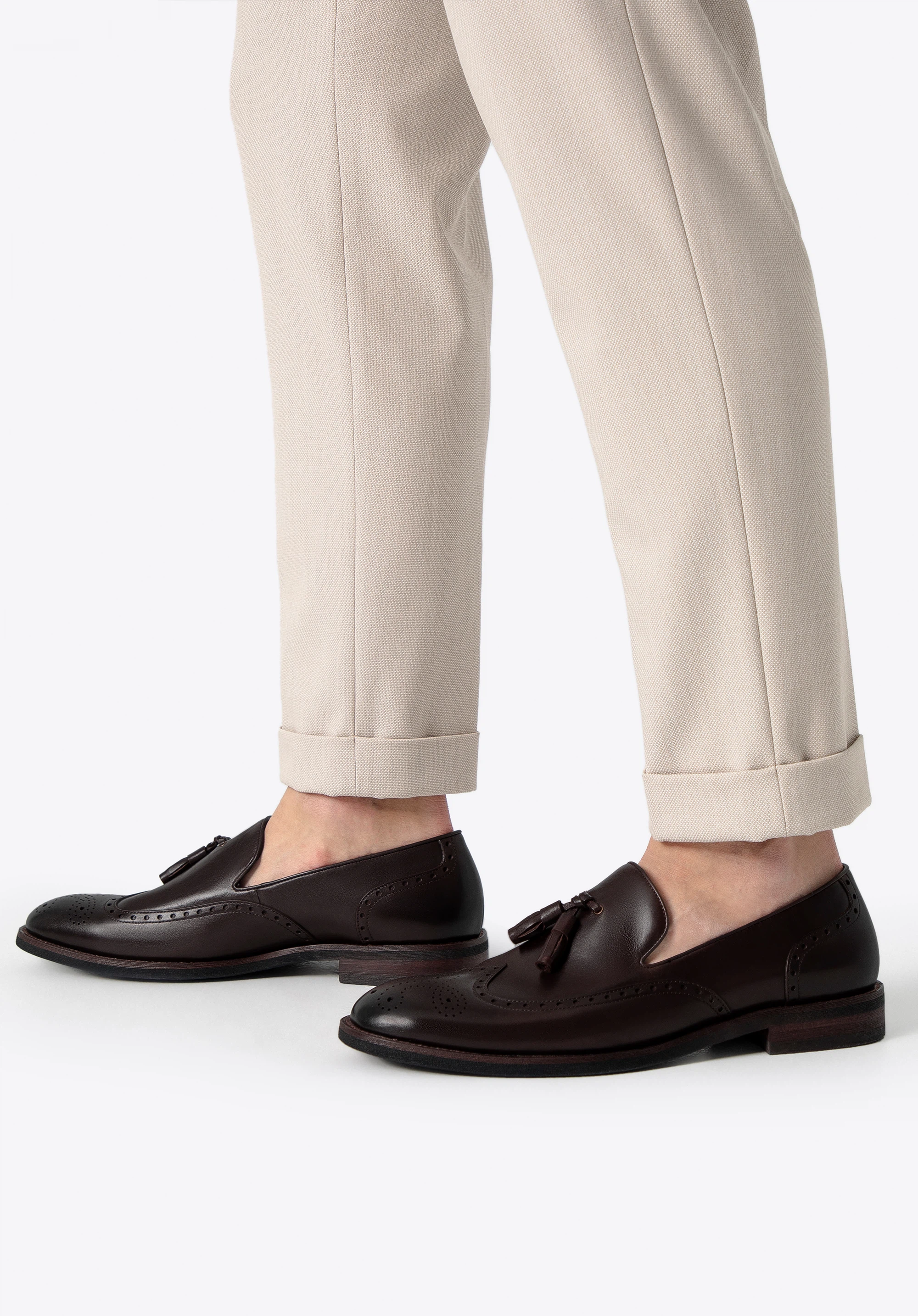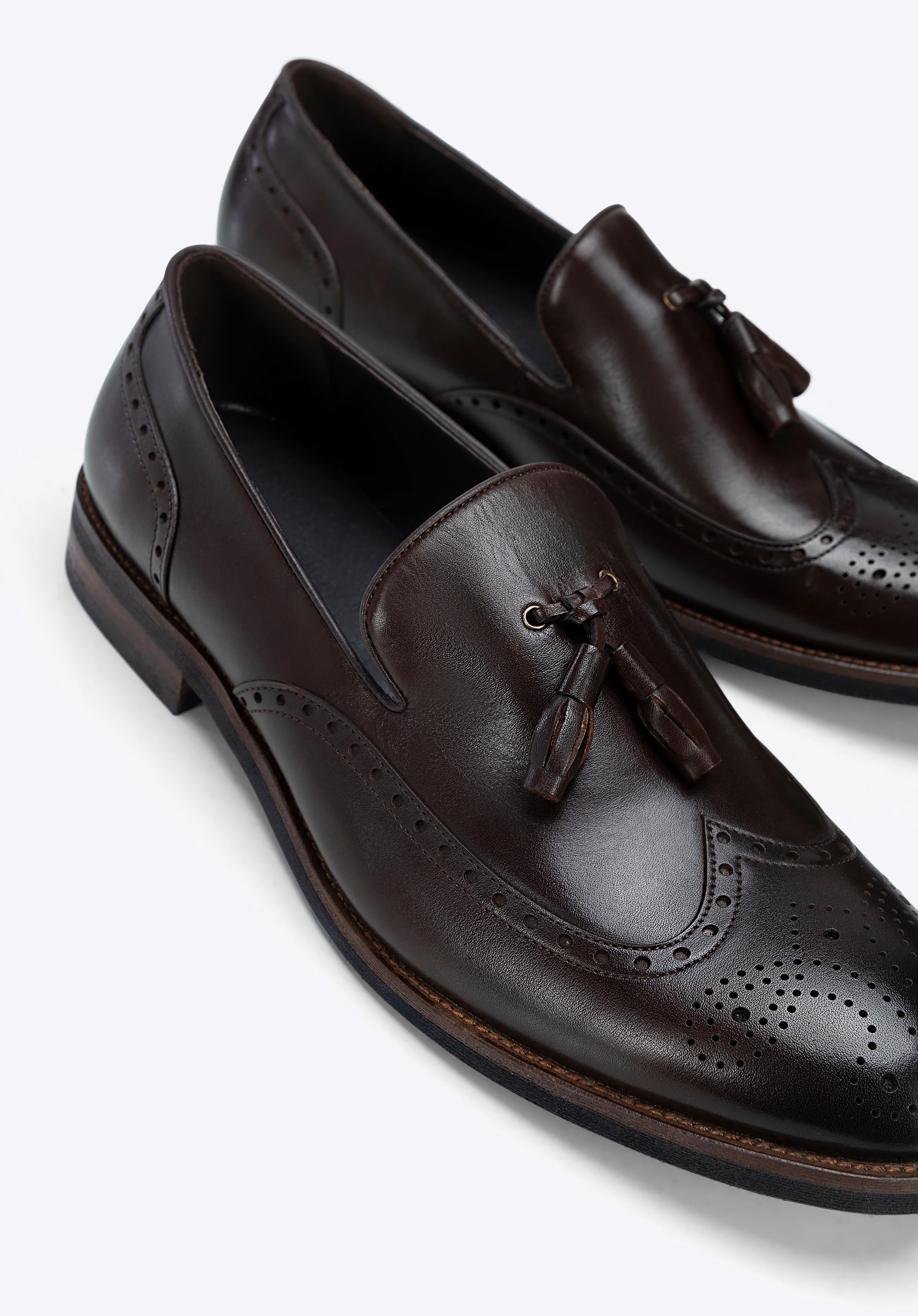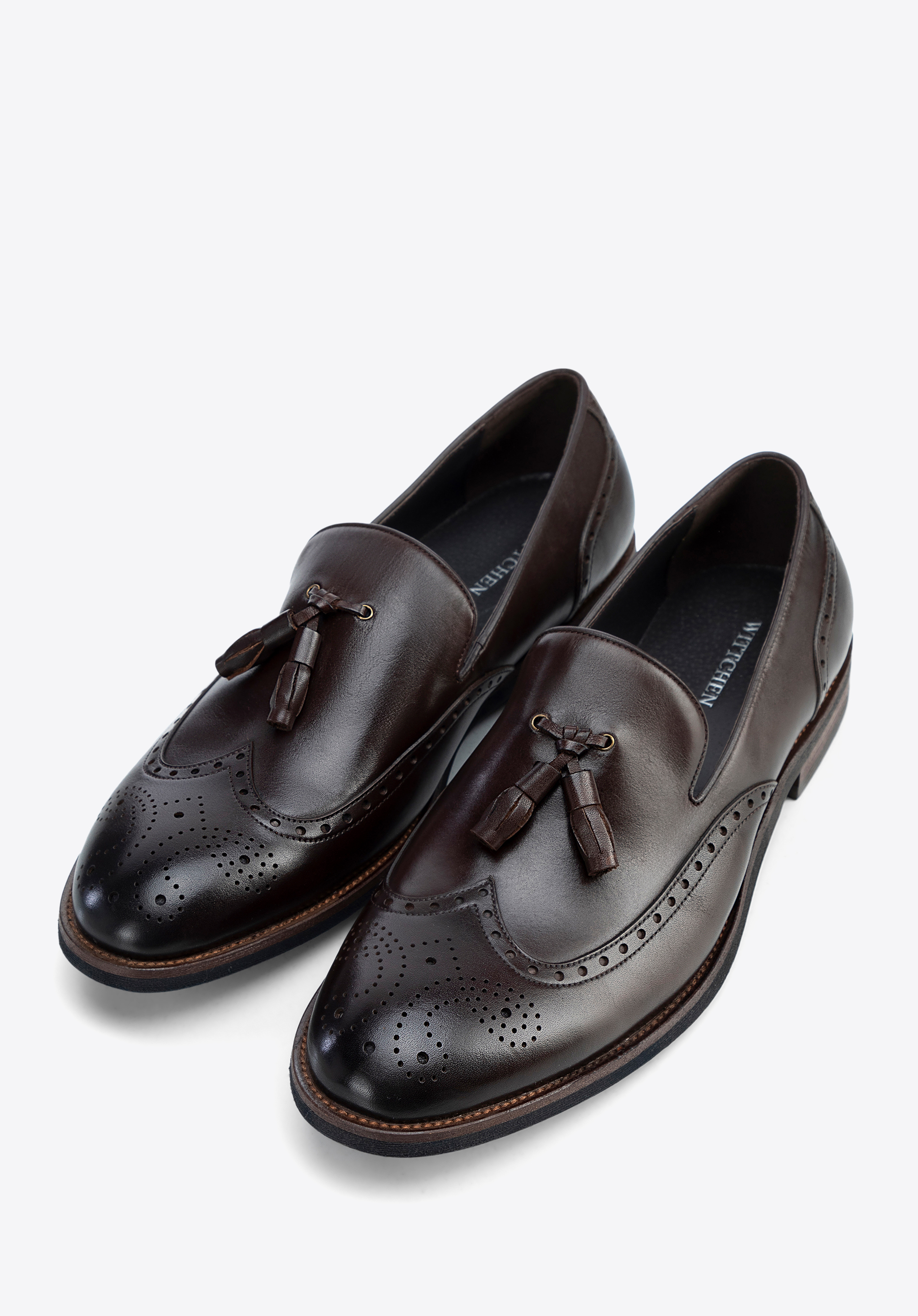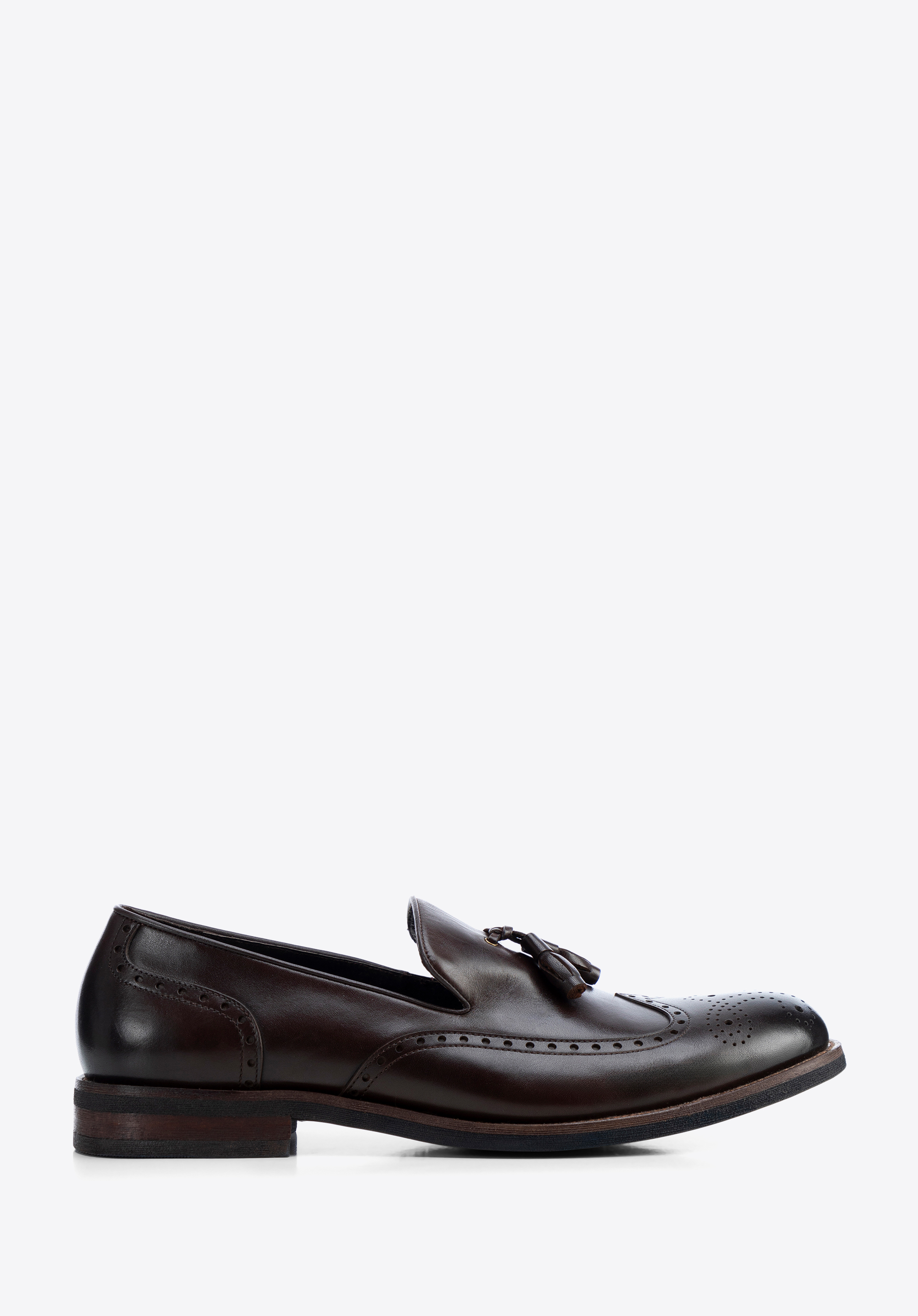 Eleganckie mokasyny, które łączą perfekcyjne dopasowanie z subtelnym akcentem w postaci dekoracyjnego chwosta. Dzięki perforacjom buty łączą klasykę z nowoczesnym stylem, a naturalna skóra zapewnia wyjątkową wygodę na każdym kroku. Idealne na codzienne stylizacje, które wyróżniają się subtelnym, ale eleganckim charakterem.