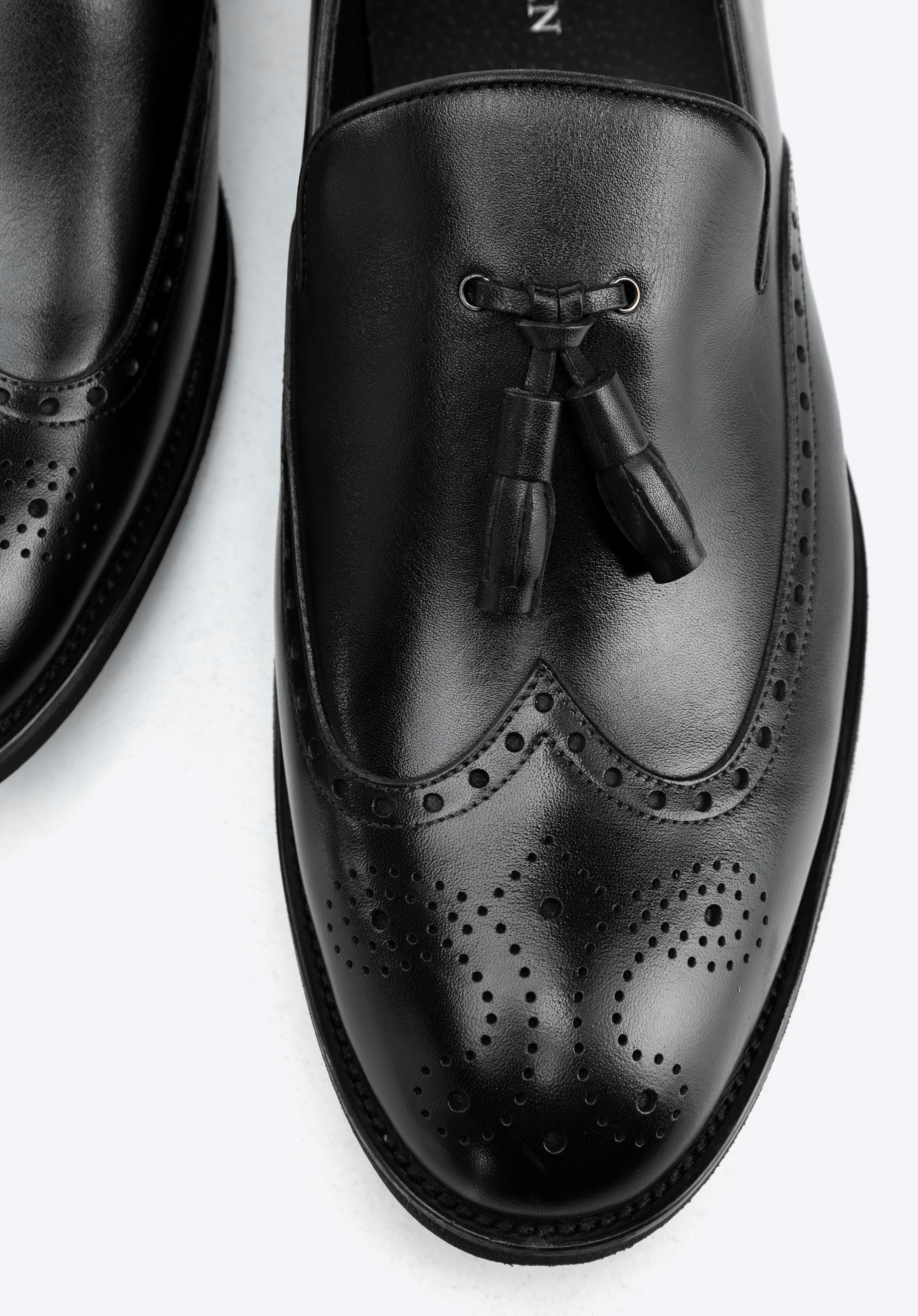Eleganckie mokasyny, które łączą perfekcyjne dopasowanie z subtelnym akcentem w postaci dekoracyjnego chwosta. Dzięki perforacjom buty łączą klasykę z nowoczesnym stylem, a naturalna skóra zapewnia wyjątkową wygodę na każdym kroku. Idealne na codzienne stylizacje, które wyróżniają się subtelnym, ale eleganckim charakterem.