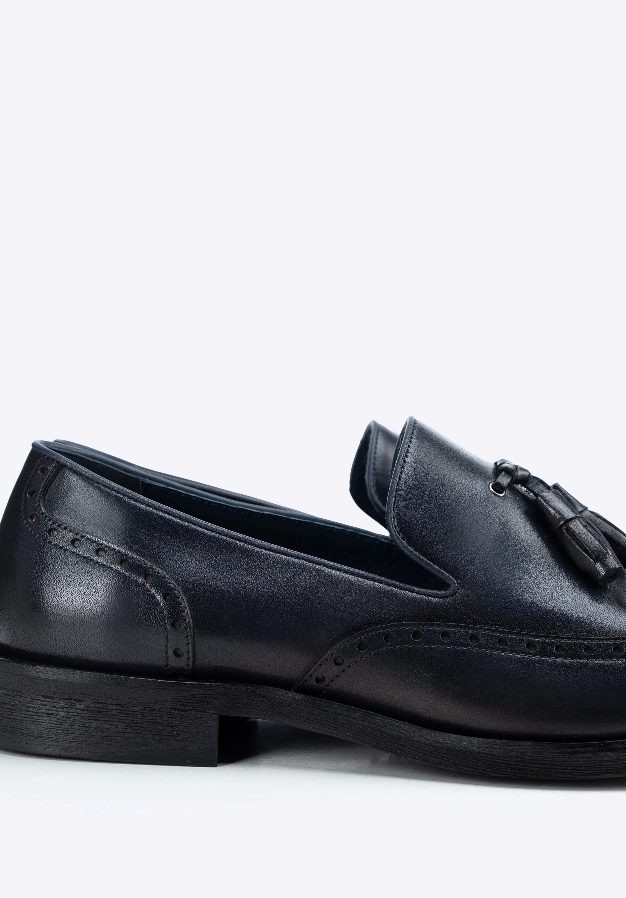 Eleganckie mokasyny, które łączą perfekcyjne dopasowanie z subtelnym akcentem w postaci dekoracyjnego chwosta. Dzięki perforacjom buty łączą klasykę z nowoczesnym stylem, a naturalna skóra zapewnia wyjątkową wygodę na każdym kroku. Idealne na codzienne stylizacje, które wyróżniają się subtelnym, ale eleganckim charakterem.