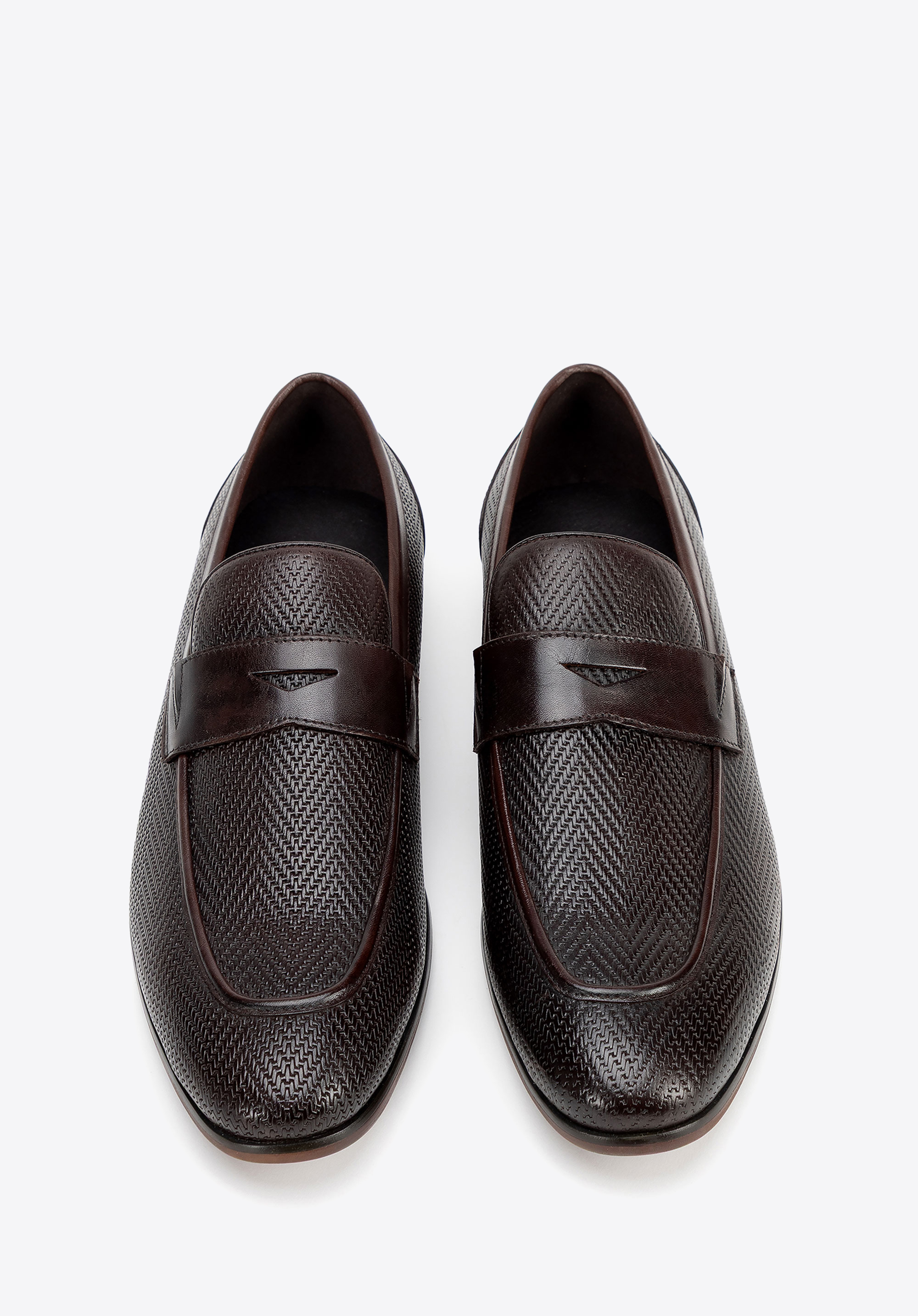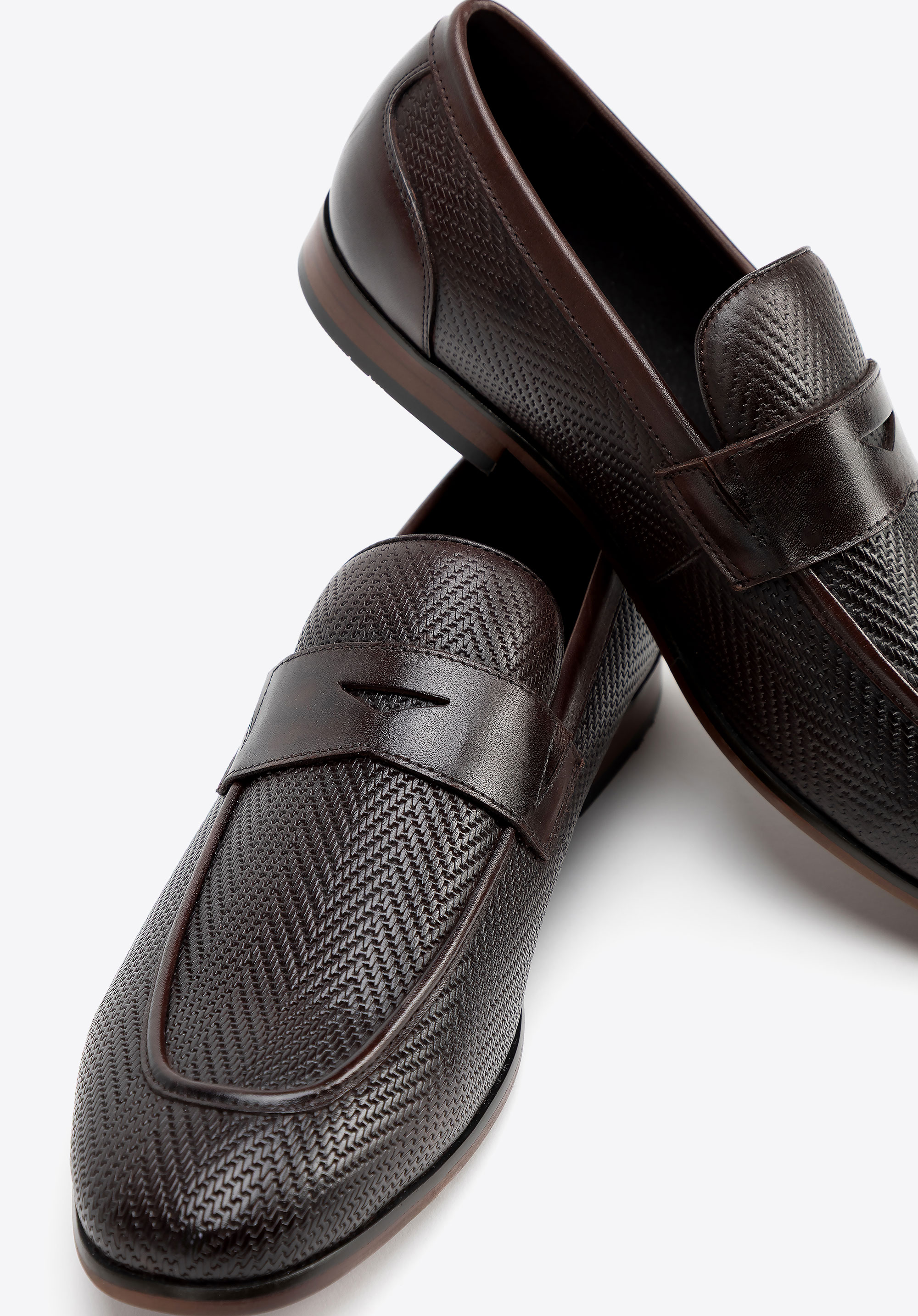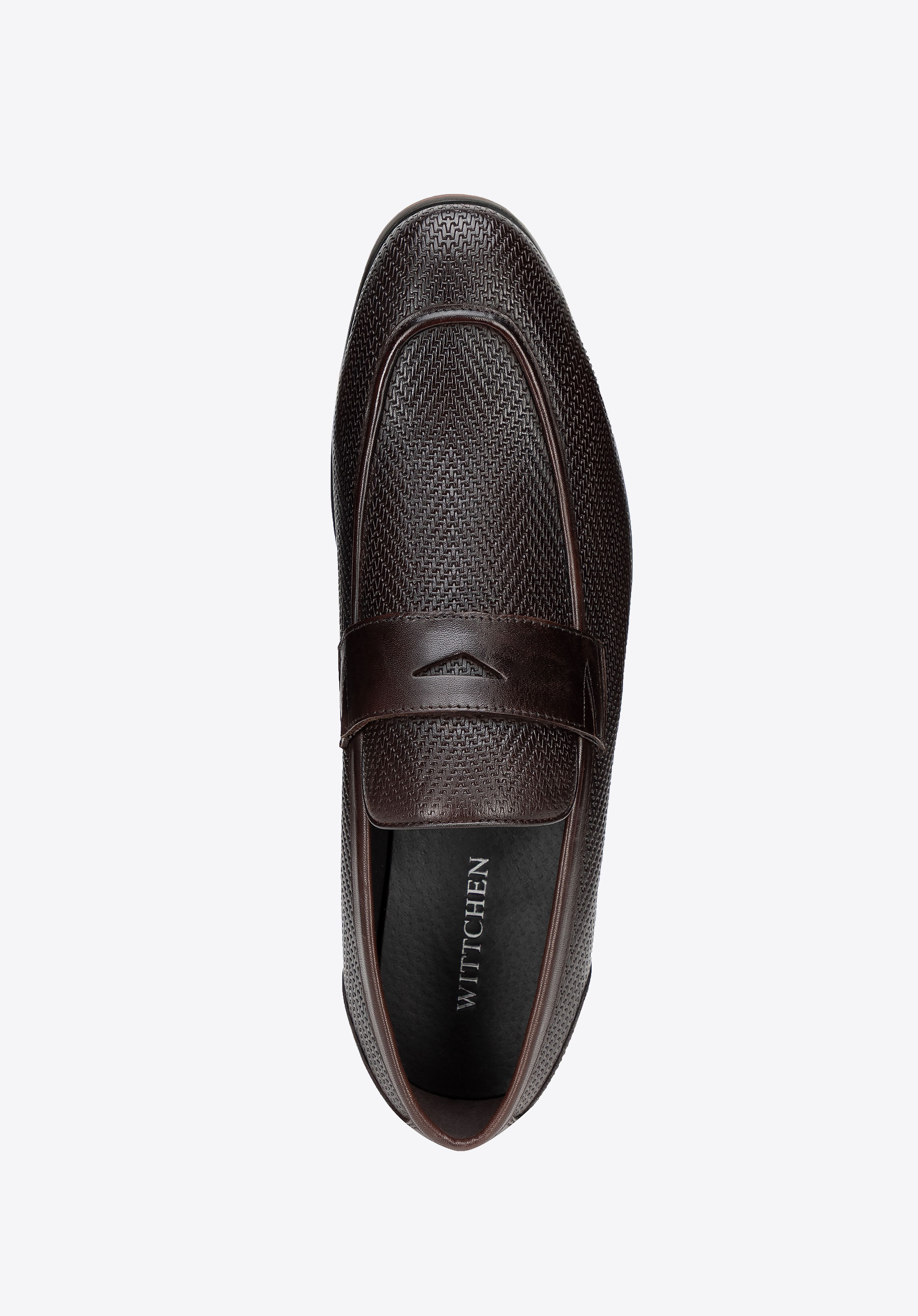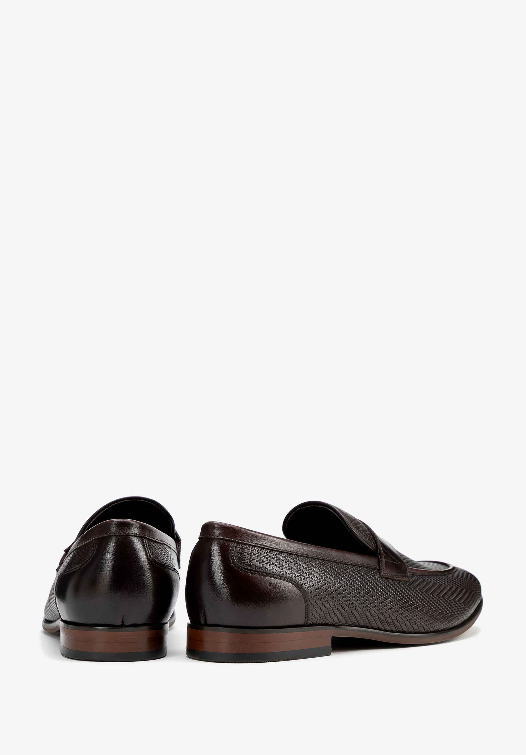 Męskie mokasyny ze skóry naturalnej z dekoracyjnym paskiem