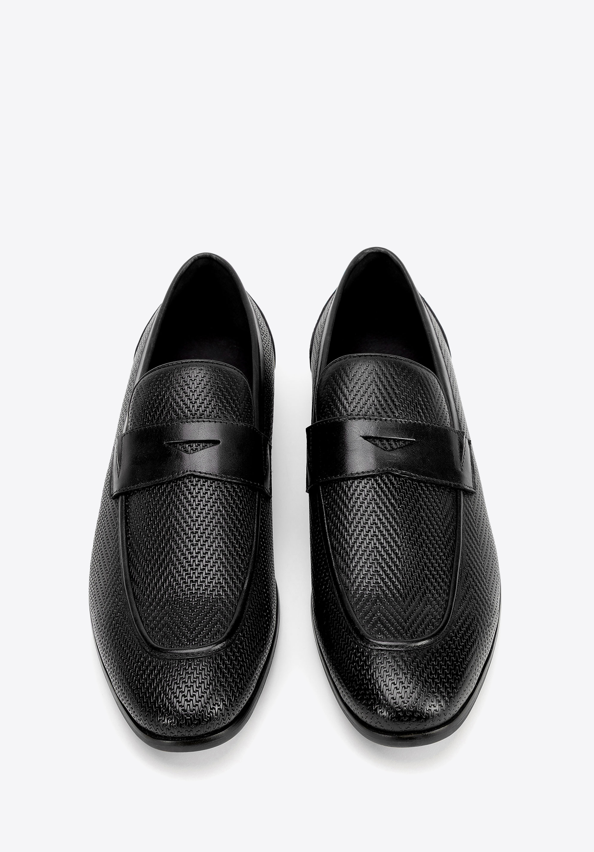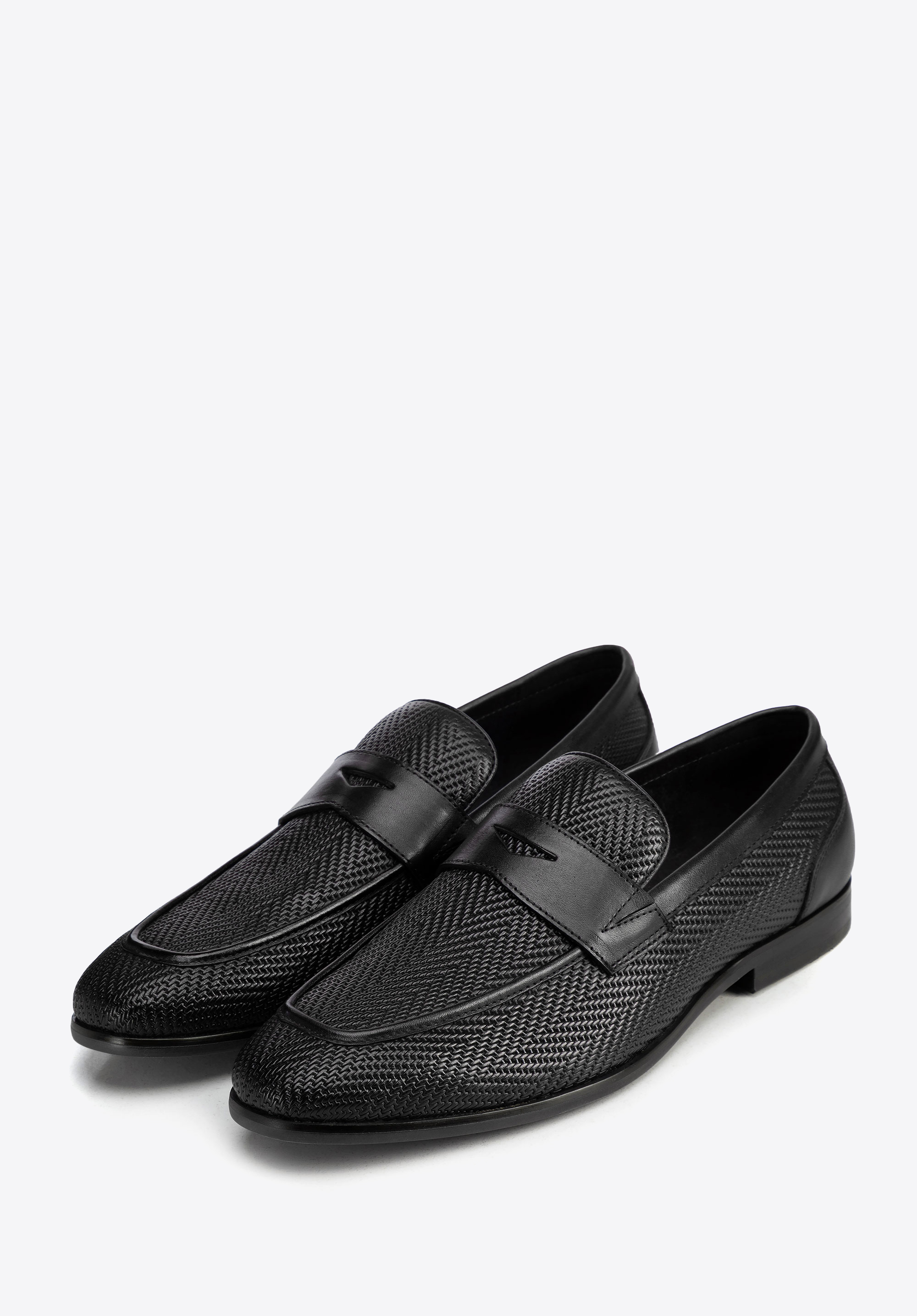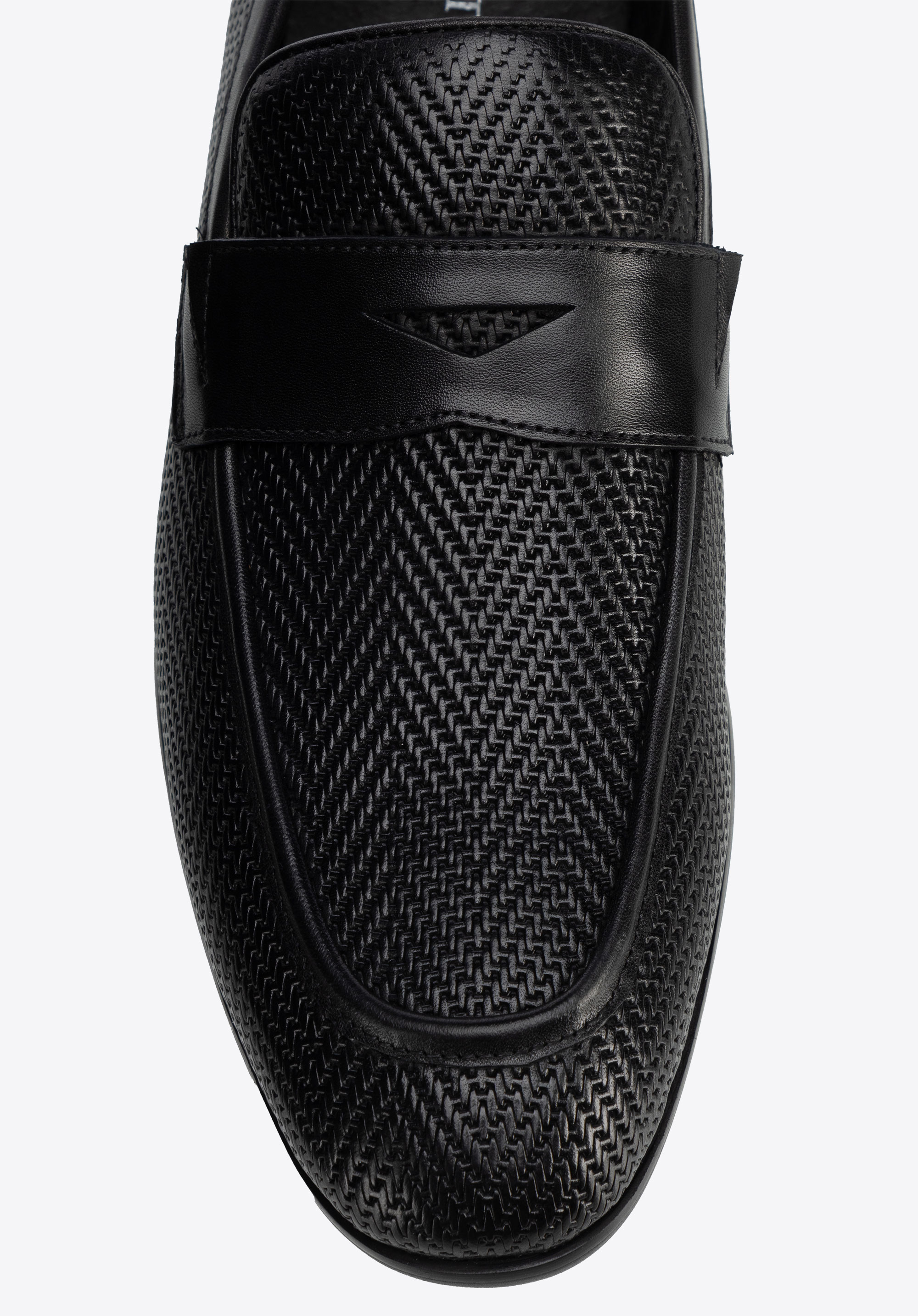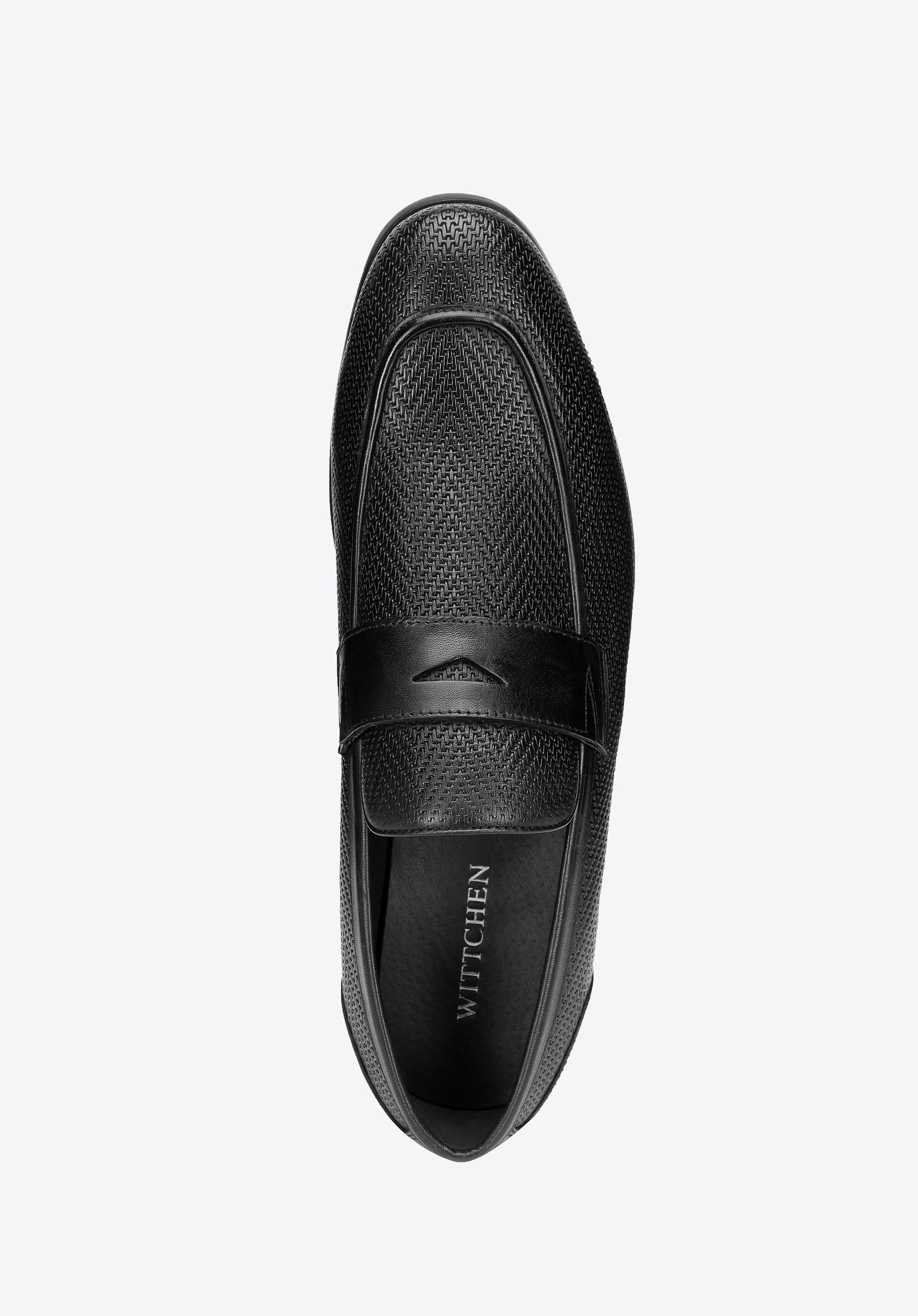 Męskie mokasyny ze skóry naturalnej z dekoracyjnym paskiem