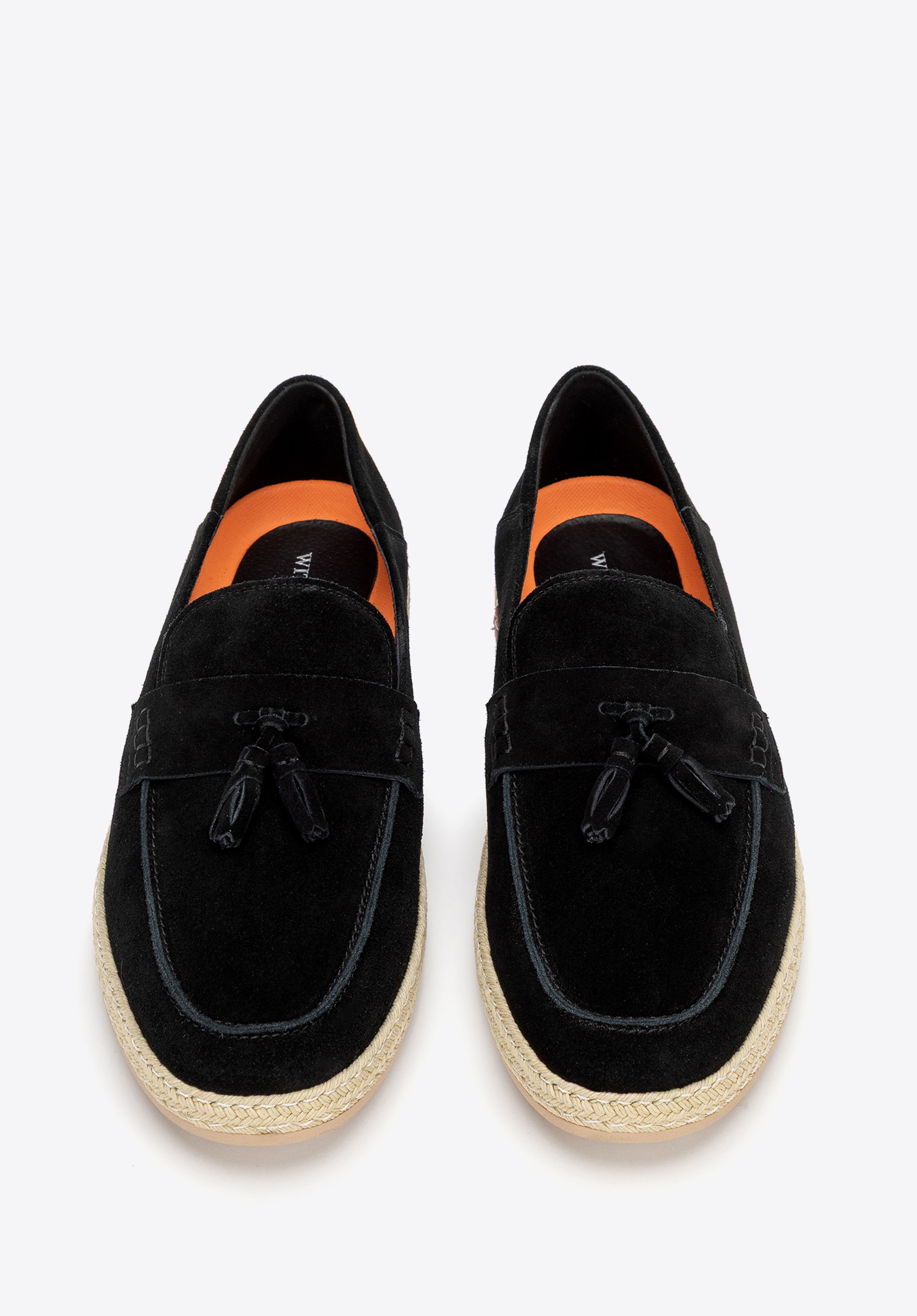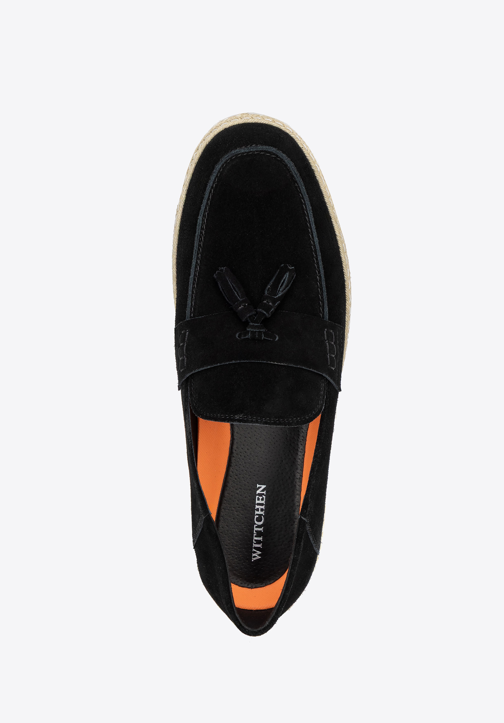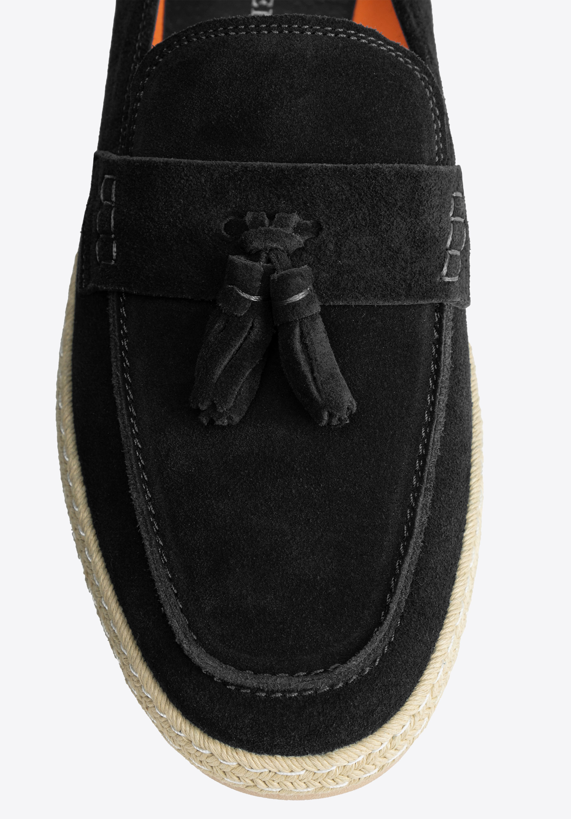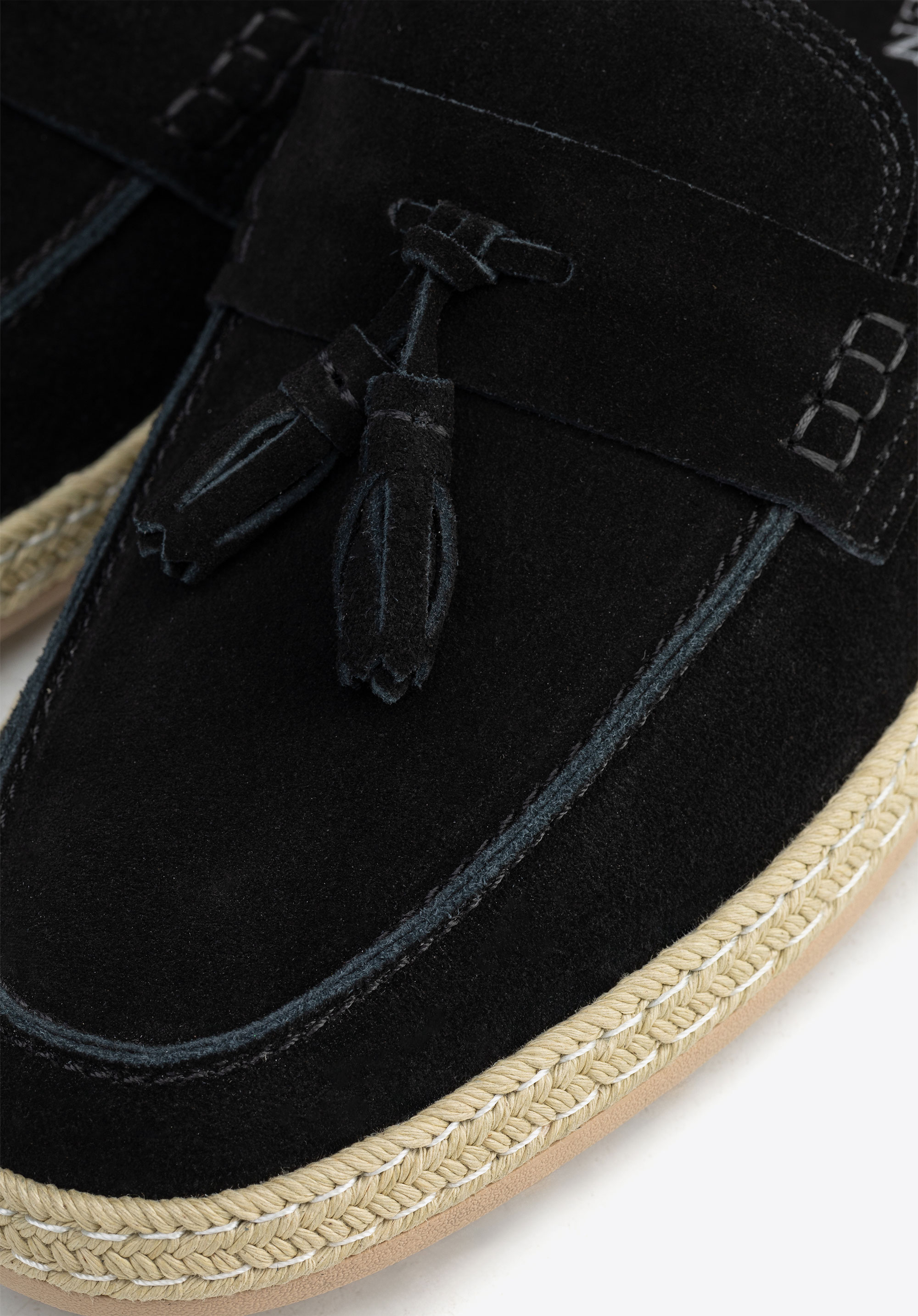 - Plecionka wokół podeszwy: Nadaje mokasynom wakacyjny charakter, wprowadzając nutę swobodnej elegancji i ponadczasowego stylu.