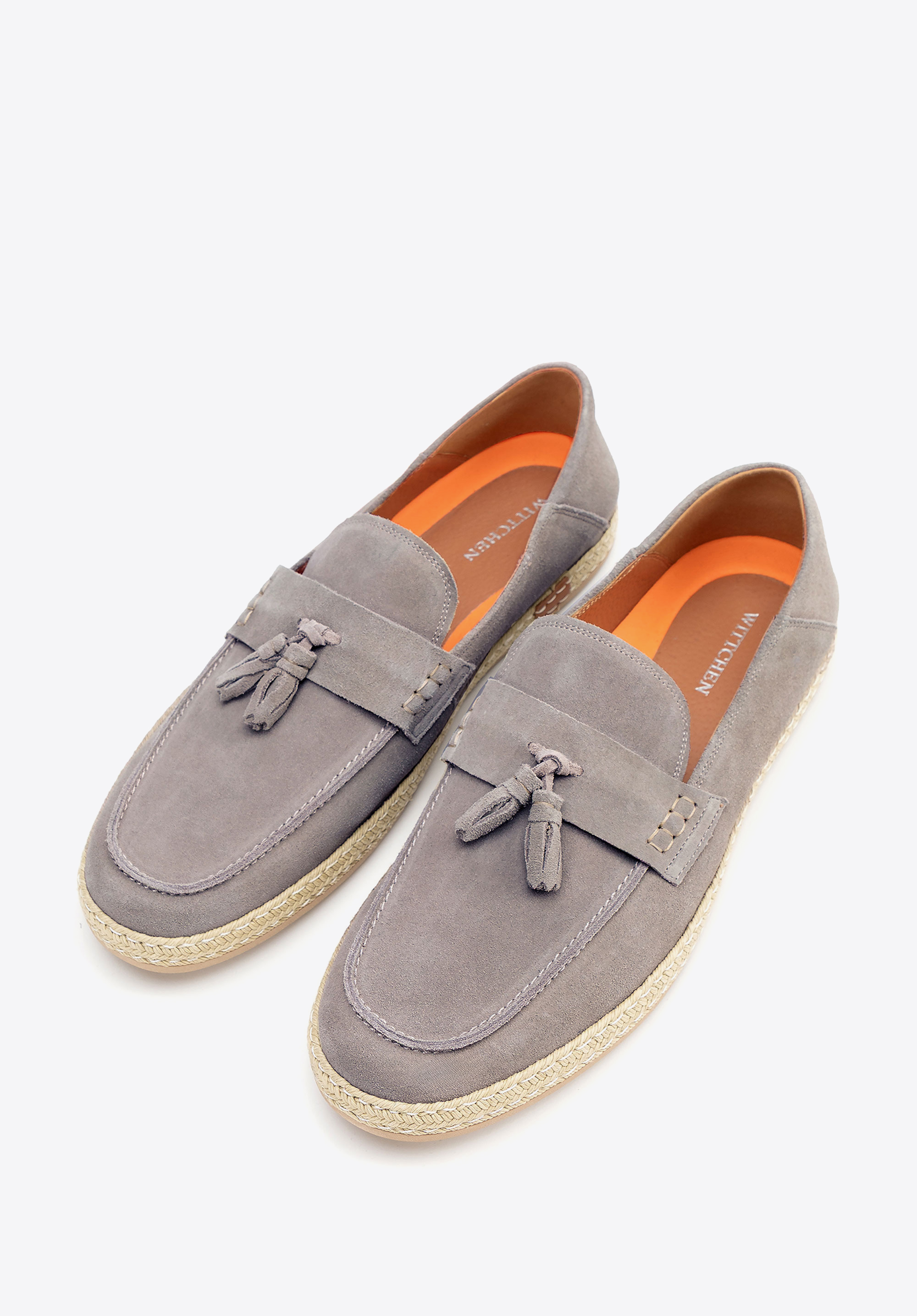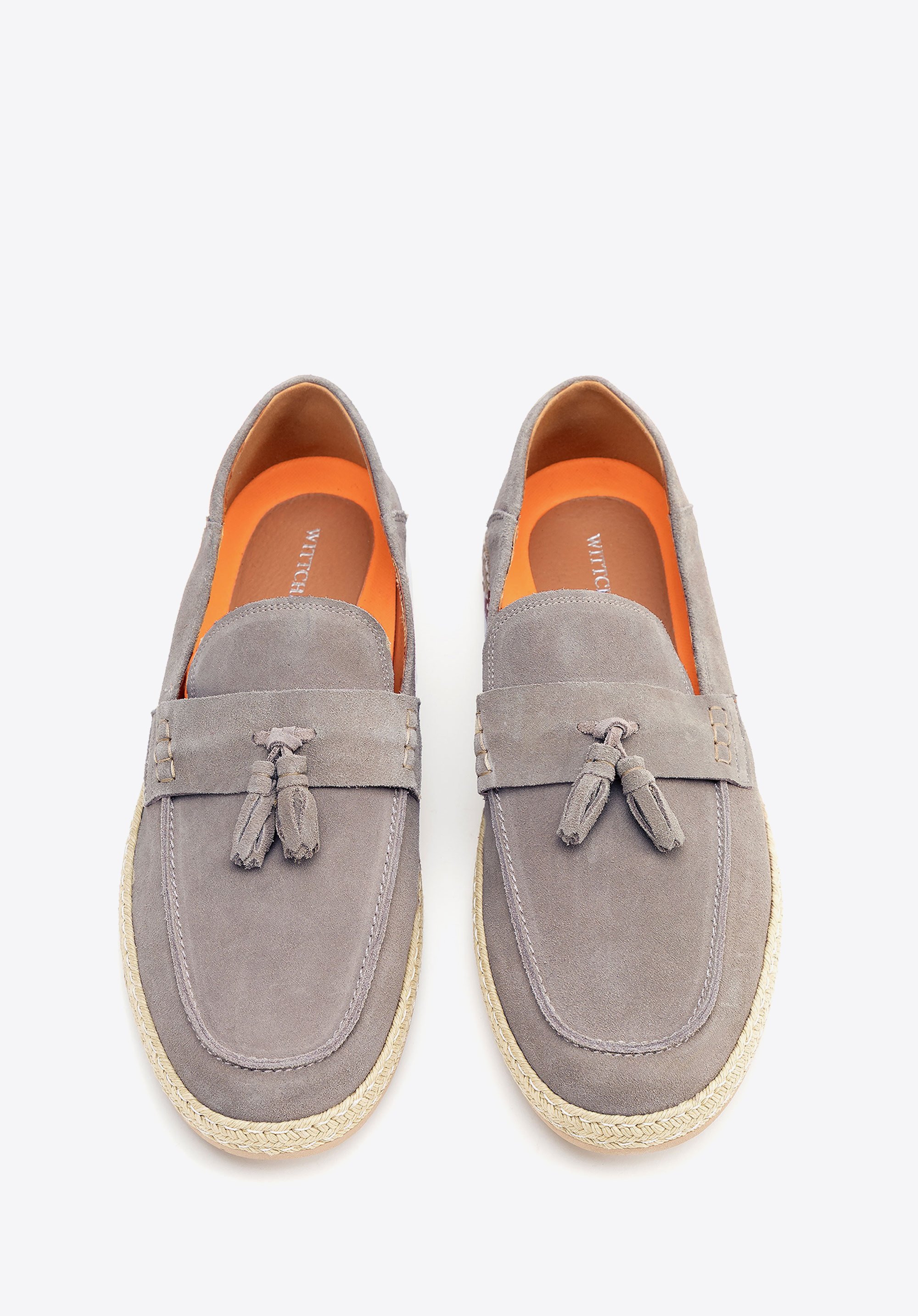 - Plecionka wokół podeszwy: Nadaje mokasynom wakacyjny charakter, wprowadzając nutę swobodnej elegancji i ponadczasowego stylu.