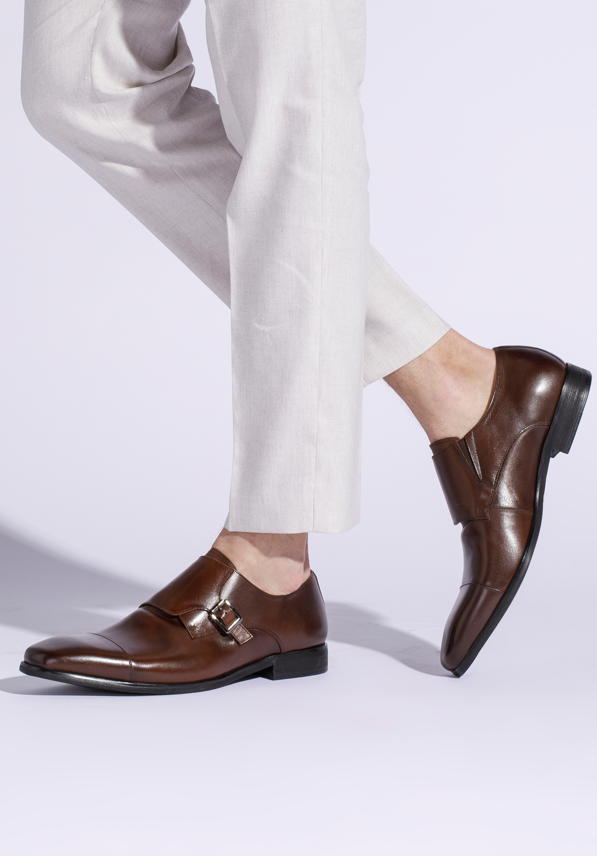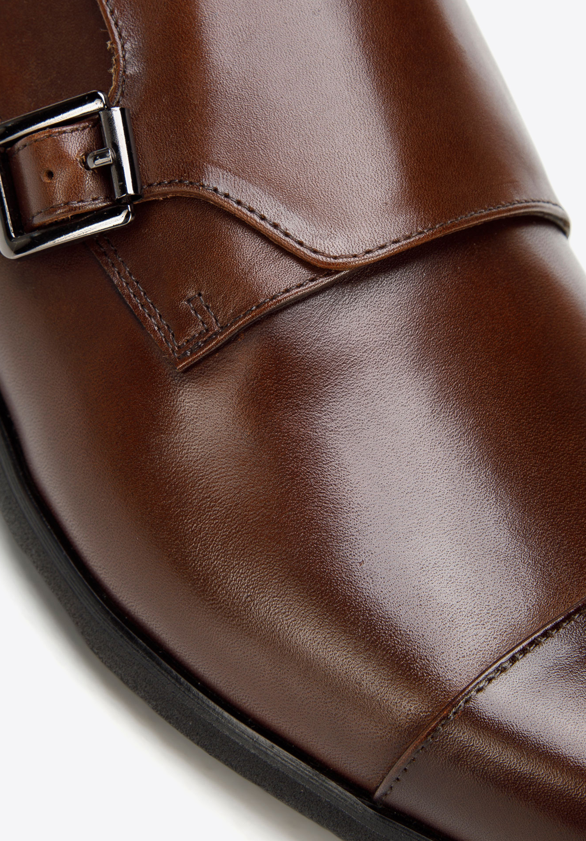 Męskie monki skórzane dopełnią stylizacje mężczyzny ceniącego elegancję z nutą indywidualizmu, sprawdzając się w biurze, podczas spotkań biznesowych i formalnych okazji. Naturalna skóra, migdałowy nosek oraz charakterystyczna klamra z elastycznym wsparciem ułatwiającym zakładanie tworzą harmonijną sylwetkę i zapewniają wygodę noszenia.