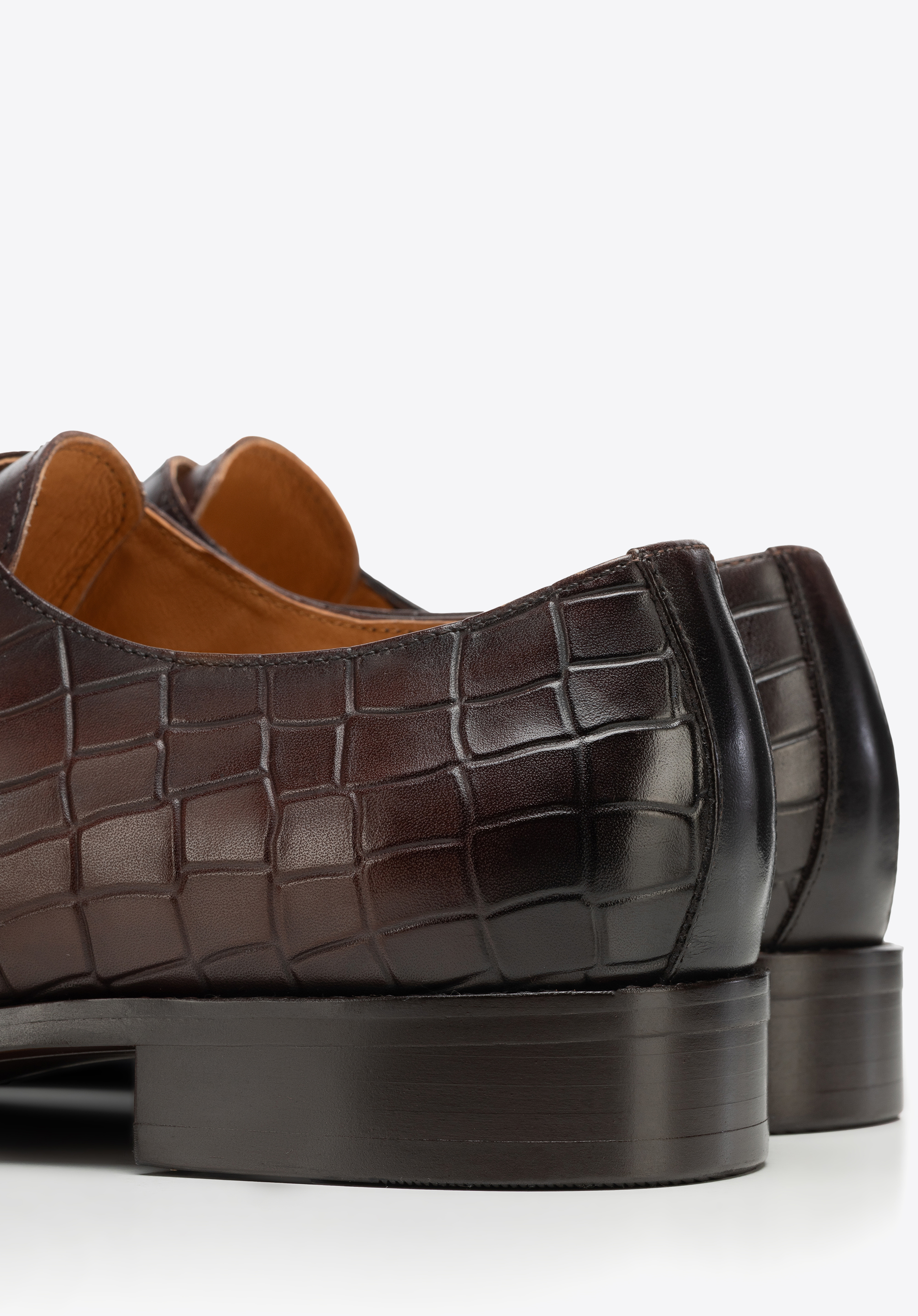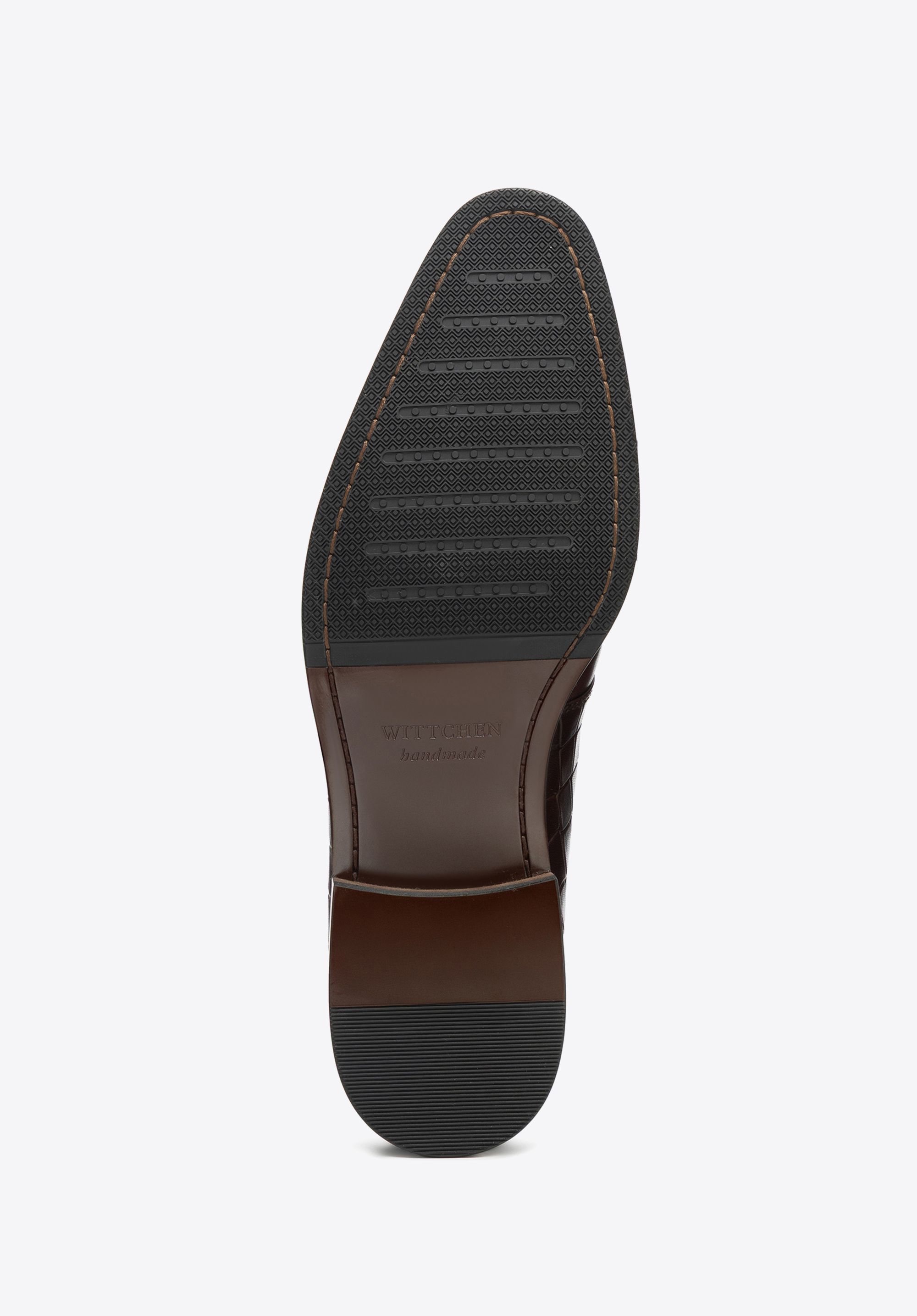 - Materiał: Wytrzymała i elegancka naturalna skóra licowa o dwóch fakturach – gładkiej i croco, dodaje butom prestiżu i wyjątkowego charakteru.