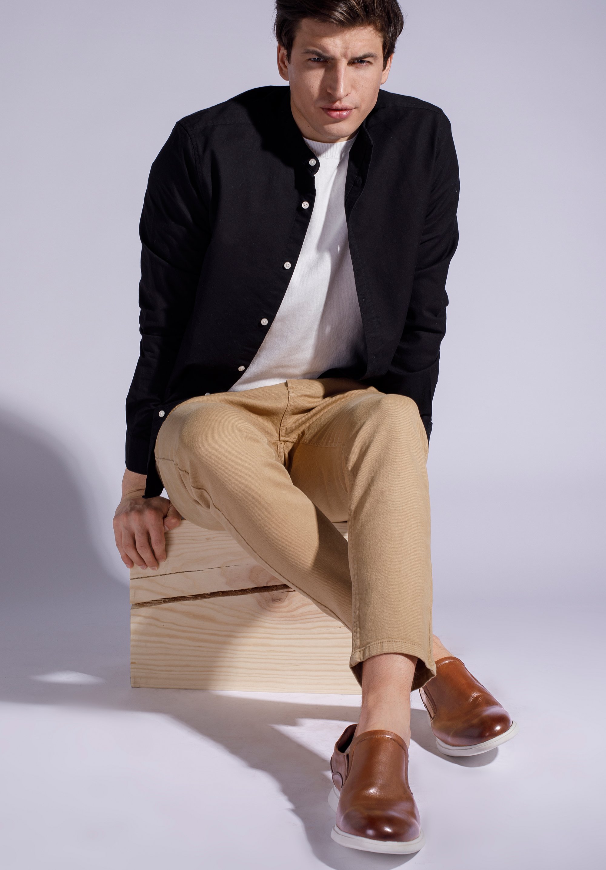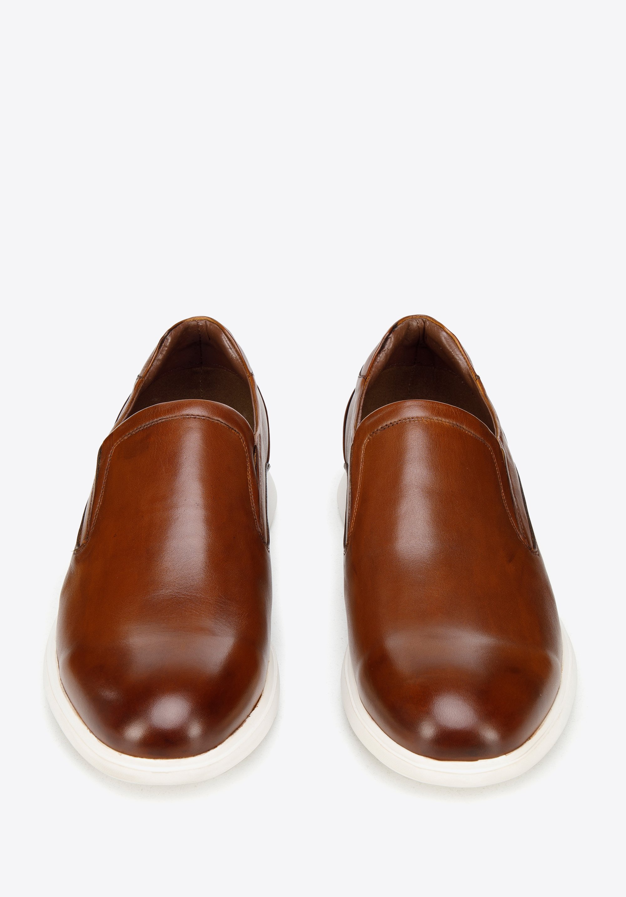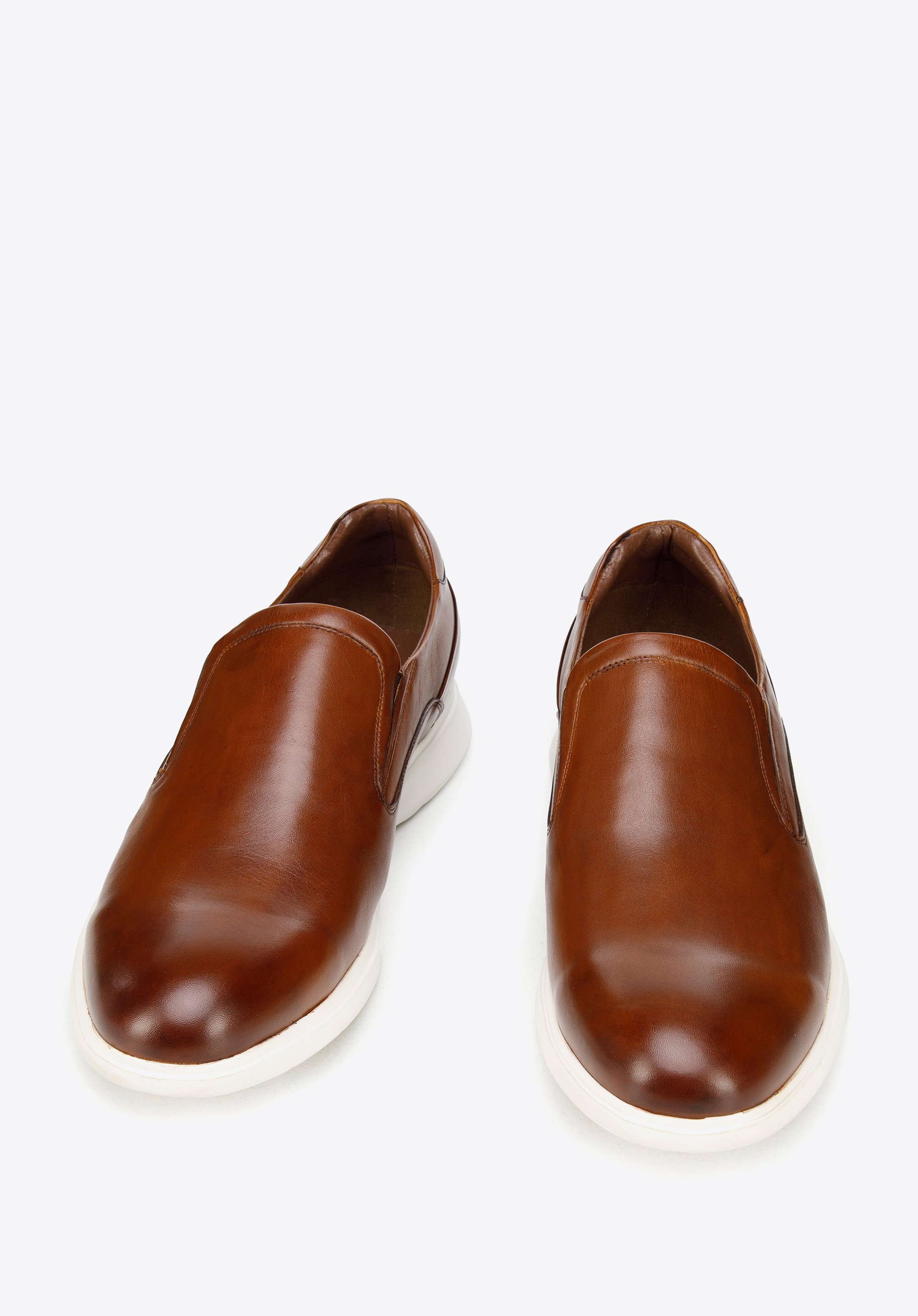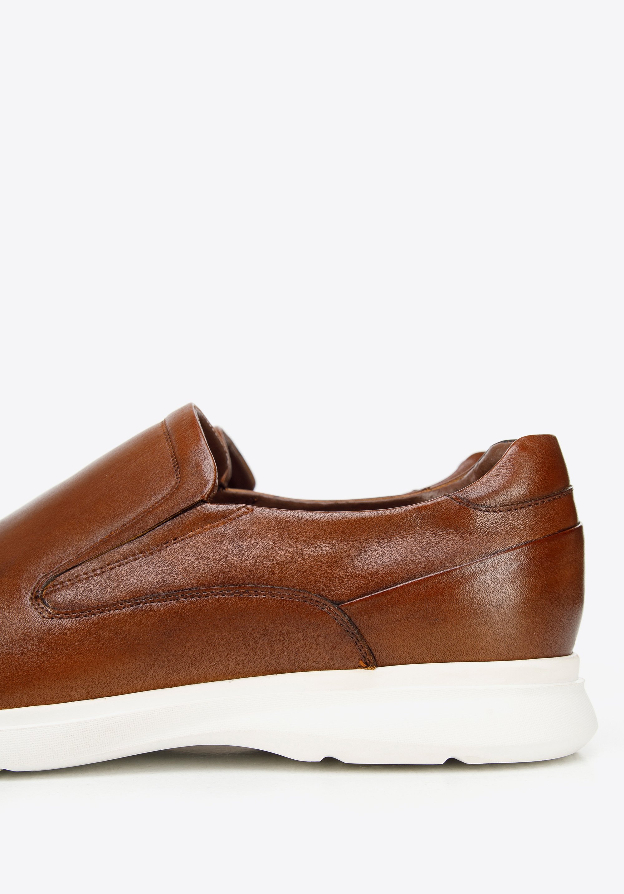 Męskie półbuty wsuwane z gładkiej skóry sprawdzą się zarówno w zestawach smart casual, jak i całkiem na luzie, z chinosami i koszulką.