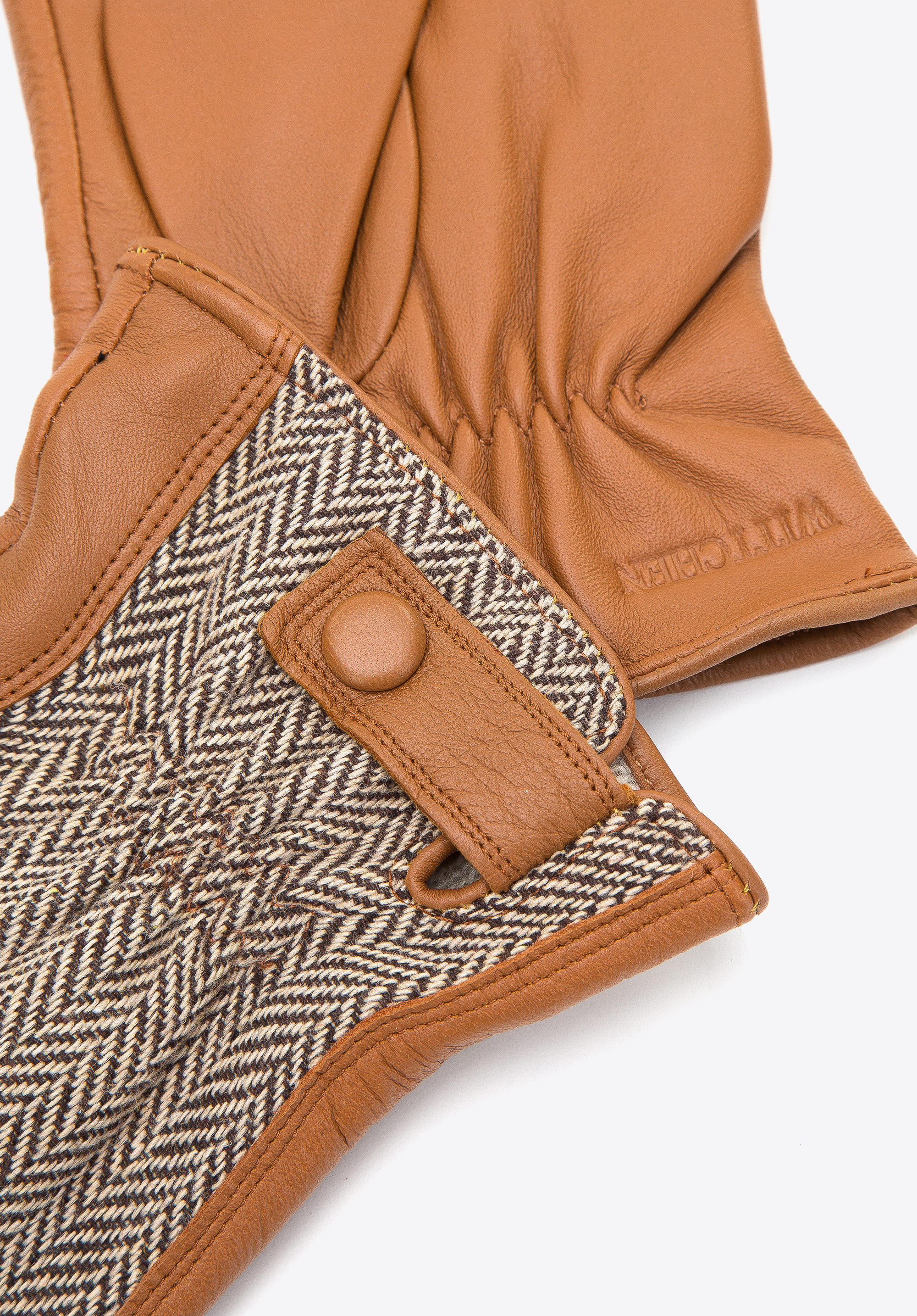 wszytej gumce dobrze dopasują się do dłoni i łatwo je założysz. Męskie rękawiczki skórzane ze wstawką w jodełkę będą świetnie wyglądały i do eleganckiego płaszcza, i do ulubionej skórzanej kurtki.