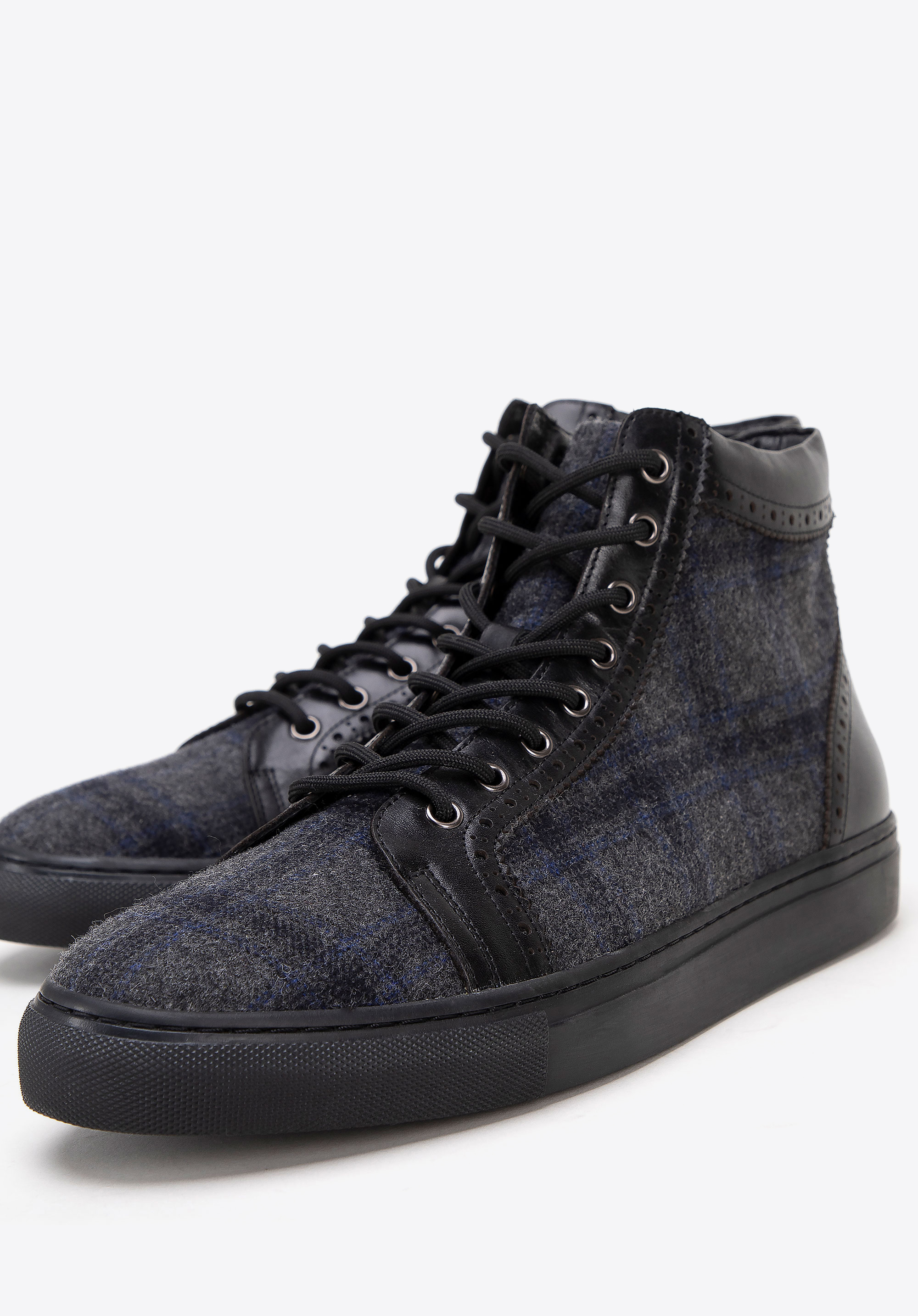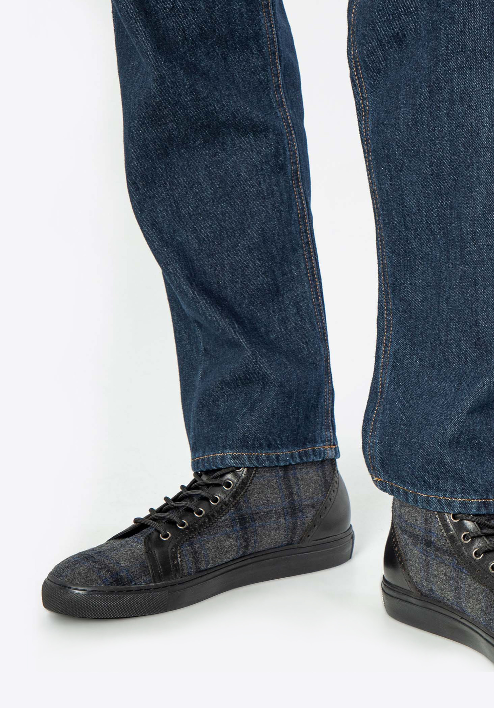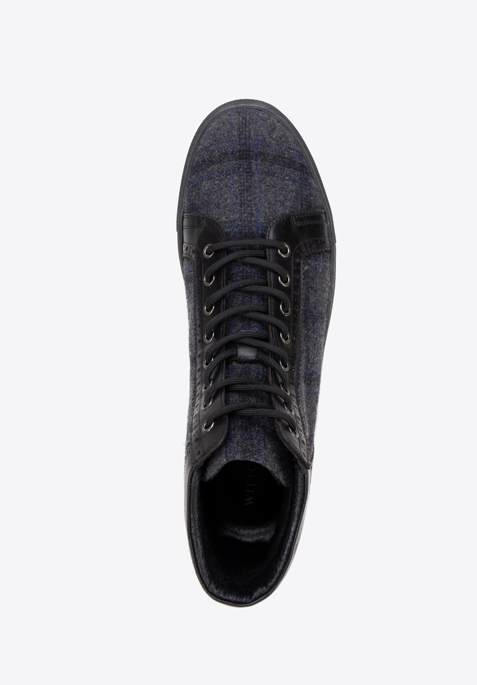 Te męskie sneakersy to kwintesencja komfortu, wykonane z najwyższej jakości naturalnej skóry licowej, uzupełnione subtelnie wykończonymi wstawkami z materiału włókienniczego. Wyjątkowo miękka skórzana wyściółka zapewnia niezrównaną wygodę noszenia i ochronę stóp. Sneakersy charakteryzują się noskiem w kształcie migdała oraz eleganckim sznurowaniem, co podkreśla ich wysublimowany styl. Solidna gumowa podeszwa zapewnia stabilność i trwałość, a delikatne perforacje na łączeniach materiałów zwiększają wentylację, gwarantując świeżość na długie godziny użytkowania.
