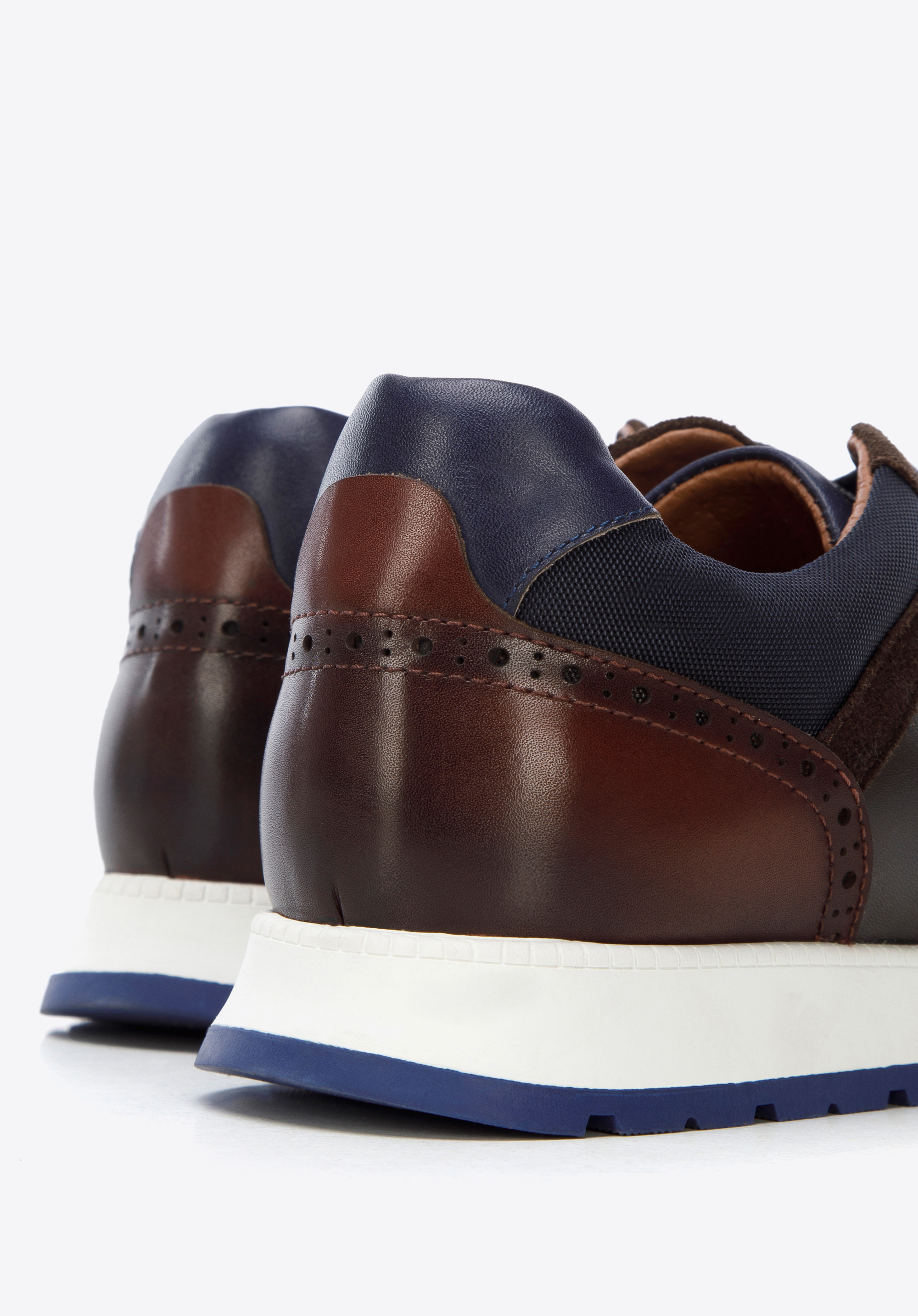 - tył buta wykończony ozdobnym dziurkowaniem;