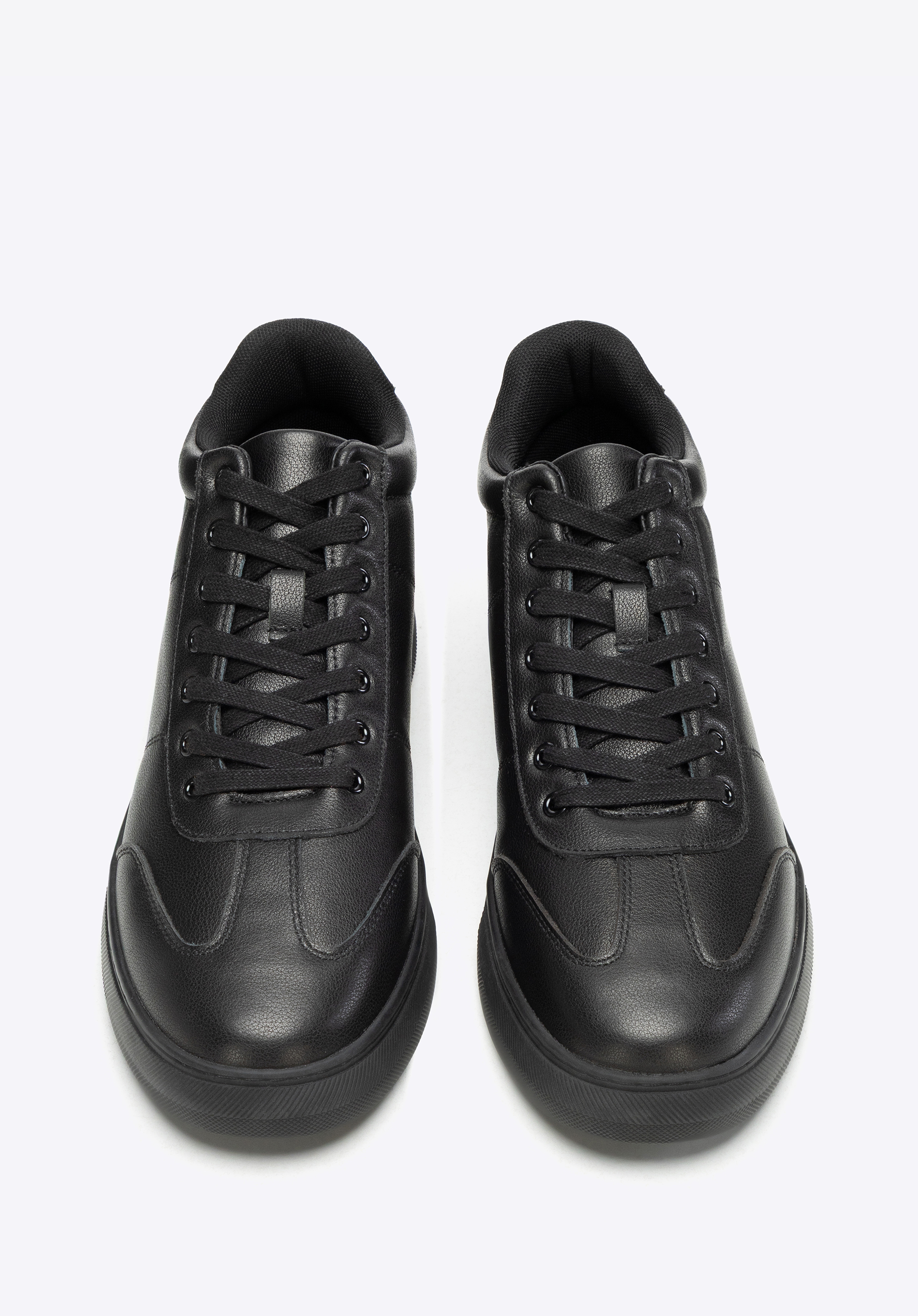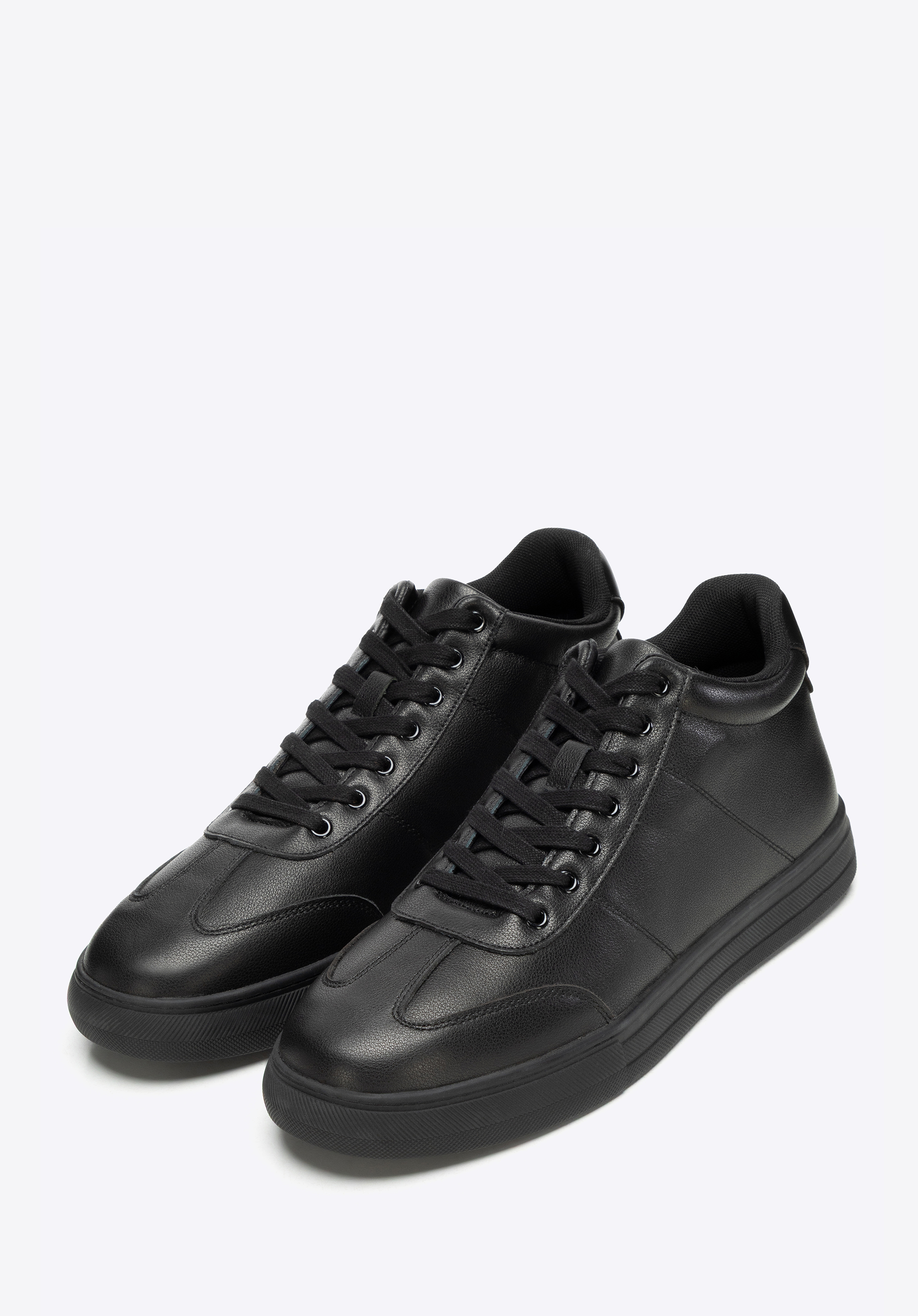 Postaw na dynamiczny design połączony z komfortem dzięki męskim sneakersom ze skóry naturalnej. Stylowe przeszycia na okrągłym nosku dodają butom nowoczesnego akcentu, a solidna platforma gwarantuje stabilny krok i podkreśla sportowy charakter każdej stylizacji. Miękka wkładka ze skóry naturalnej idealnie dopasowuje się do kształtu stopy, a lekka wyściółka z tkaniny mesh zapewnia przyjemne uczucie komfortu przez cały dzień.