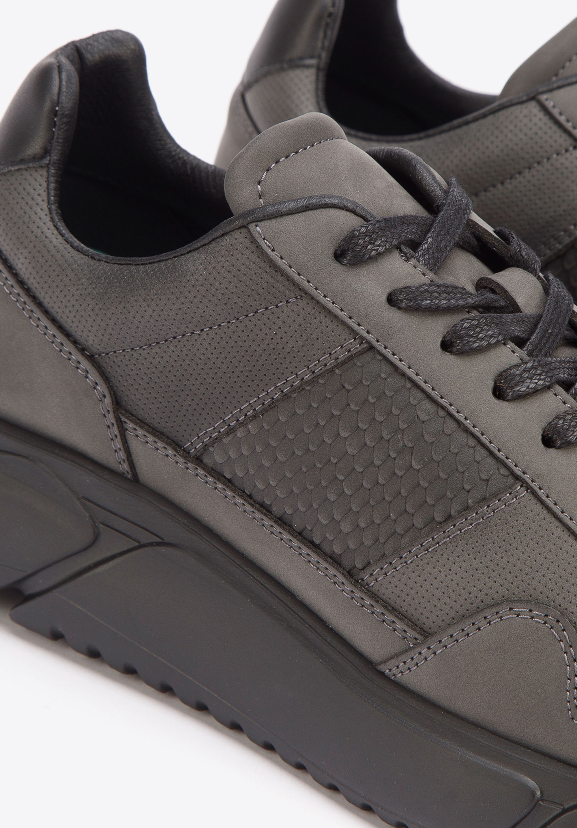 Pierwsze wegańskie buty WITTCHEN stworzone nie tylko dla wegan. Zostały uszyte i ręcznie wykończone w Portugalii. Wykonano je z ekologicznej skóry z modnymi wstawkami o fakturze lizard po bokach. Innowacyjna podeszwa z pianki EVA zapewnia doskonałą izolację od zimnej powierzchni. Jest elastyczna i sprężysta, dzięki czemu ma również znakomite właściwości amortyzujące. W środku buty mają wkładkę z włókna syntetycznego z miękką wyściółką. Męskie sneakersy z wegańskiej skóry ze wstawką lizard to świetne buty na spacery czy rower, ale i na co dzień, na przykład do pracy. Zyskasz buty nie tylko stylowe, ale i wyprodukowane w odpowiedzialny sposób z wegańskich surowców.