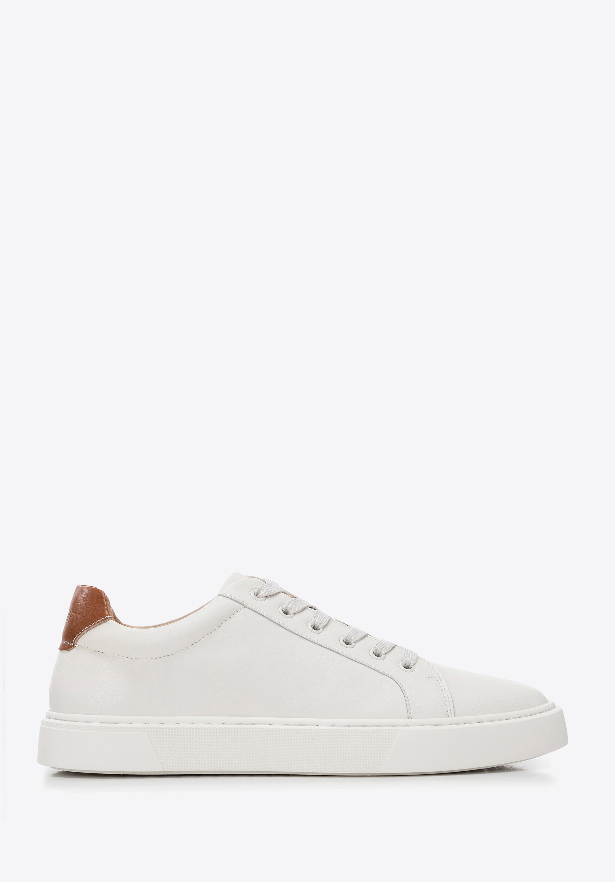 Męskie sneakersy ze skóry dwukolorowe biało - brązowe