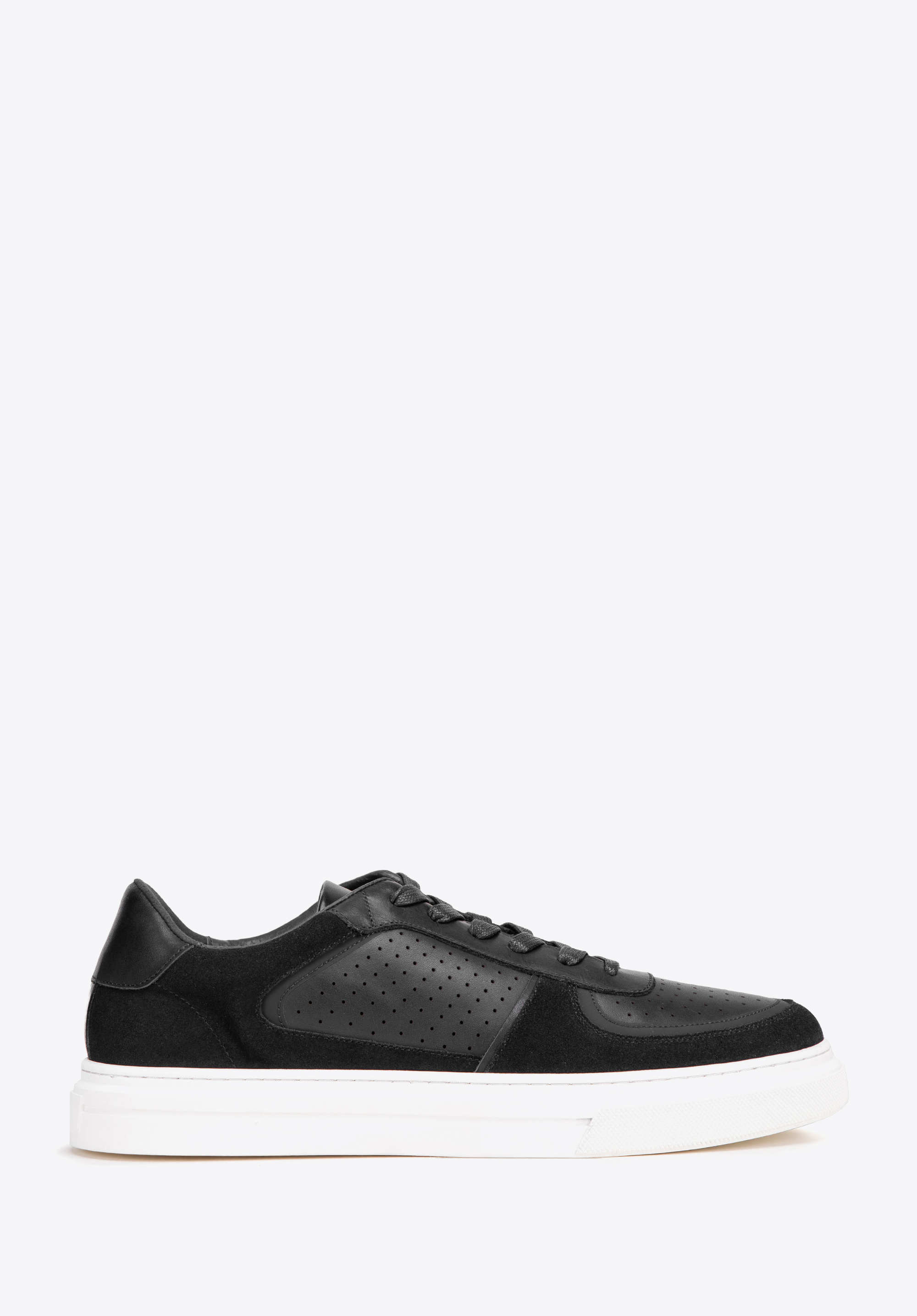 Odkryj idealne połączenie elegancji i komfortu dzięki tym męskim sneakersom, które łączą w sobie luksusową skórę zamszową oraz gładką skórę licową. Te niskie, sznurowane buty są zaprojektowane z myślą o mężczyznach, którzy cenią sobie zarówno styl, jak i wygodę w codziennym użytkowaniu. Charakterystyczny nosek w kształcie migdała dodaje subtelnego, nowoczesnego akcentu, który wyróżnia się na tle innych modeli. Detale w postaci dziurkowania na nosku i bokach nie tylko zwiększają wentylację, ale także podkreślają unikalny styl tych sneakersów.