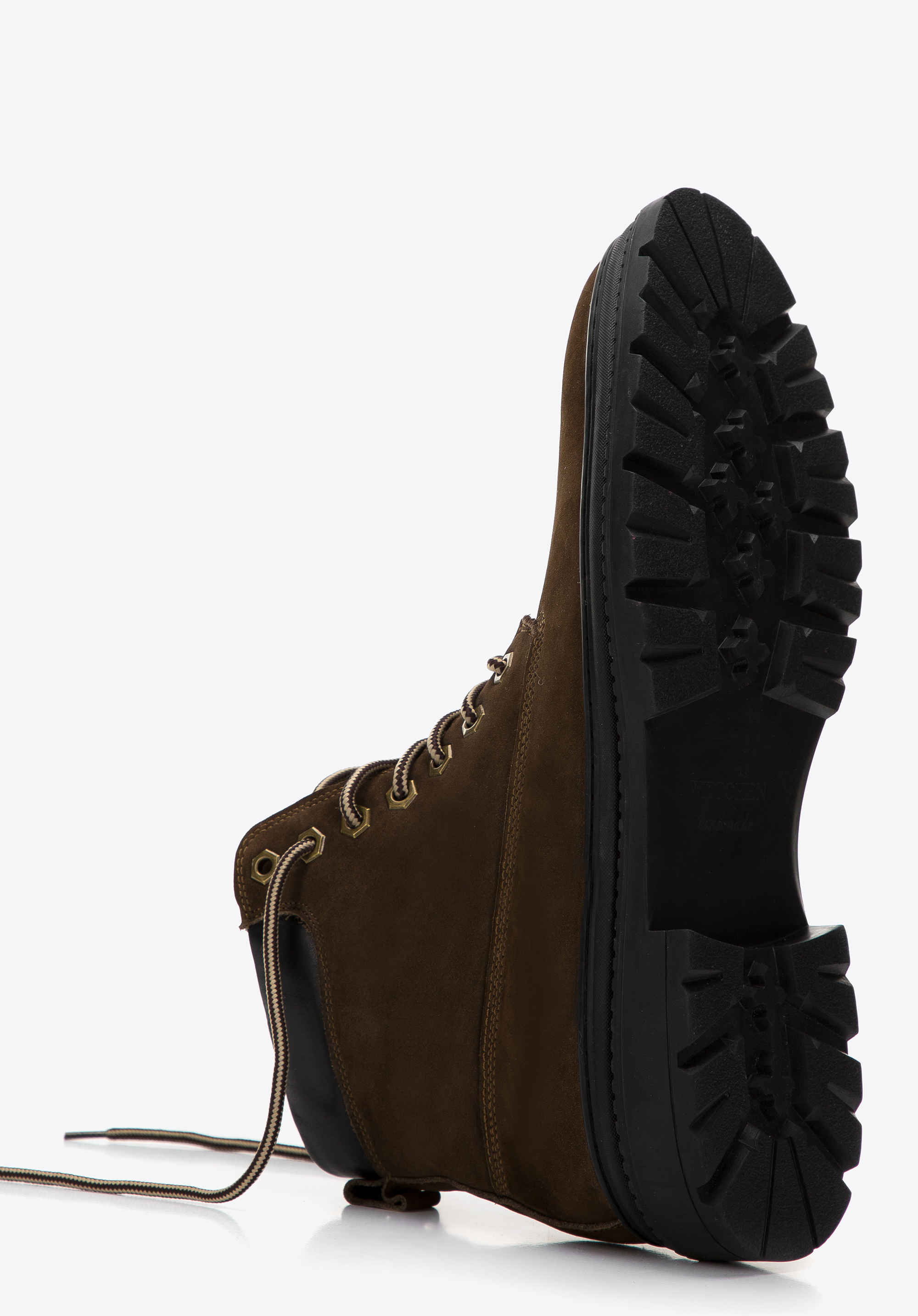 Gumowa podeszwa na traktorze zadba o dobrą przyczepność każdego dnia. Męskie trapery nubukowe sznurowane to świetny wybór na jesień i łagodną zimę dla każdego aktywnego mężczyzny.