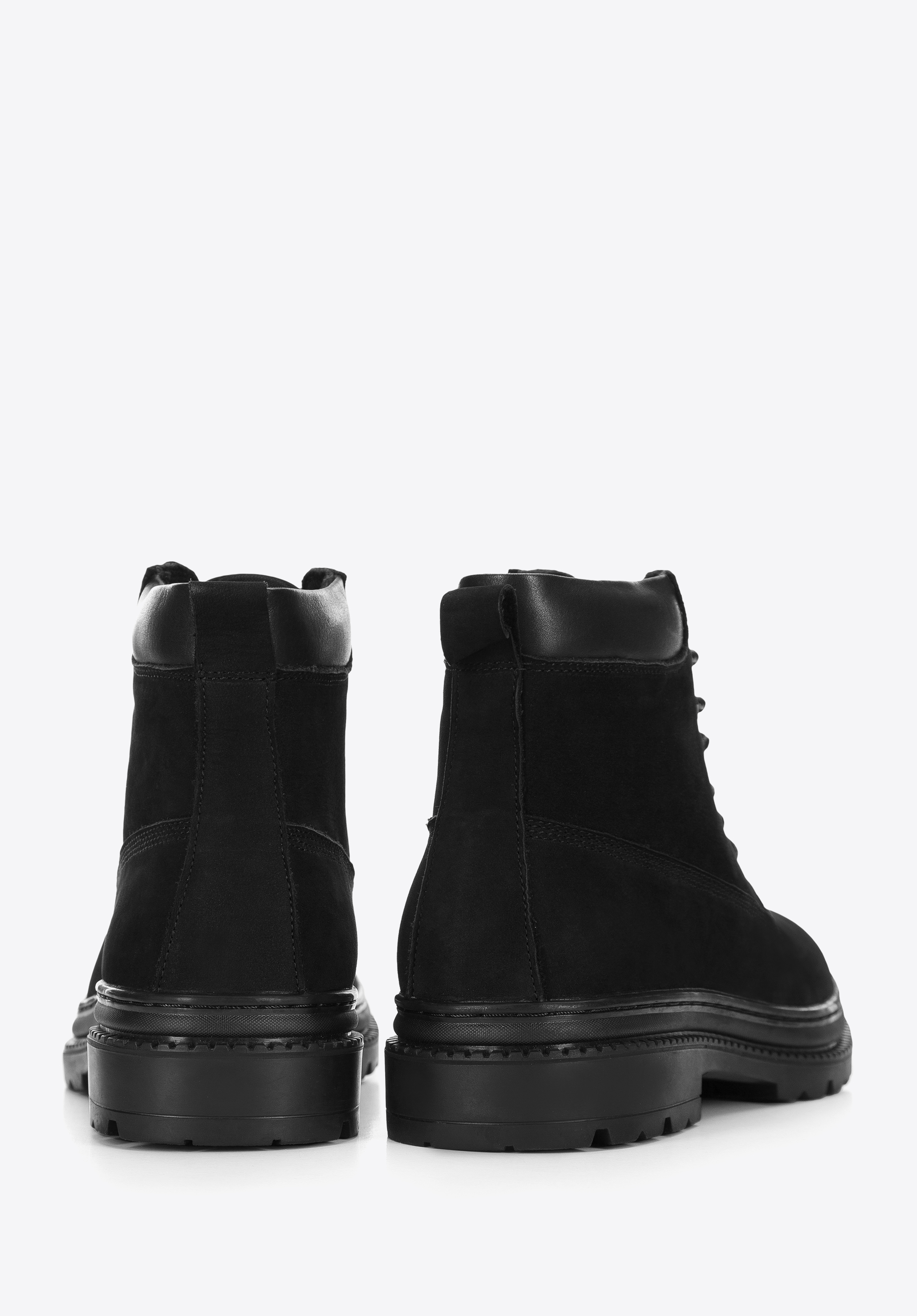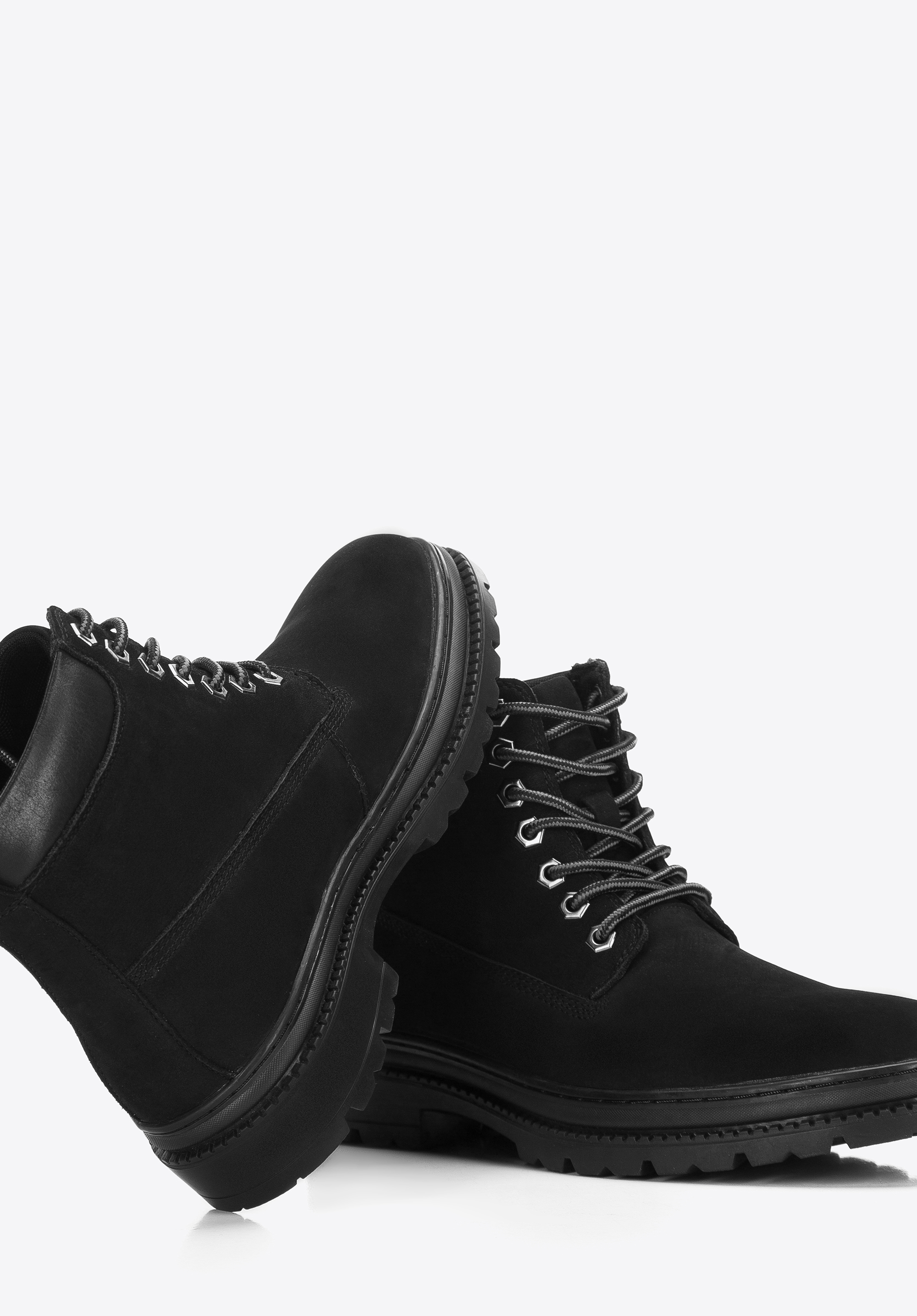 Gumowa podeszwa na traktorze zadba o dobrą przyczepność każdego dnia. Męskie trapery nubukowe sznurowane to świetny wybór na jesień i łagodną zimę dla każdego aktywnego mężczyzny.
