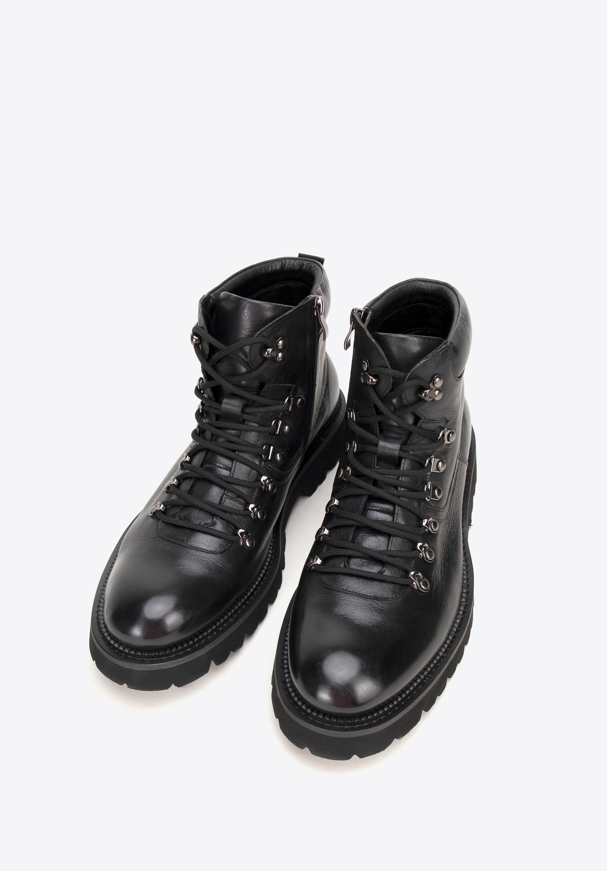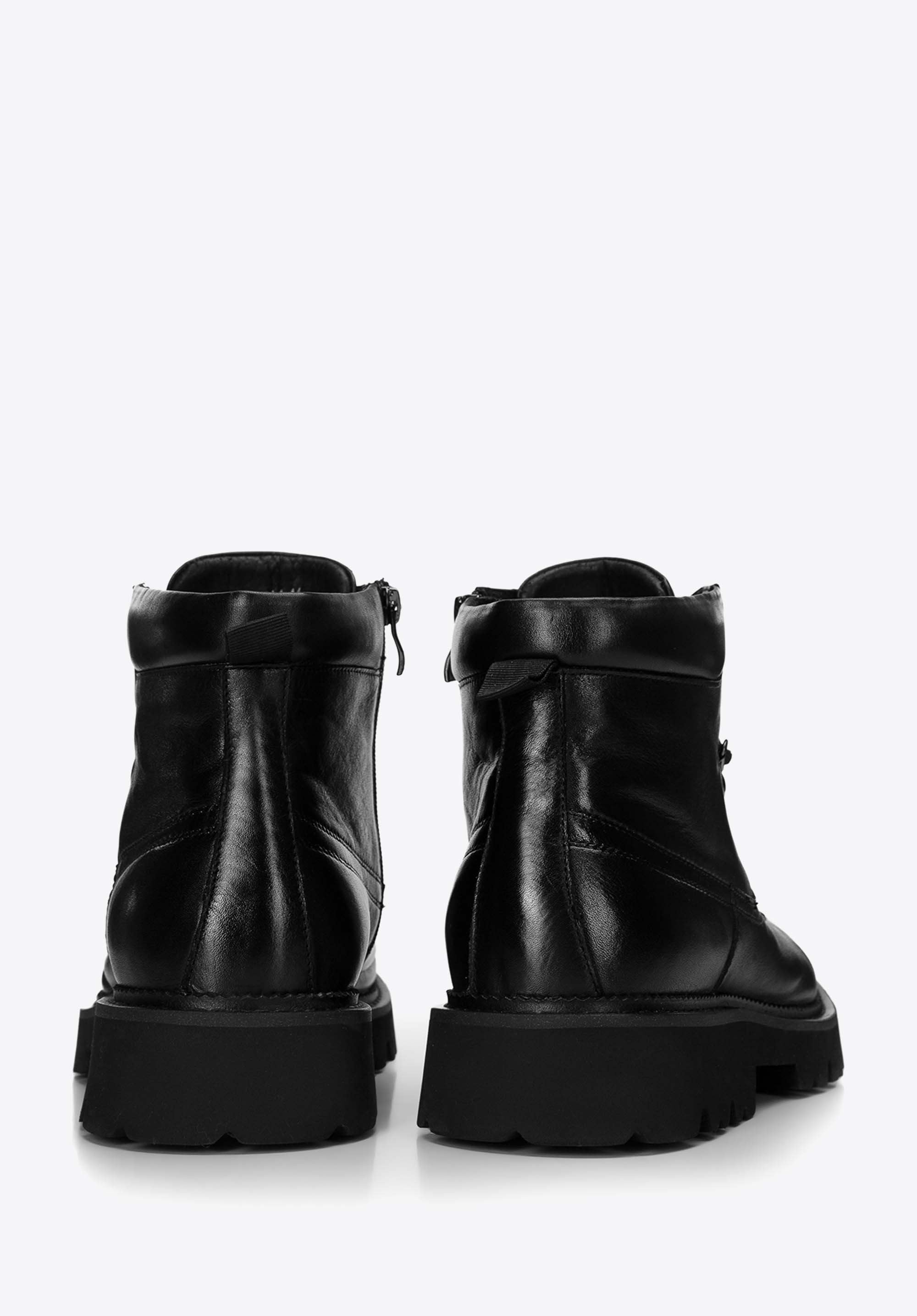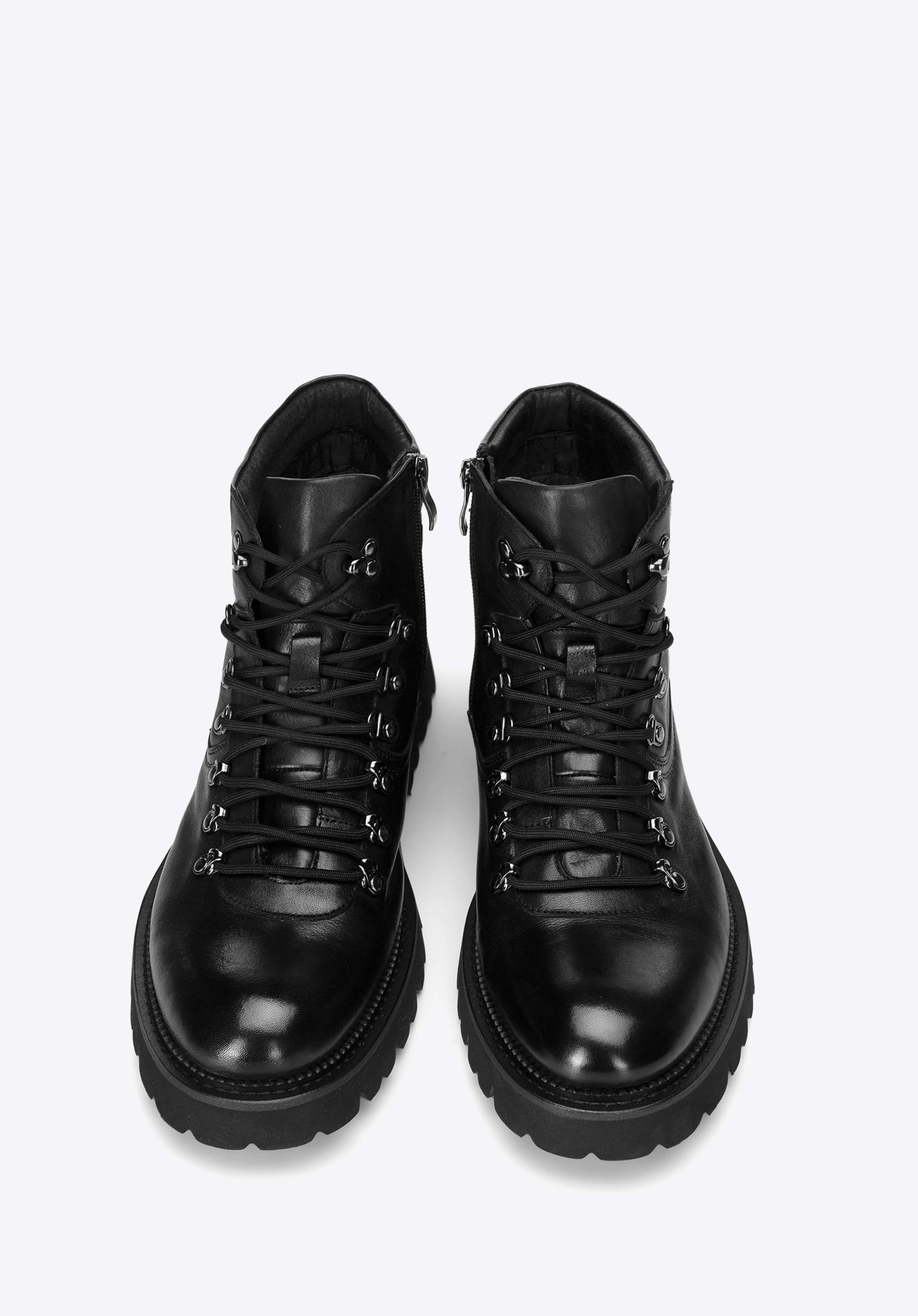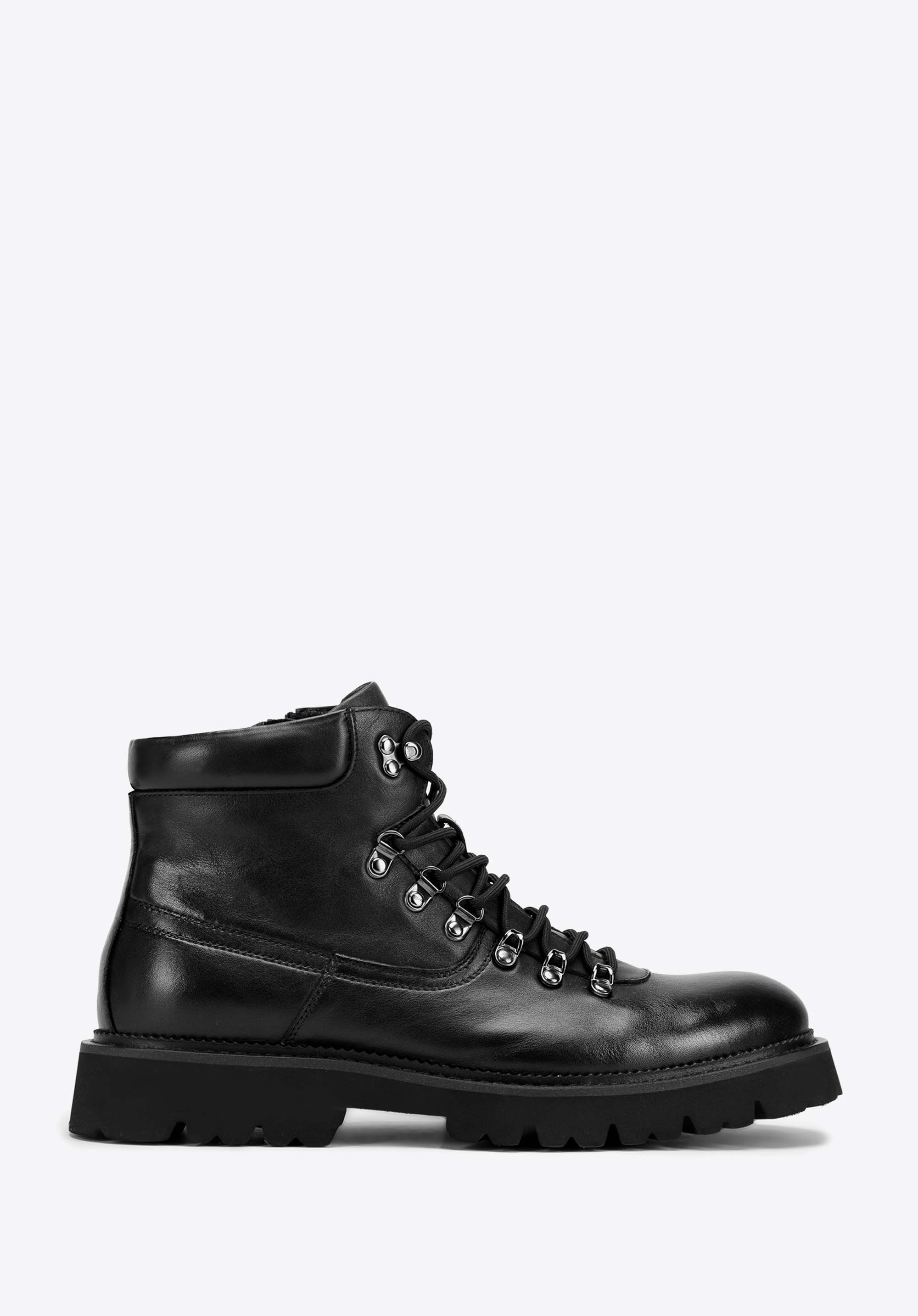 Męskie trapery skórzane na podeszwie typu track odnajdą się w garderobie osób aktywnych, które potrzebują solidnego obuwia na sezon przejściowy i zimowy, zarówno w mieście, jak i poza nim. Naturalna skóra, stabilna podeszwa o wyrazistym bieżniku oraz komfortowe wnętrze wspierają stopę przez cały dzień, zapewniając pewność kroku i dopracowany wygląd.