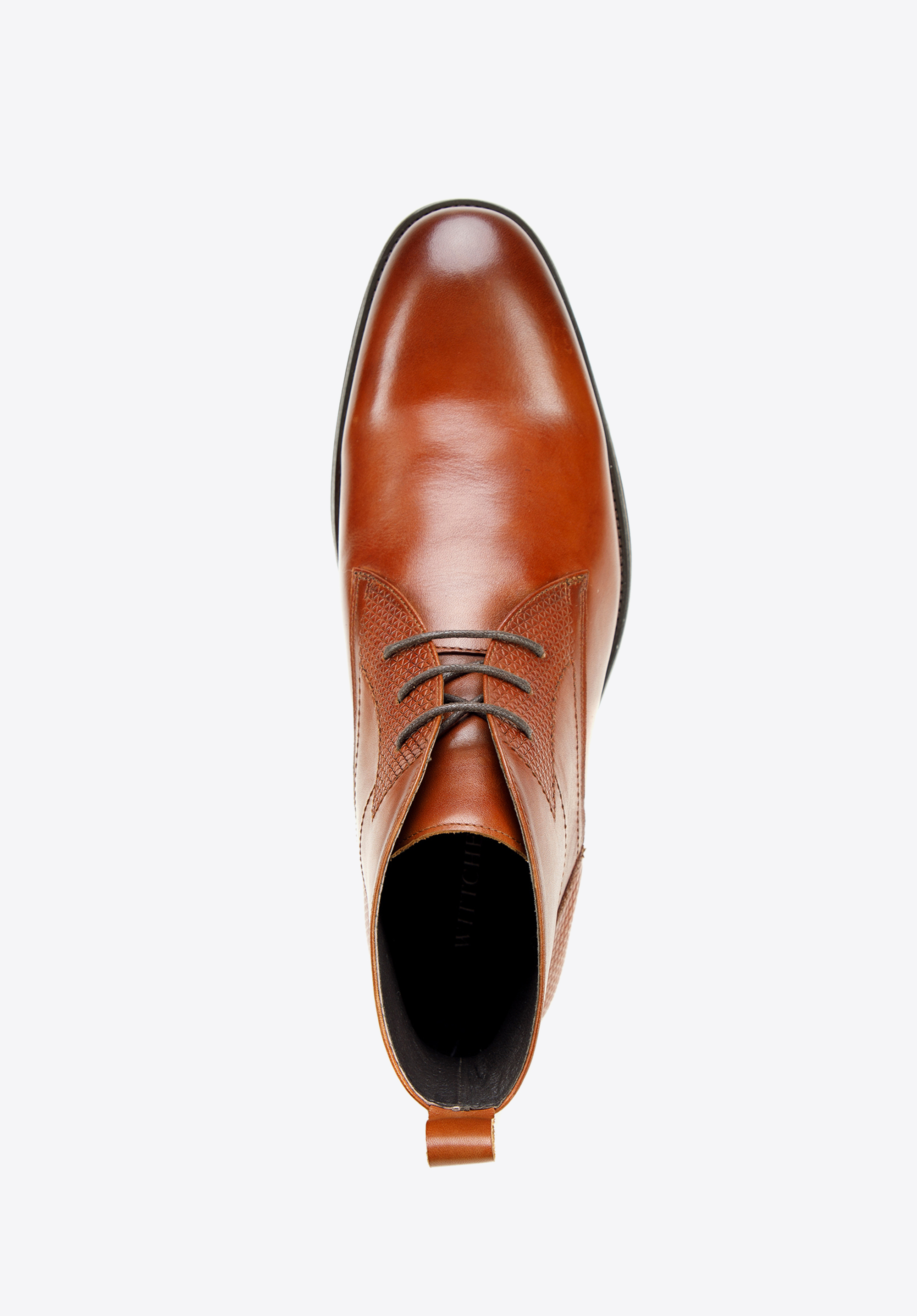Męskie trzewiki skórzane ze wstawkami brązowe