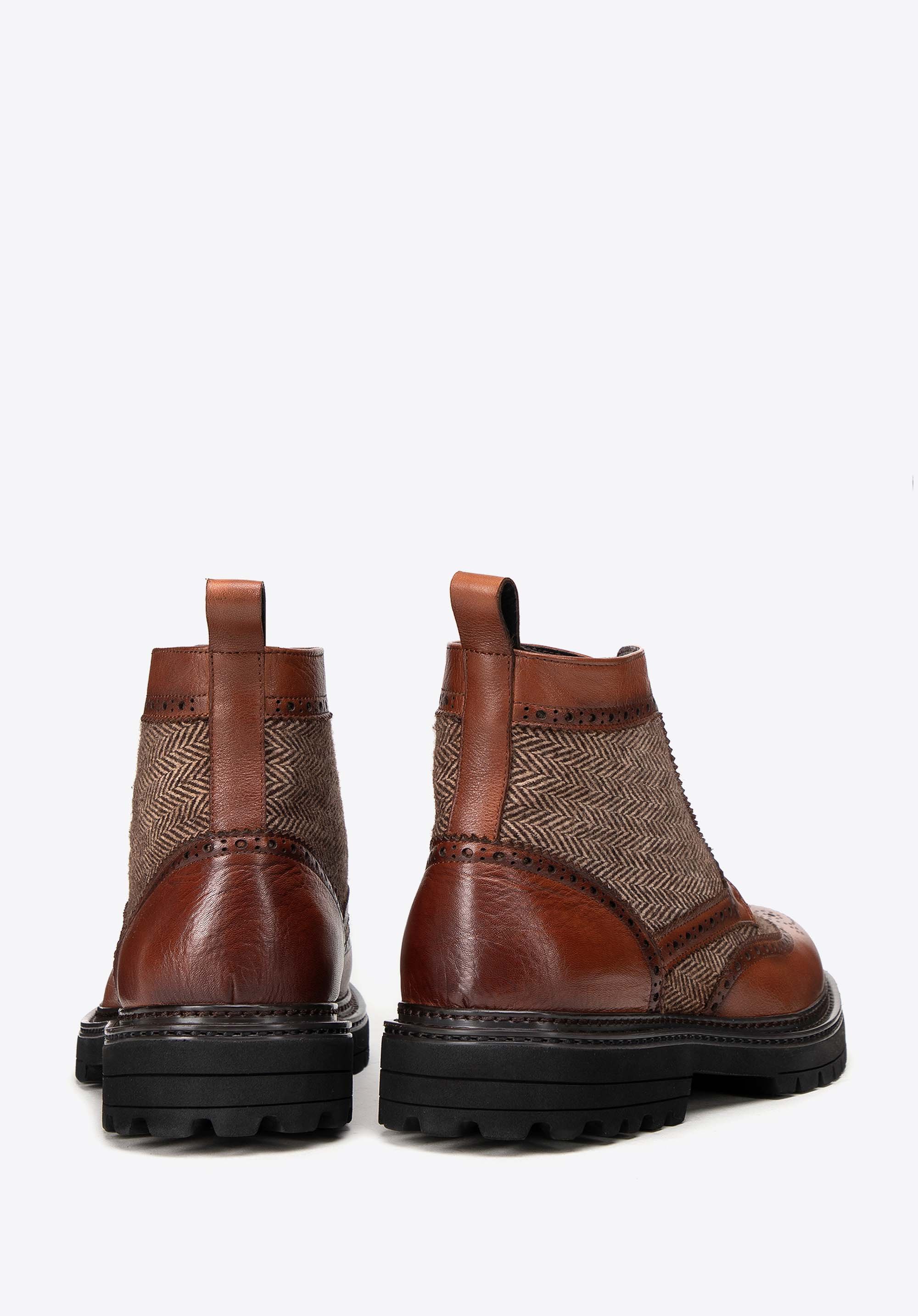 - Charakterystyczne zdobienia typu brogue dodają butom elegancji i unikalnego charakteru.