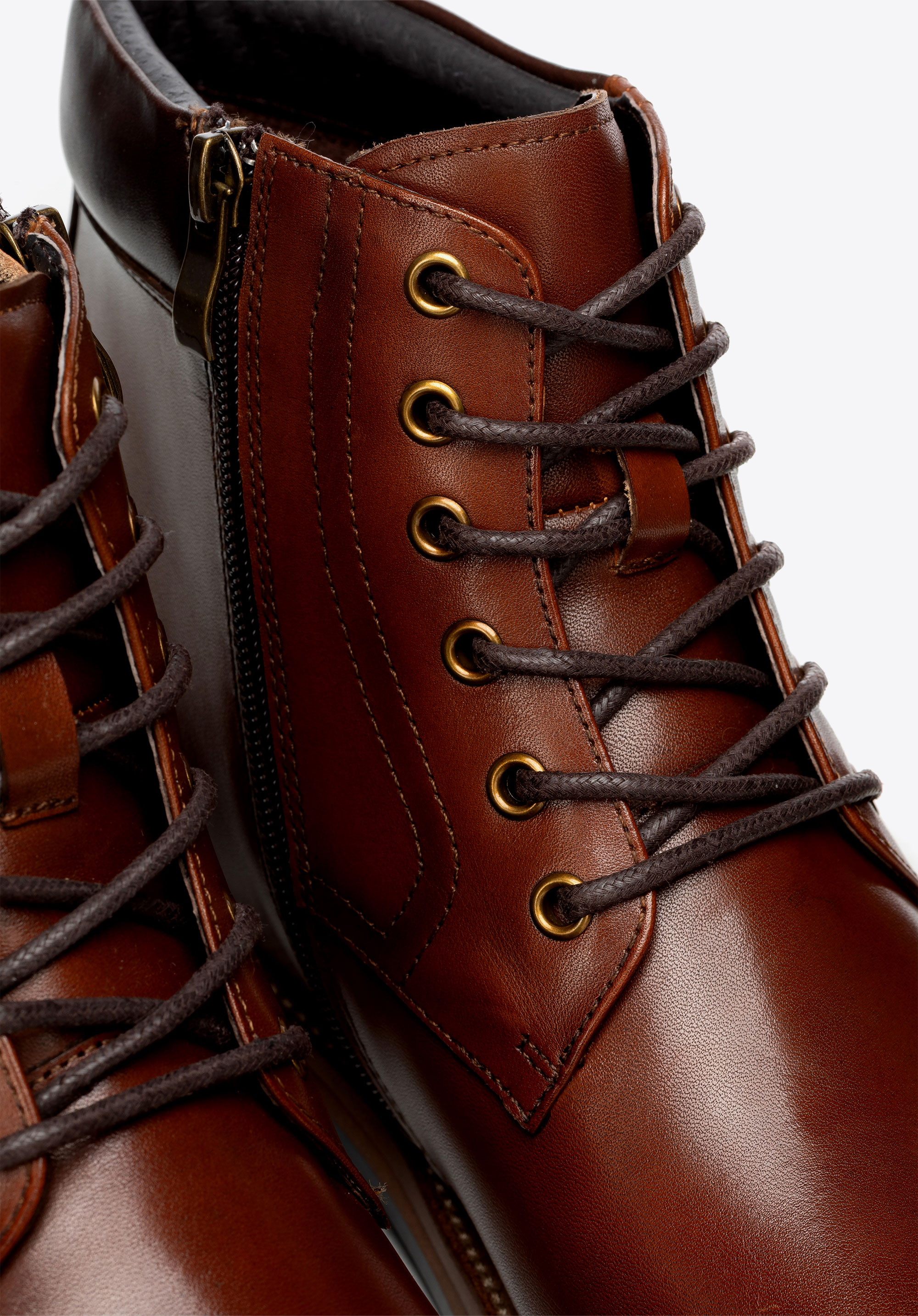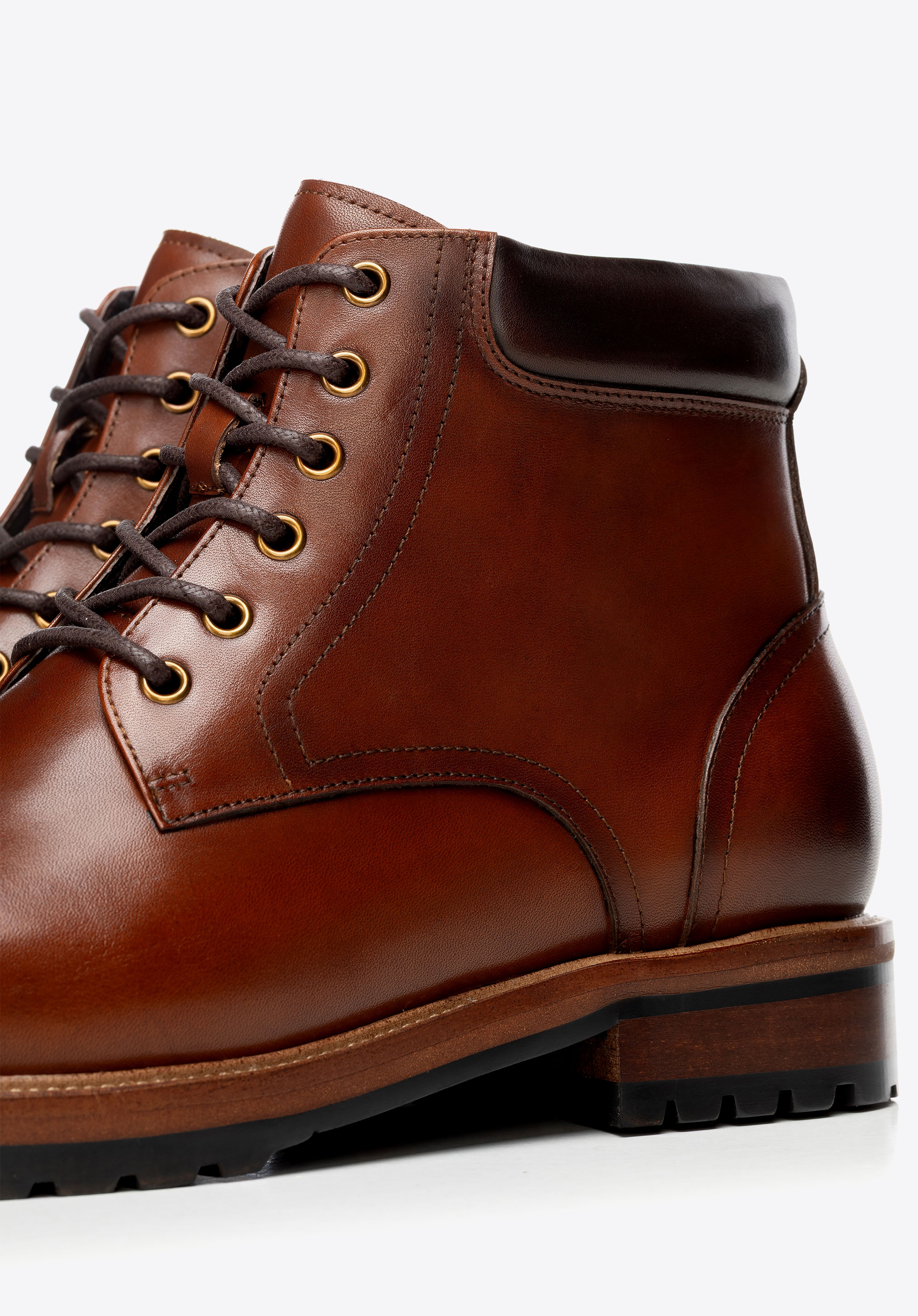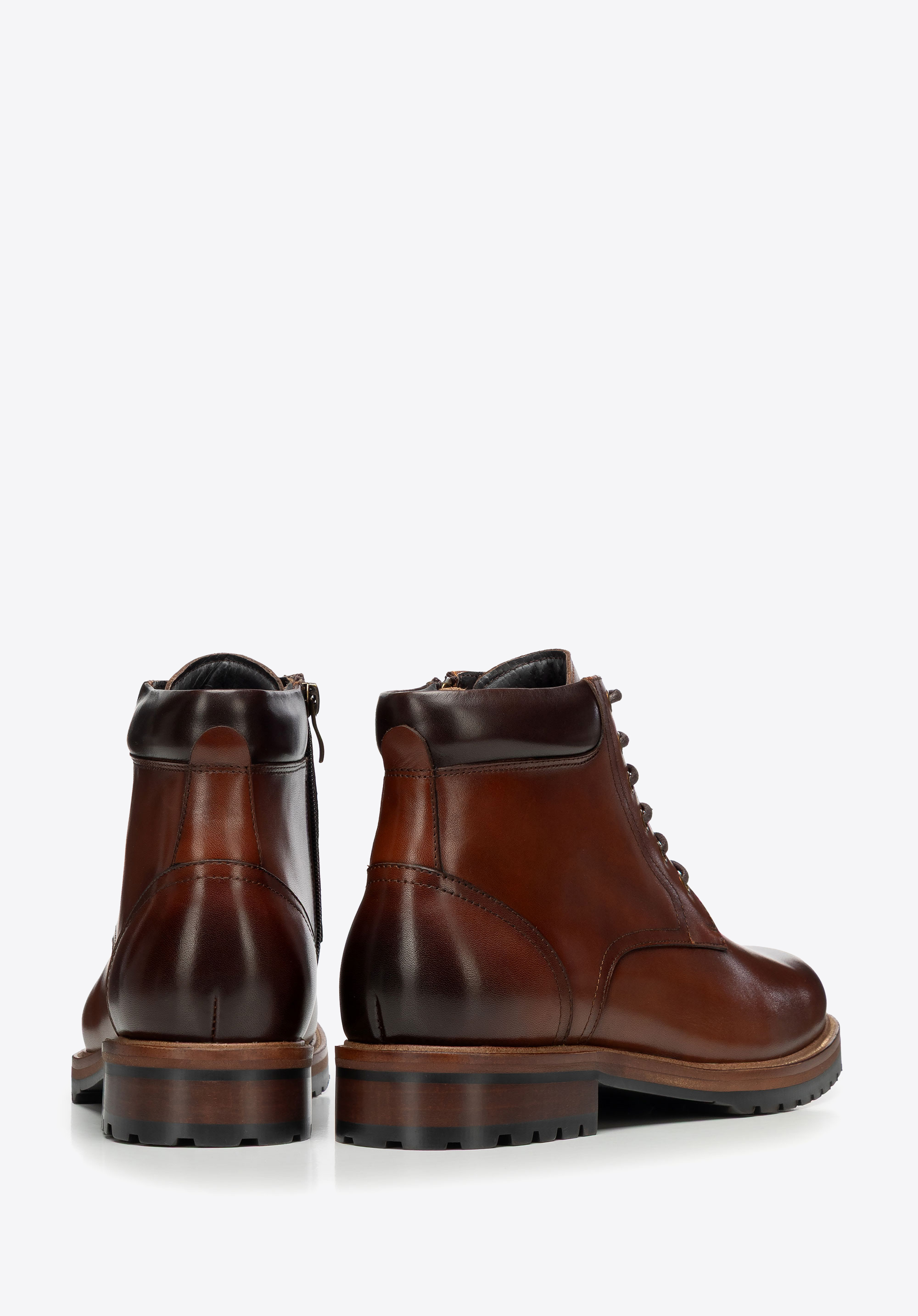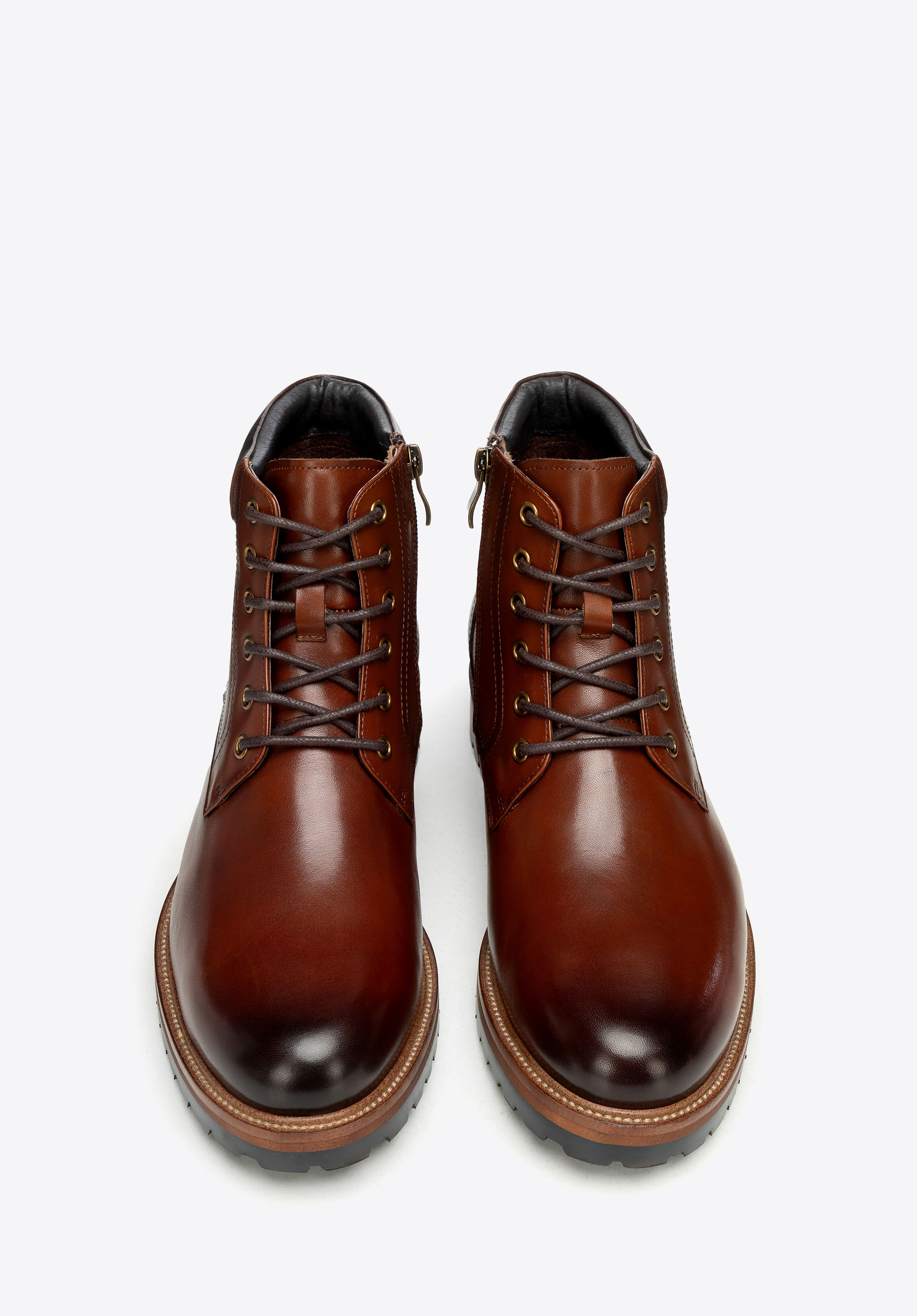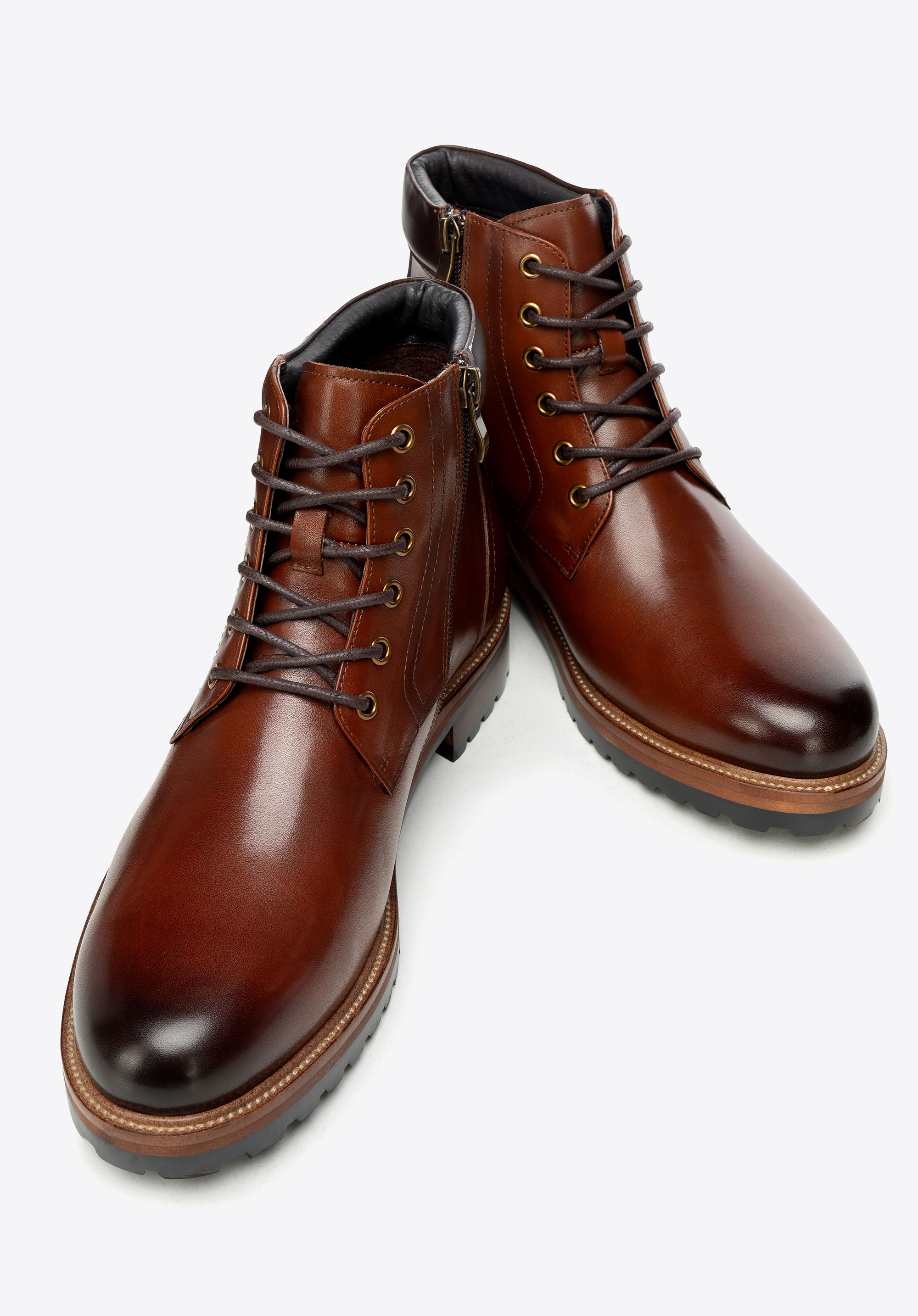 Męskie trzewiki ze skóry naturalnej licowej będą idealne na chłodniejsze miesiące, kiedy potrzebujesz stylu smart casual z wygodą na cały dzień. Boczne zamknięcie przyspiesza zakładanie, sznurowanie pozwala dopasować cholewkę, a skórzane wnętrze i podeszwa track dbają o komfort i przyczepność.