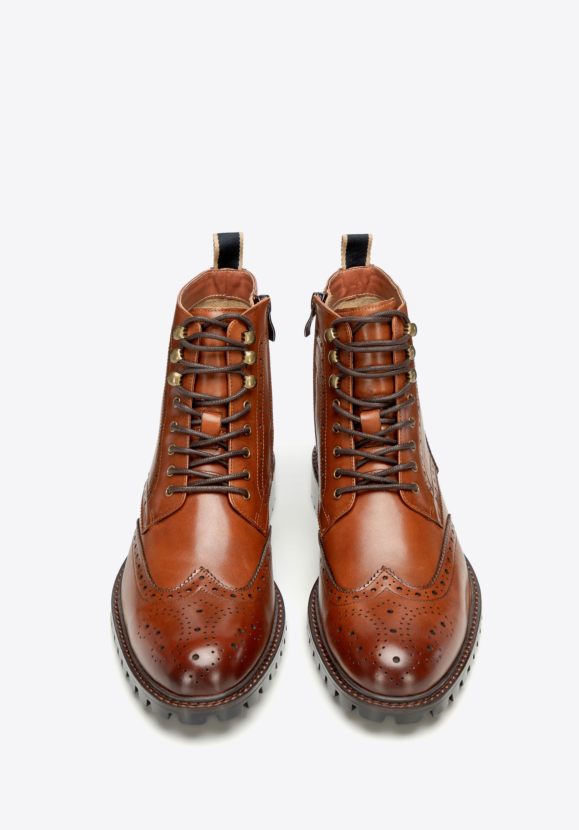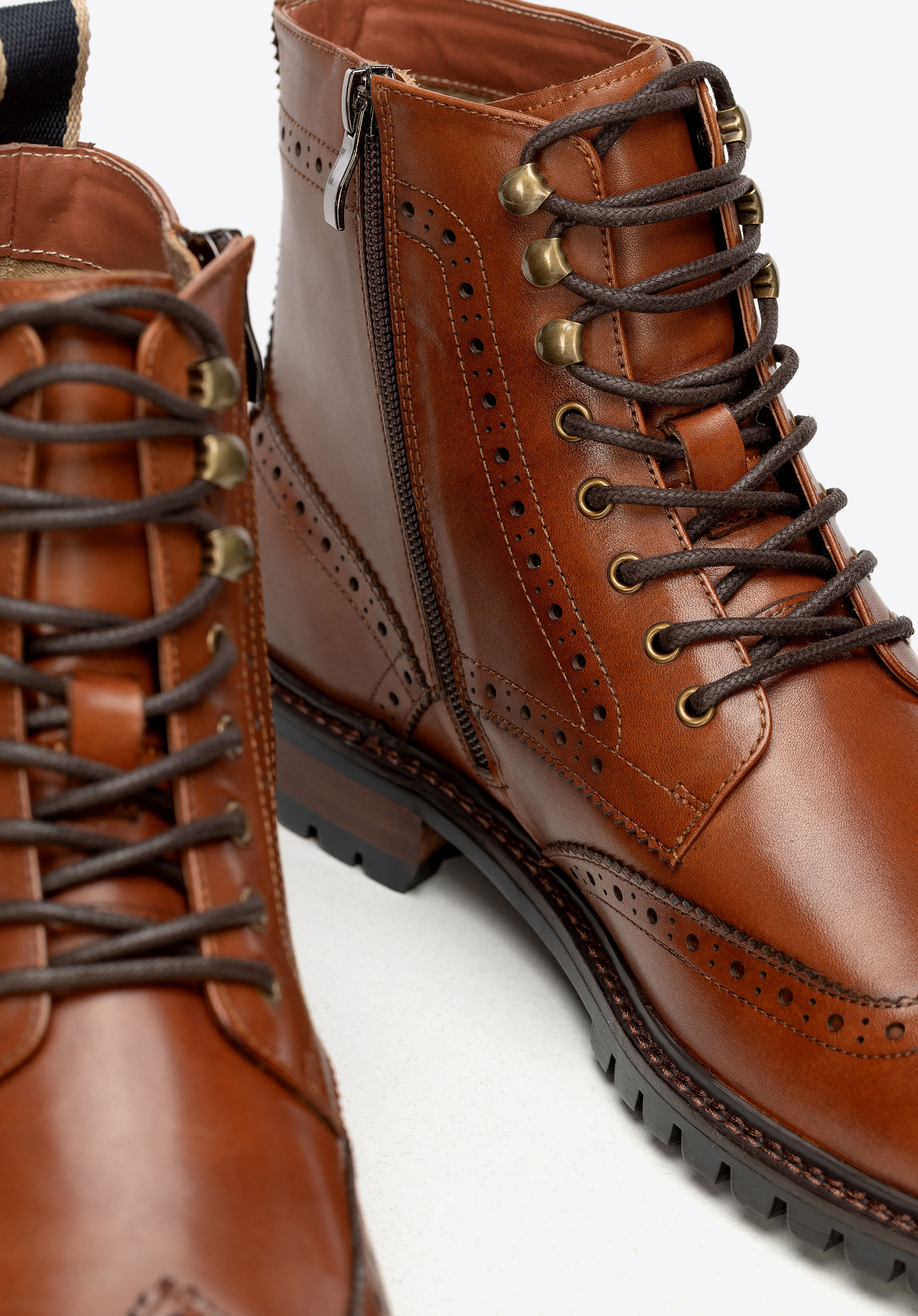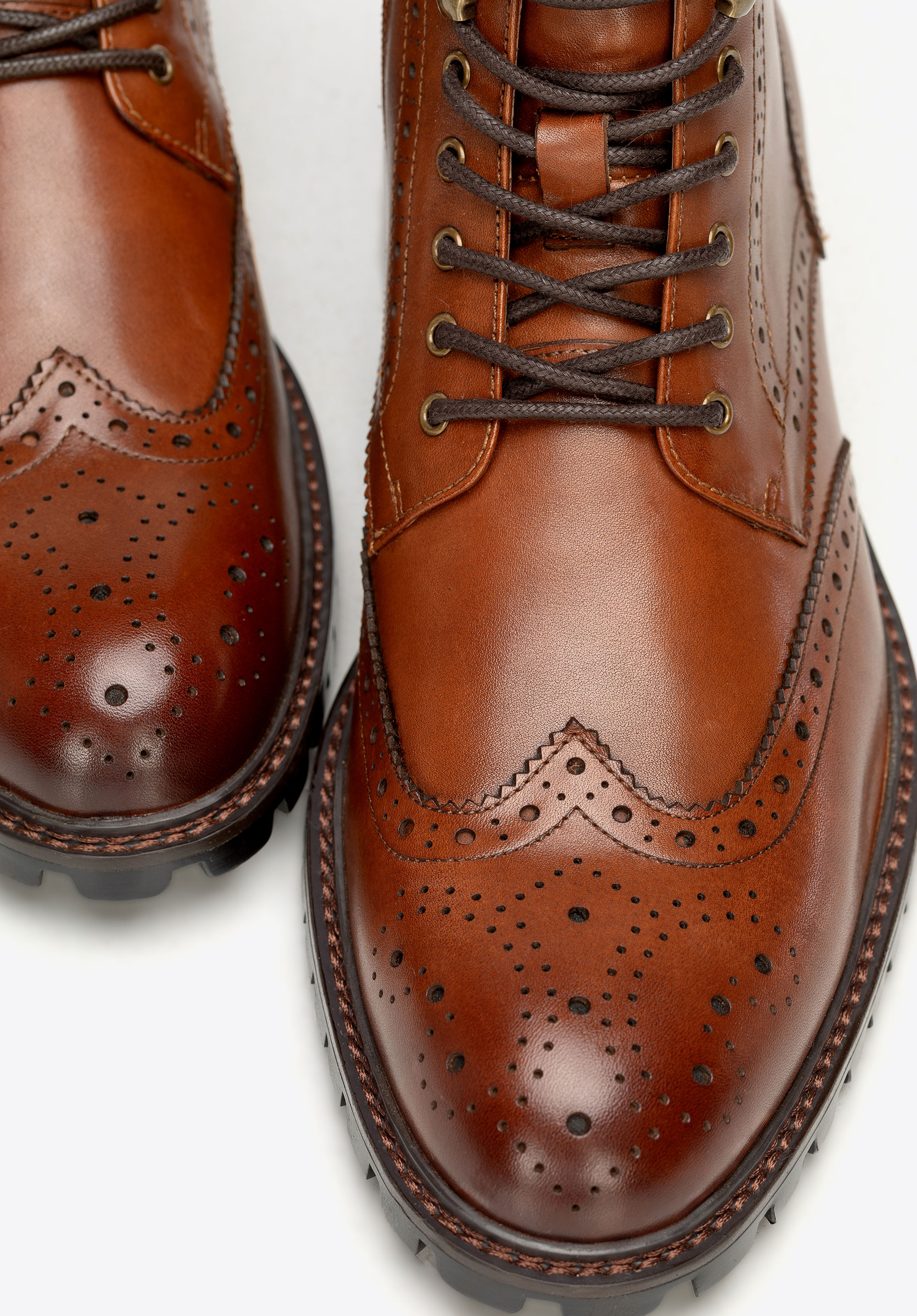 Męskie trzewiki skórzane perforowane – elegancja i komfort na co dzień