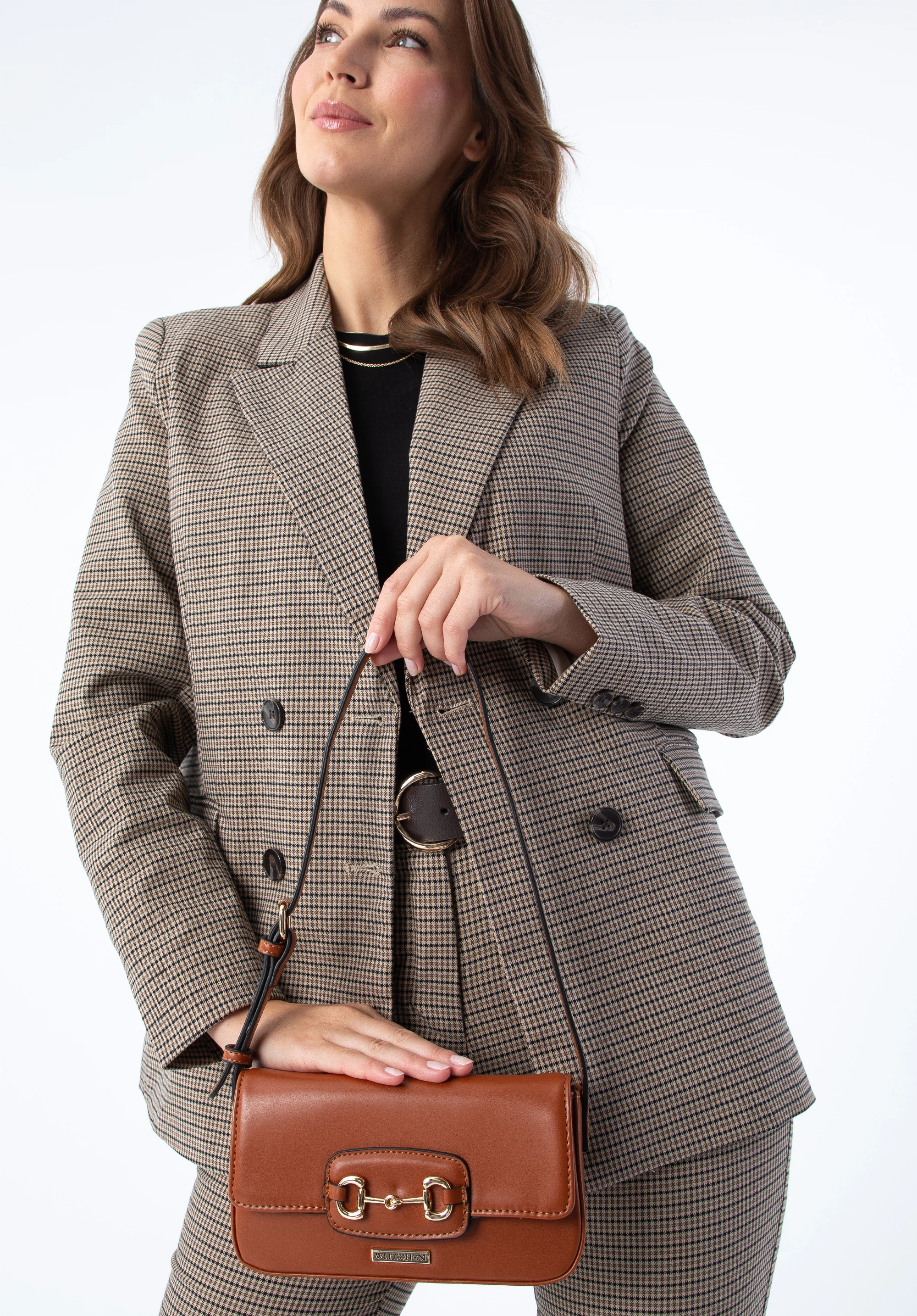Minitorebka bagietka z ozdobną klamrą na klapie odnajdzie się przy wyjściach do teatru, na spacer i podczas spotkań, gdy chcesz wyglądać stylowo bez zabierania dużej torebki. Usztywniony fason, magnetyczne zamknięcie i regulowany pasek dają komfort noszenia, a połyskująca klamra subtelnie podbija charakter stylizacji.