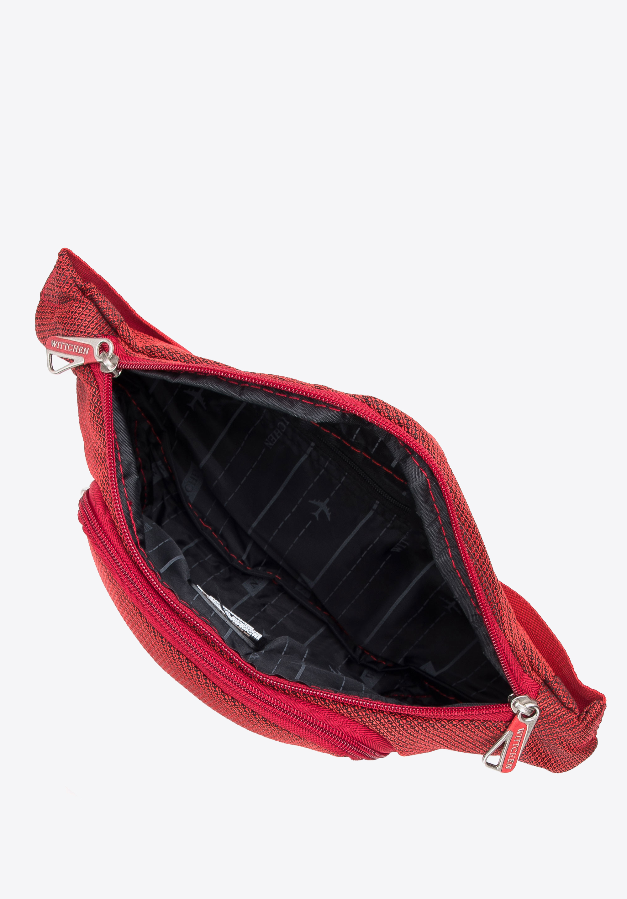 • zamykana na suwak; • wewnątrz znajduje się kieszeń zamykana na suwak; • dodatkowo z przodu kieszeń zamykana na suwak; • regulowany pasek.