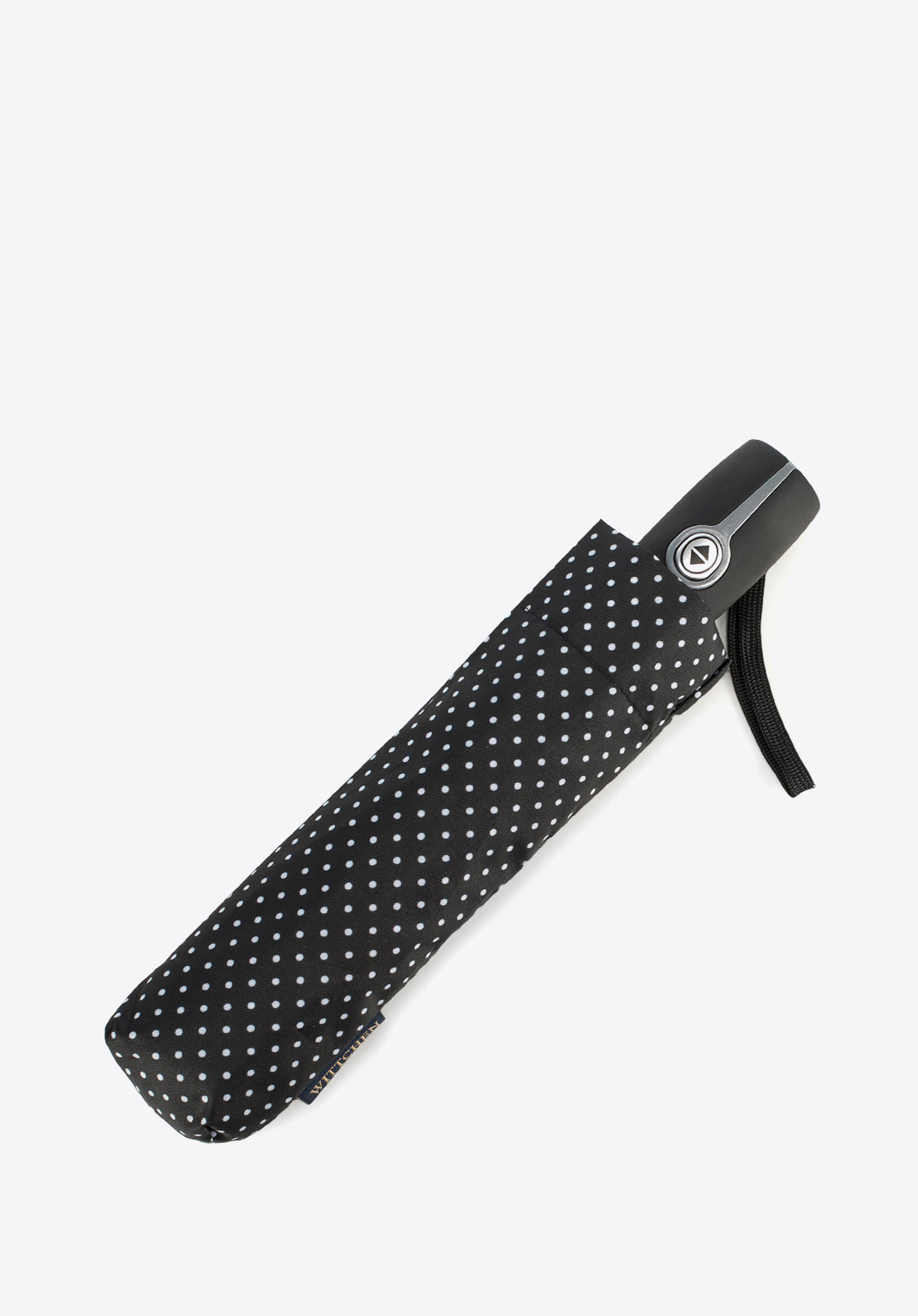 Mały parasol automatyczny z paskiem umożliwiającym wygodne przenoszenie parasolki na nadgarstku. Stabilny