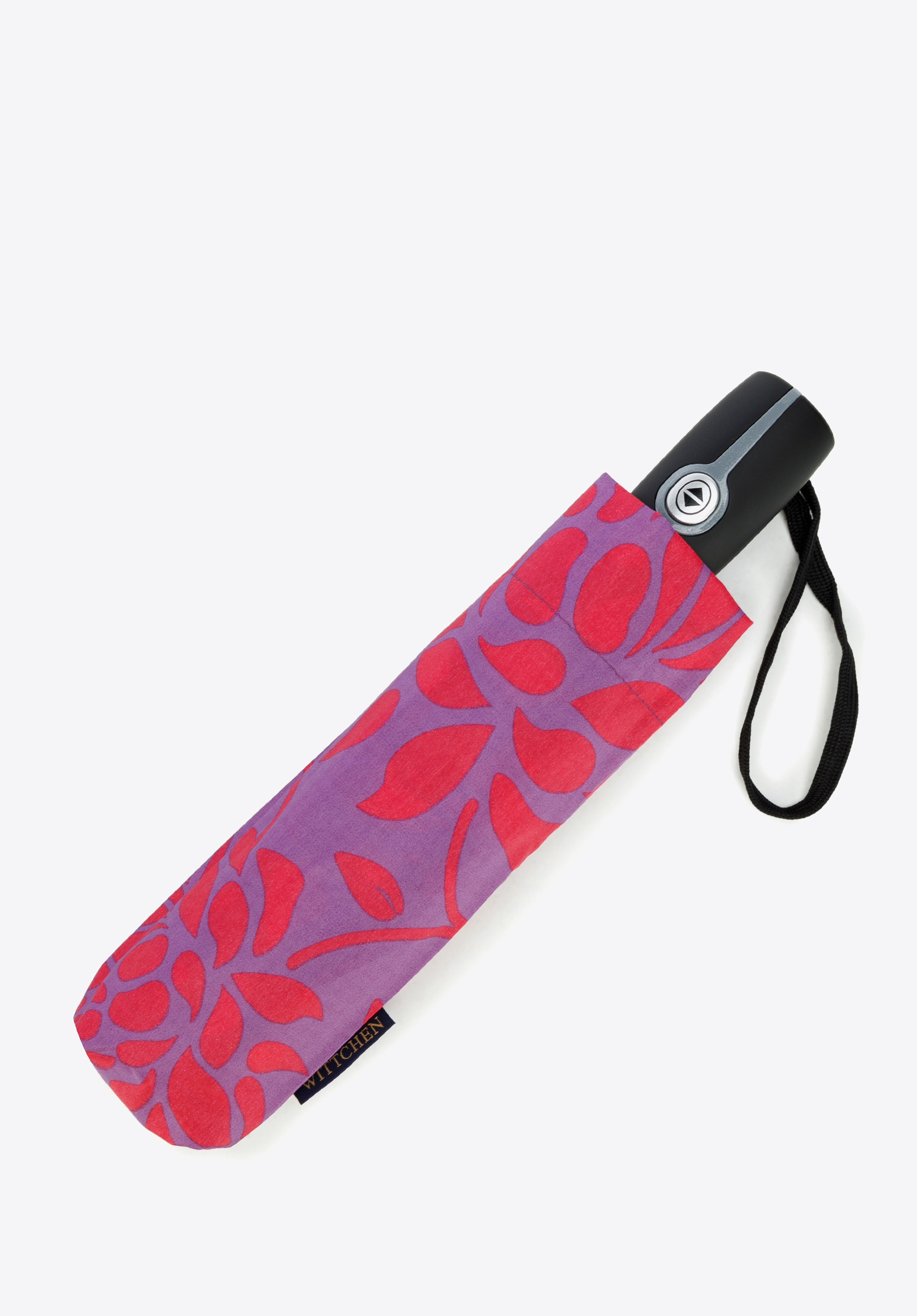 Mały parasol automatyczny z paskiem umożliwiającym wygodne przenoszenie parasolki na nadgarstku. Stabilny