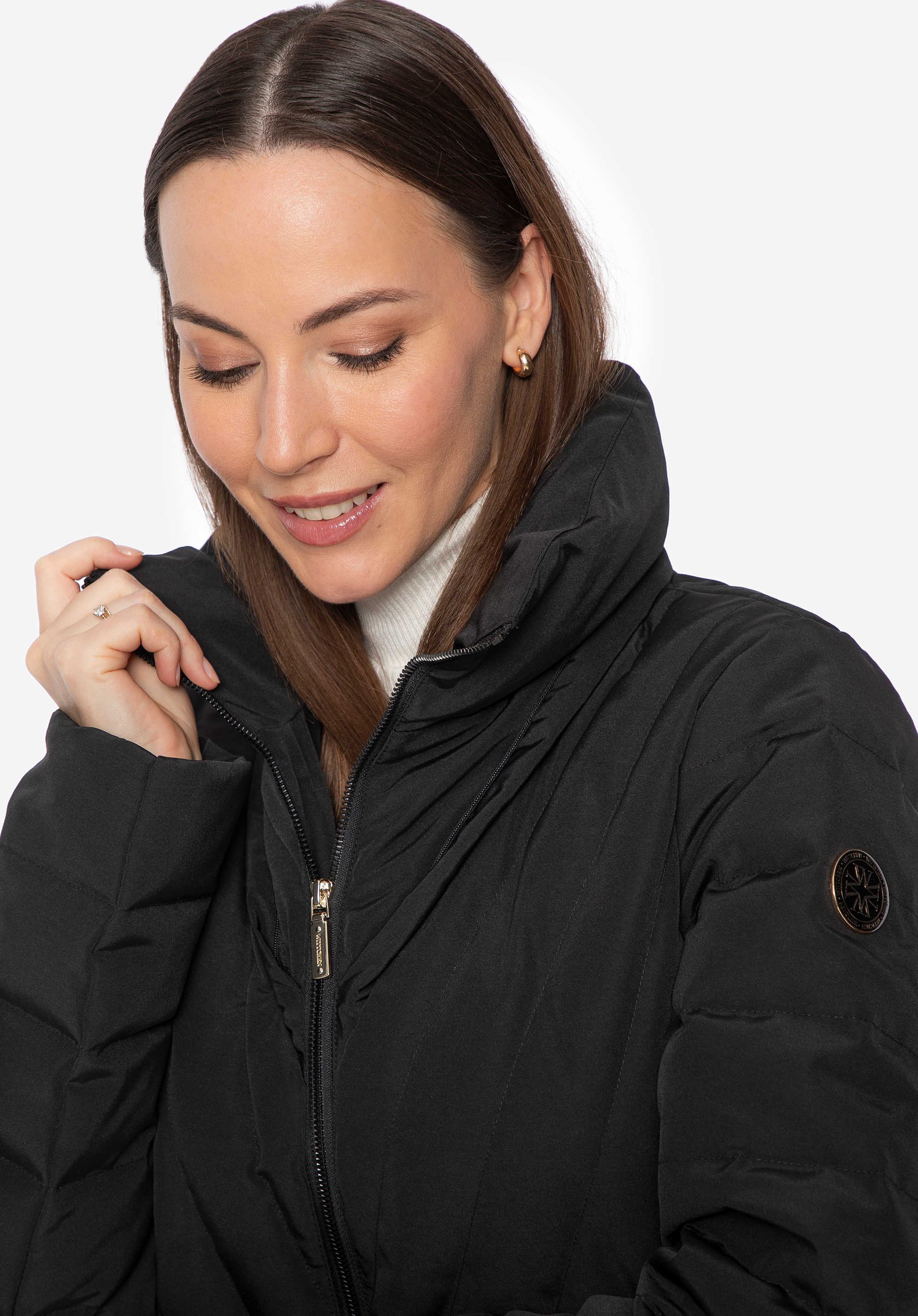 - Ochrona termiczna: Naturalne wypełnienie z puchu kaczego i pierza gwarantuje przyjemne ciepło, zachowując lekkość kurtki.