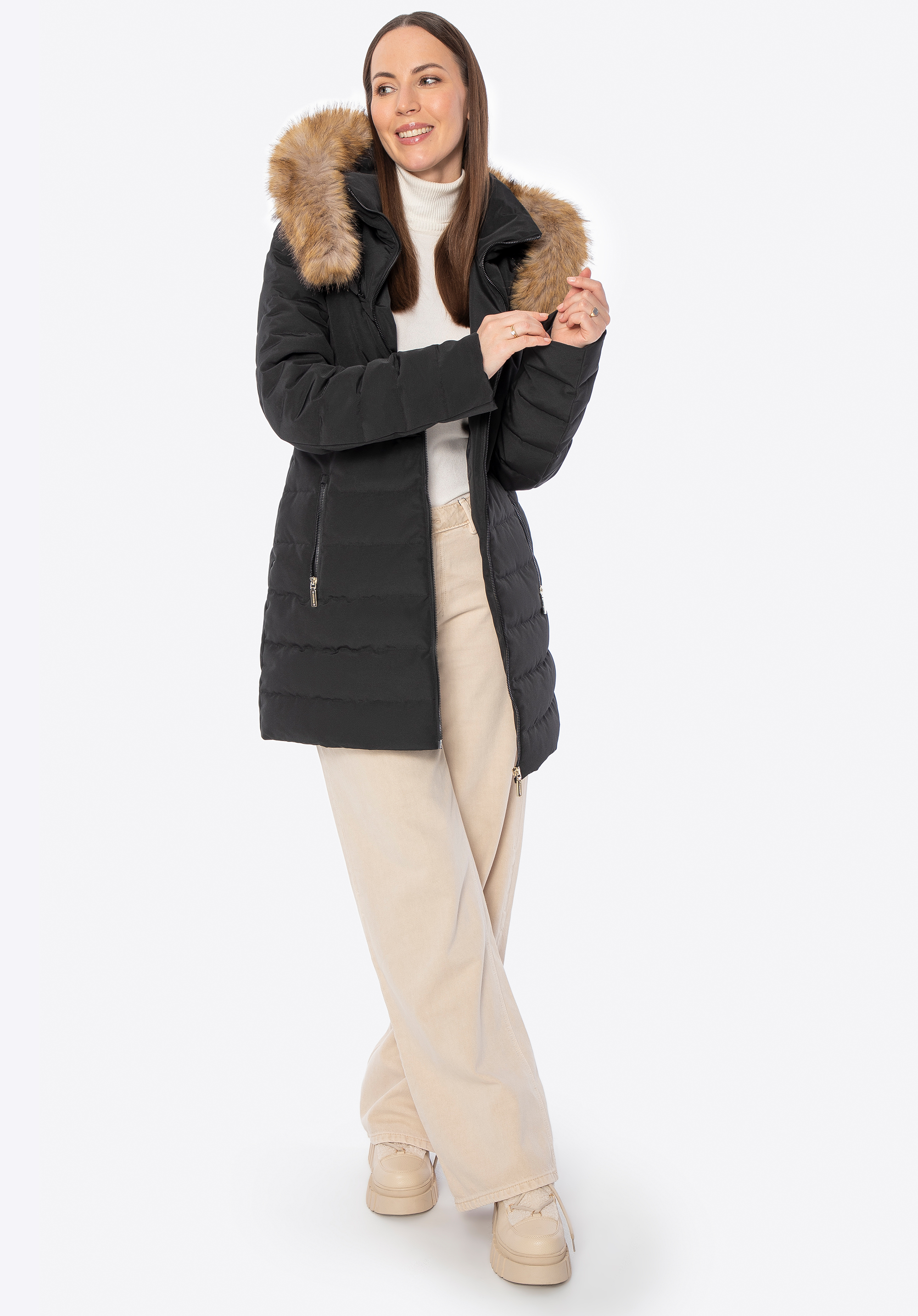 Ta damska kurtka puchowa łączy funkcjonalność z nowoczesnym krojem, który świetnie układa się na sylwetce. Wypełnienie z naturalnego puchu kaczego i pierza zapewnia wyjątkową izolację termiczną, utrzymując ciepło nawet w najzimniejsze dni, przy zachowaniu lekkości i komfortu noszenia. Kurtka wyposażona jest w praktyczne detale – solidny zamek, który skutecznie chroni przed chłodem, oraz odpinany kaptur ze ściągaczami i sztucznym futerkiem, który pozwala dopasować go do głowy i zatrzymać ciepło.