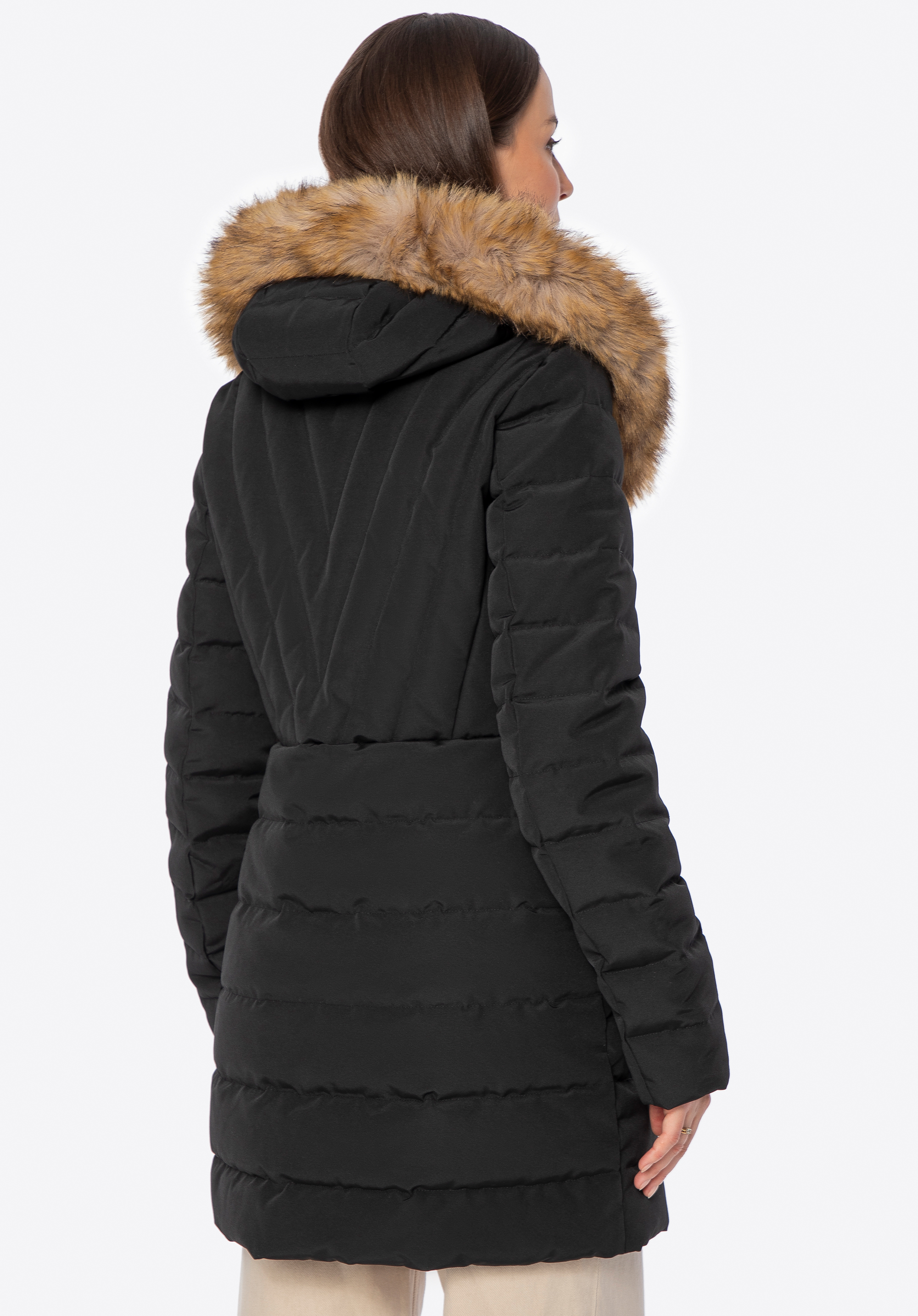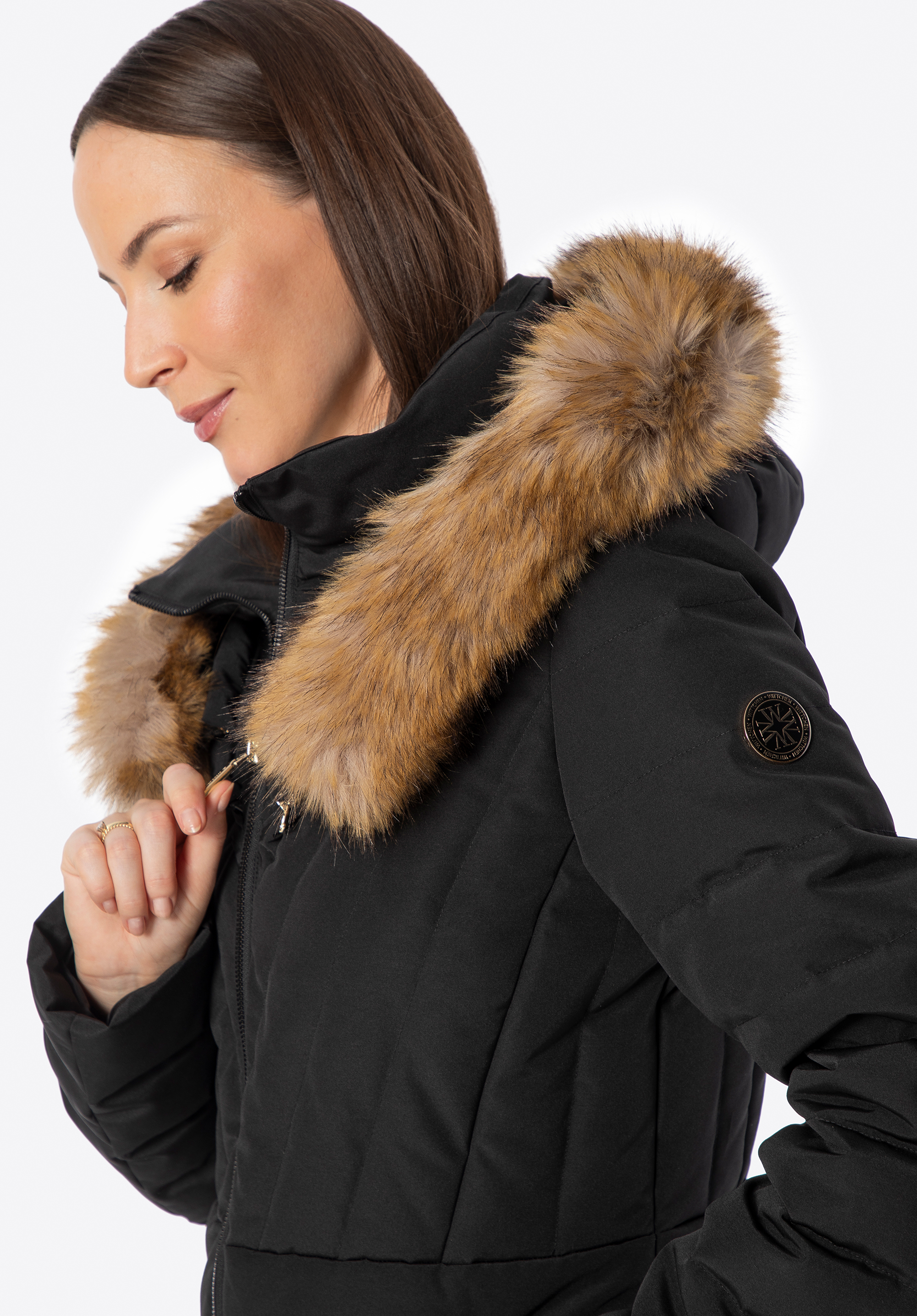 - Odpinany kaptur ze ściągaczami i sztucznym futerkiem: Pozwala dopasować kaptur do głowy i zatrzymać ciepło.